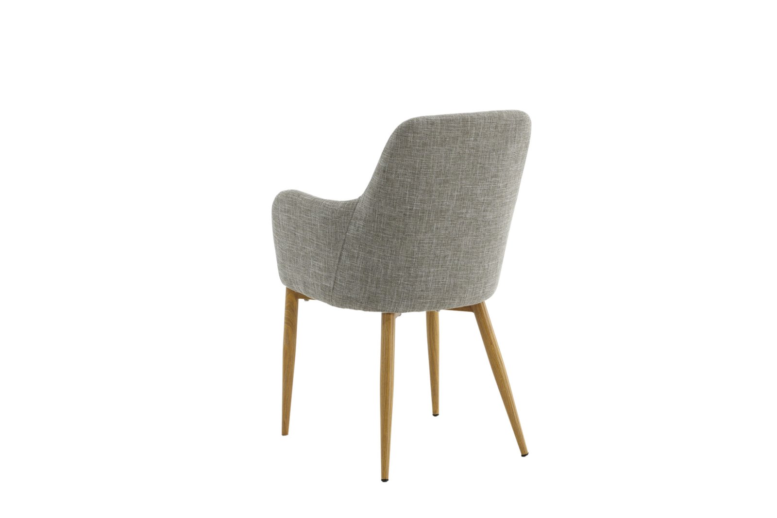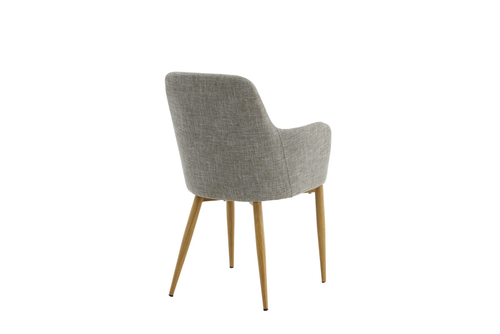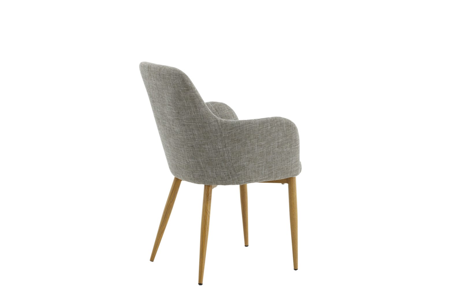 Venkite kompromisų tarp dizaino ir patogumo! Ši Comfort kolekcijos valgomojo kėdė - tai geriausias variantas. Kėdė yra solidaus dizaino, pilnai apmušta, su metalo kojomis su ąžuolo apdaila ir šviesiai pilko poliesterio audinio atlošu bei sėdimąja dalimi su integruotais porankiais. Dekoratyvinės siūlės atlošo ir porankių vidinėje pusėje suteikia stilingumo. Nesudėtingai surenkama.
