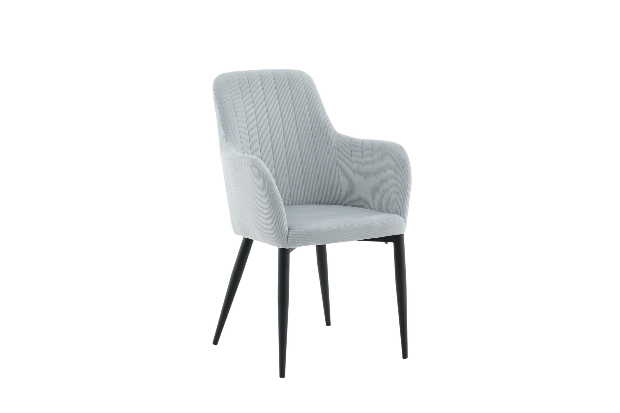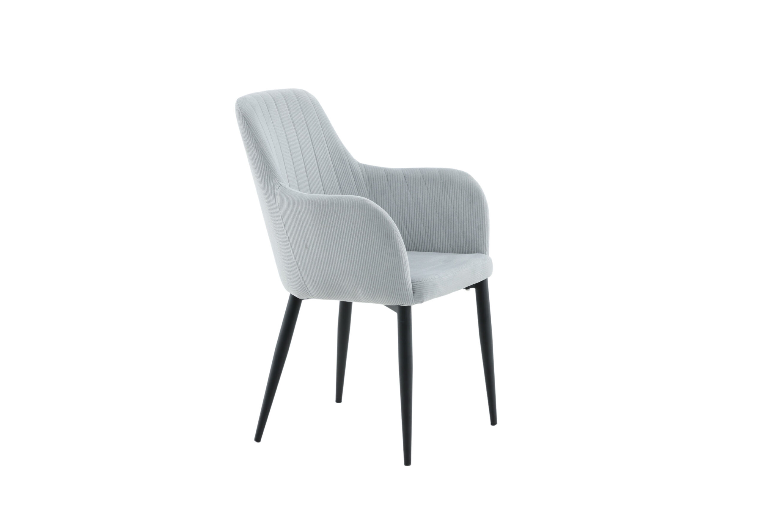 Tegul modernus dizainas dera su šeštojo dešimtmečio nostalgija šioje madingoje aksominėje kėdėje iš kolekcijos Comfort! Minkšto pilko aksomo audinio apmušalas, kuria šiuolaikišką namų įvaizdį. Kojos - iš juodo, milteliniu būdu dengto metalo, o sėdimoji dalis su integruotais porankiais iš pilko aksomo audinio. Dekoratyvinės siūlės atlošo ir porankių vidinėje pusėje prideda stilingumo. Nesudėtingai surenkama.