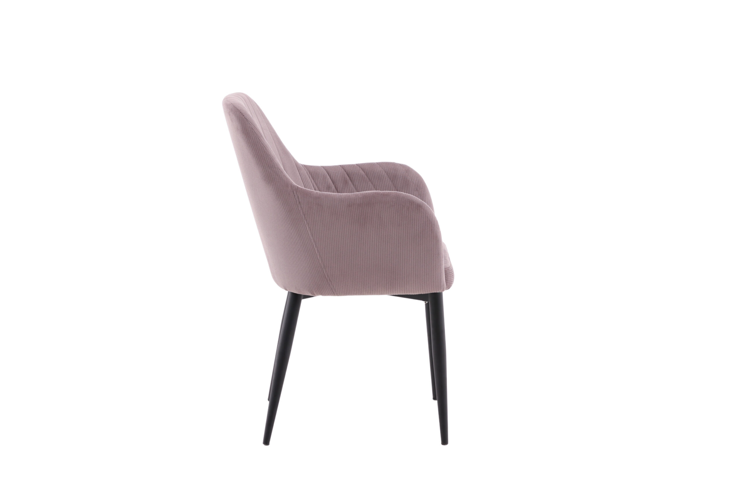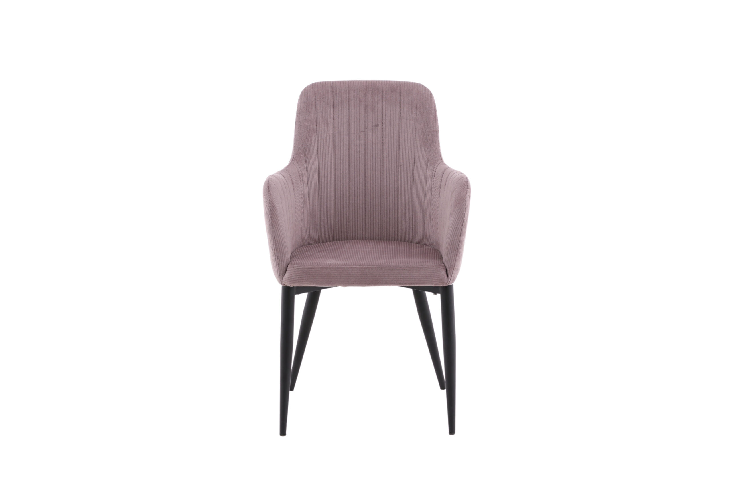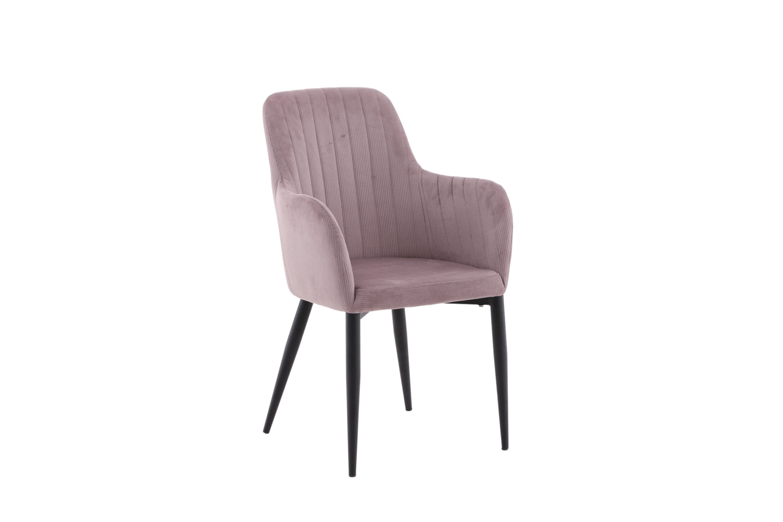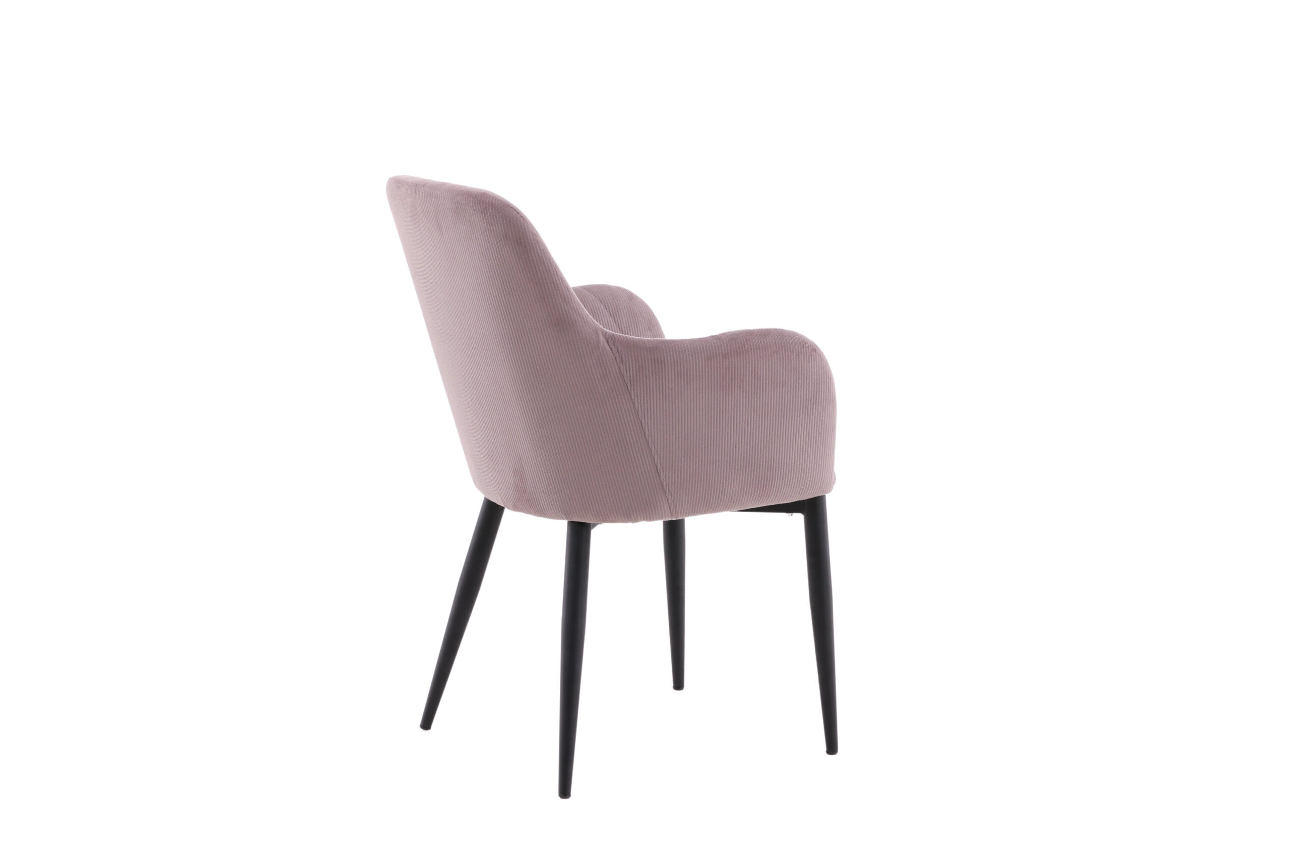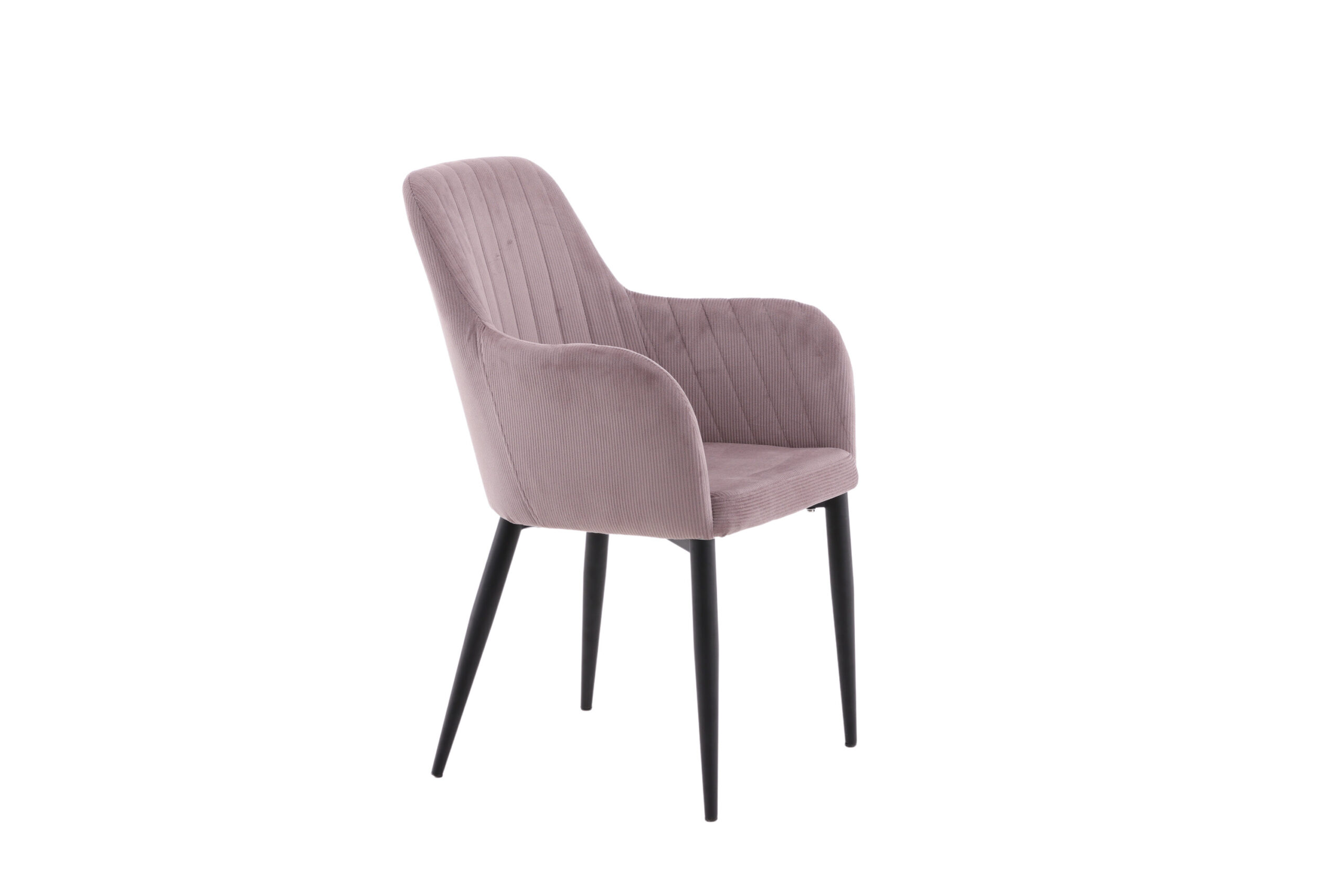 Nostalgiškas Mančesterio lagaminas niekada nepraranda savo vertės! Ši valgomojo kėdė iš kolekcijos Comfort yra aptraukta šviesiu sendinto rausvo aksomo audiniu, kuris sukuria modernų namų centro įvaizdį. Kojos yra iš juodo milteliniu būdu dažyto metalo, sėdimoji dalis su integruotais porankiais aptraukta aksomu, užtikrina sėdėjimo komfortą. Dekoratyvūs dygsniai atlošo ir porankių vidinėje pusėje pusėje yra daili detalė. Lengvai surenkama.