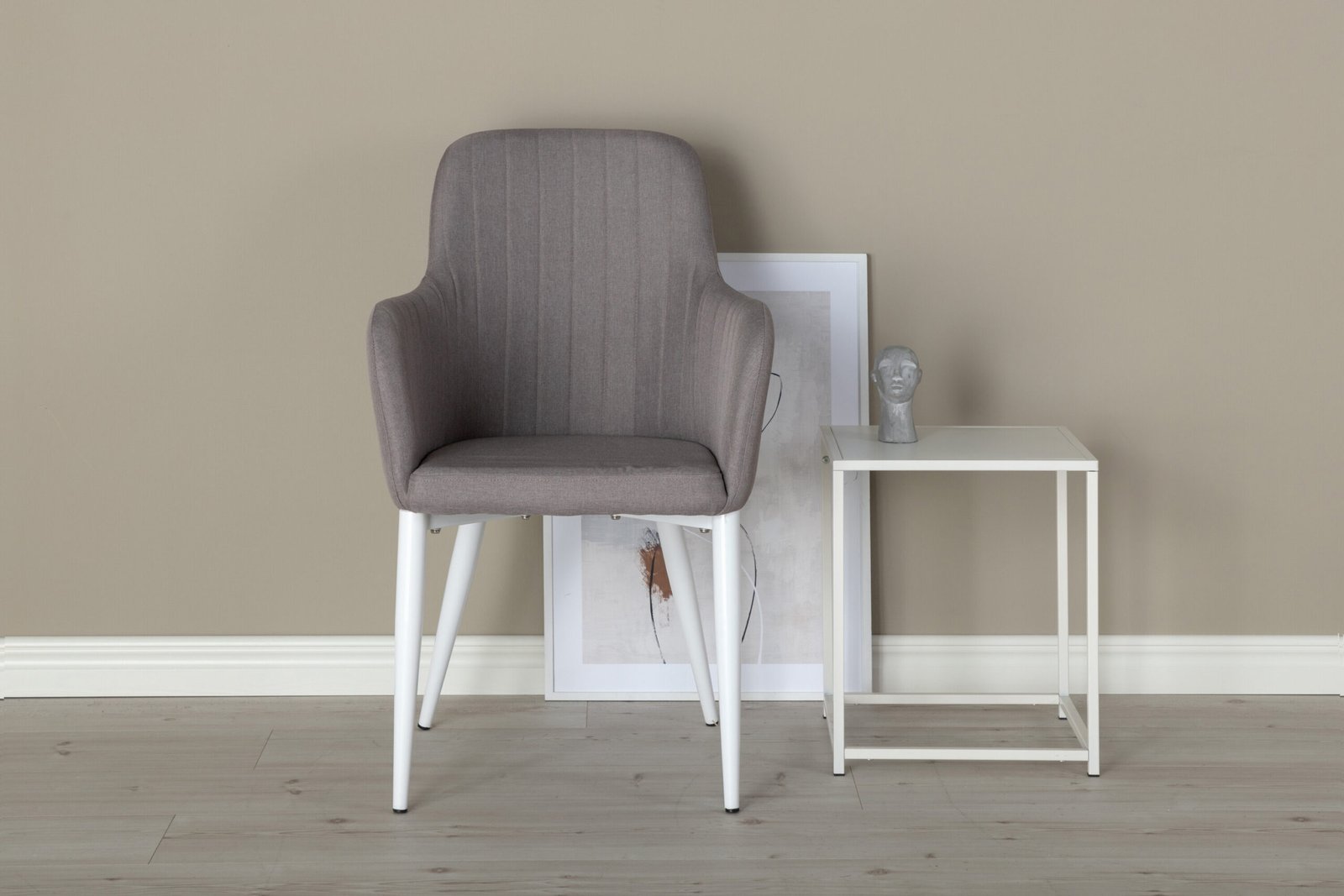 Patogiai įsitaisykite ir sukurkite jaukią atmosferą prie valgomojo stalo su puikia Comfort serijos valgomojo kėde! Ji pasižymi tvirta konstrukcija, baltomis milteliniu būdu dengto metalo kojomis, o atlošas ir sėdimoj dalis su integruotais porankiais pagaminti iš komfortabilaus pilko poliesterio audinio. Dekoratyvinės siūlės atlošo ir porankių vidinėje pusėje - stilingas akcentas. Lengvai surenkama.