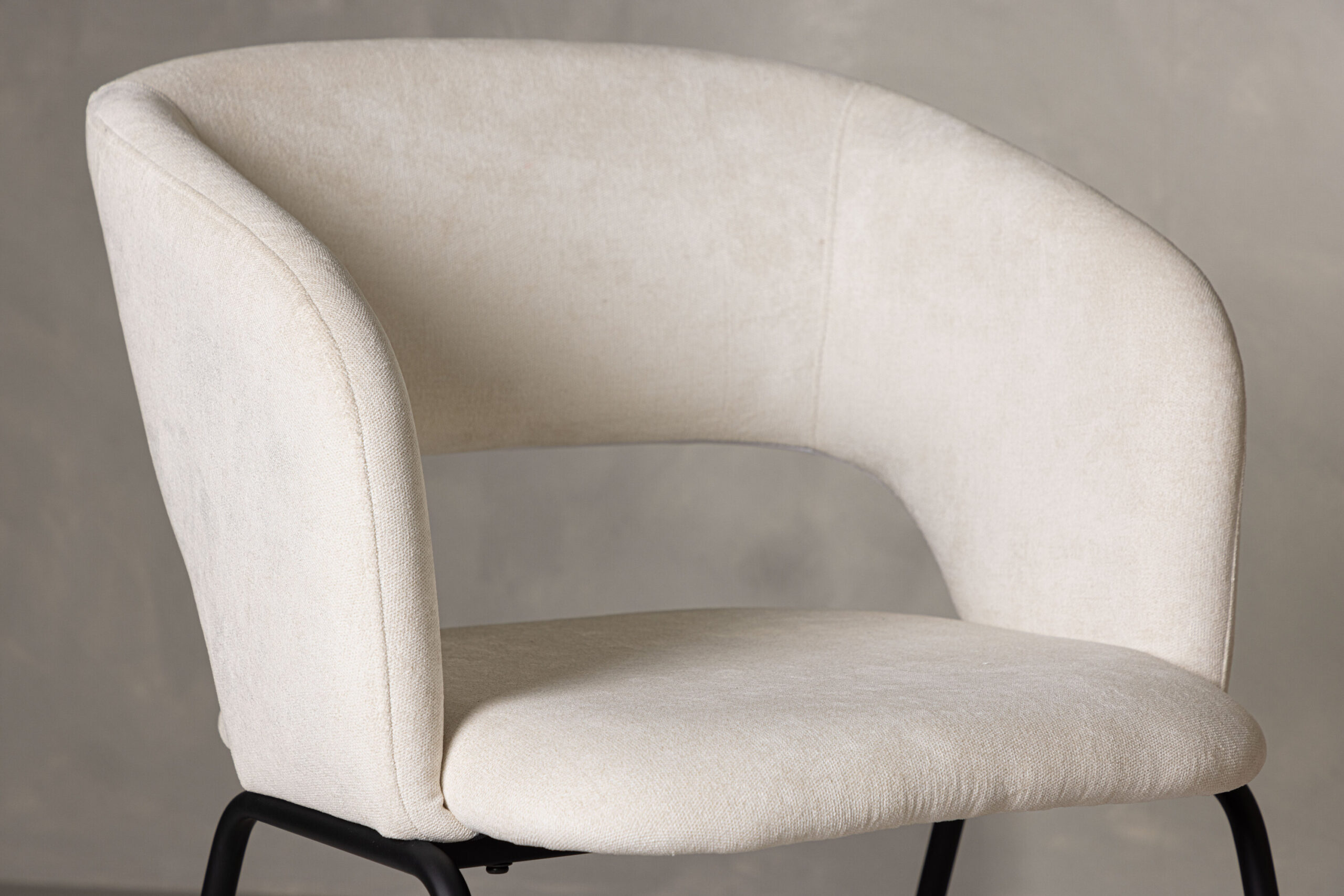 Namų interjero toną kurkite su moderniomis valgomojo kėdėmis iš kolekcijos DAY! Šios valgomojo kėdės traukia akį savo apgalvotu dizainu, švelniomis formomis ir minimalistine konstrukcija. Pilnai apmušta sėdimoji dalis su atviru atlošu yra iš balto lininio audinio, o kėdės kojos siauros - iš juodo plieno. Pakelkite savo namų stiliaus kartelę ir sukurkite madingą atmosferą!