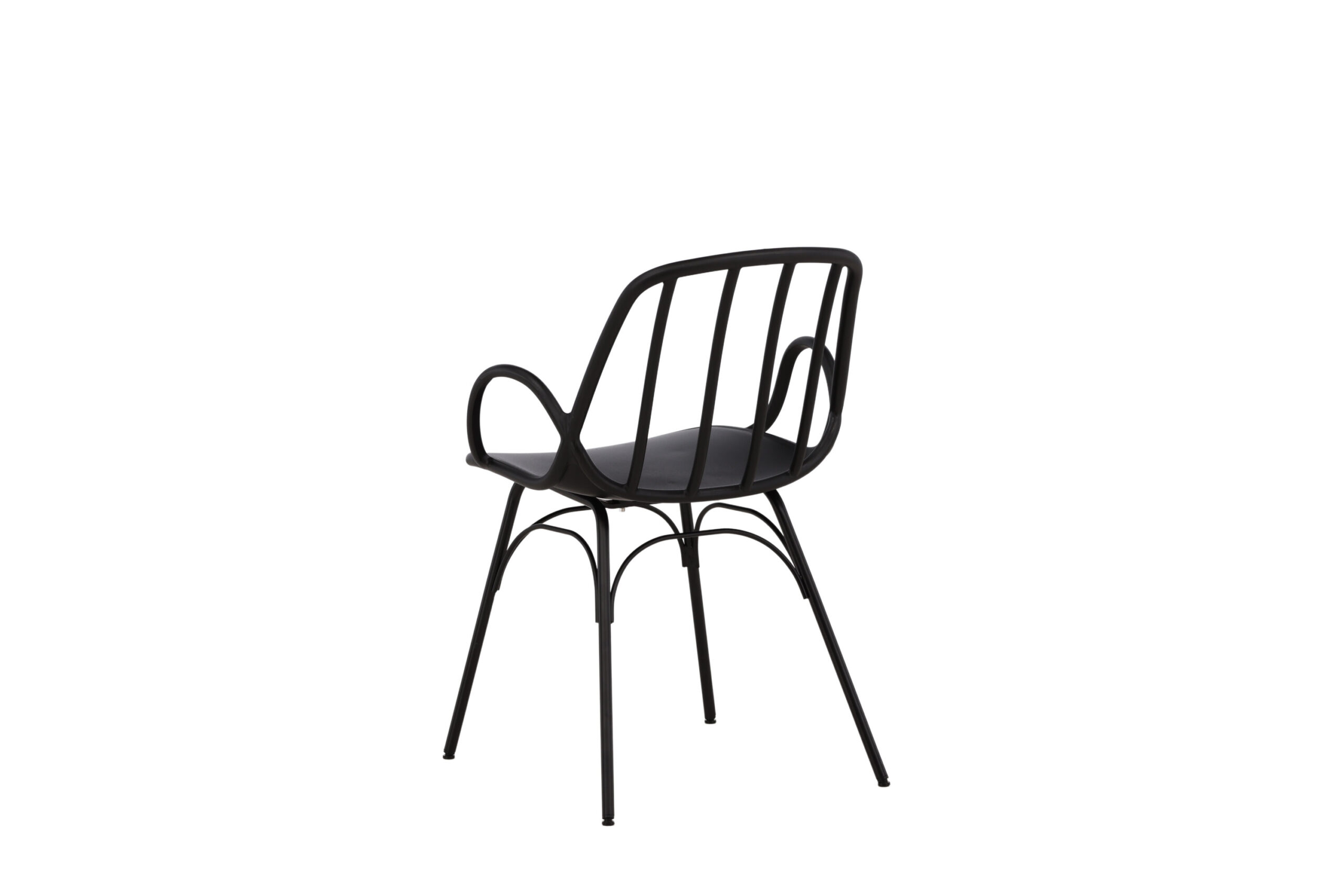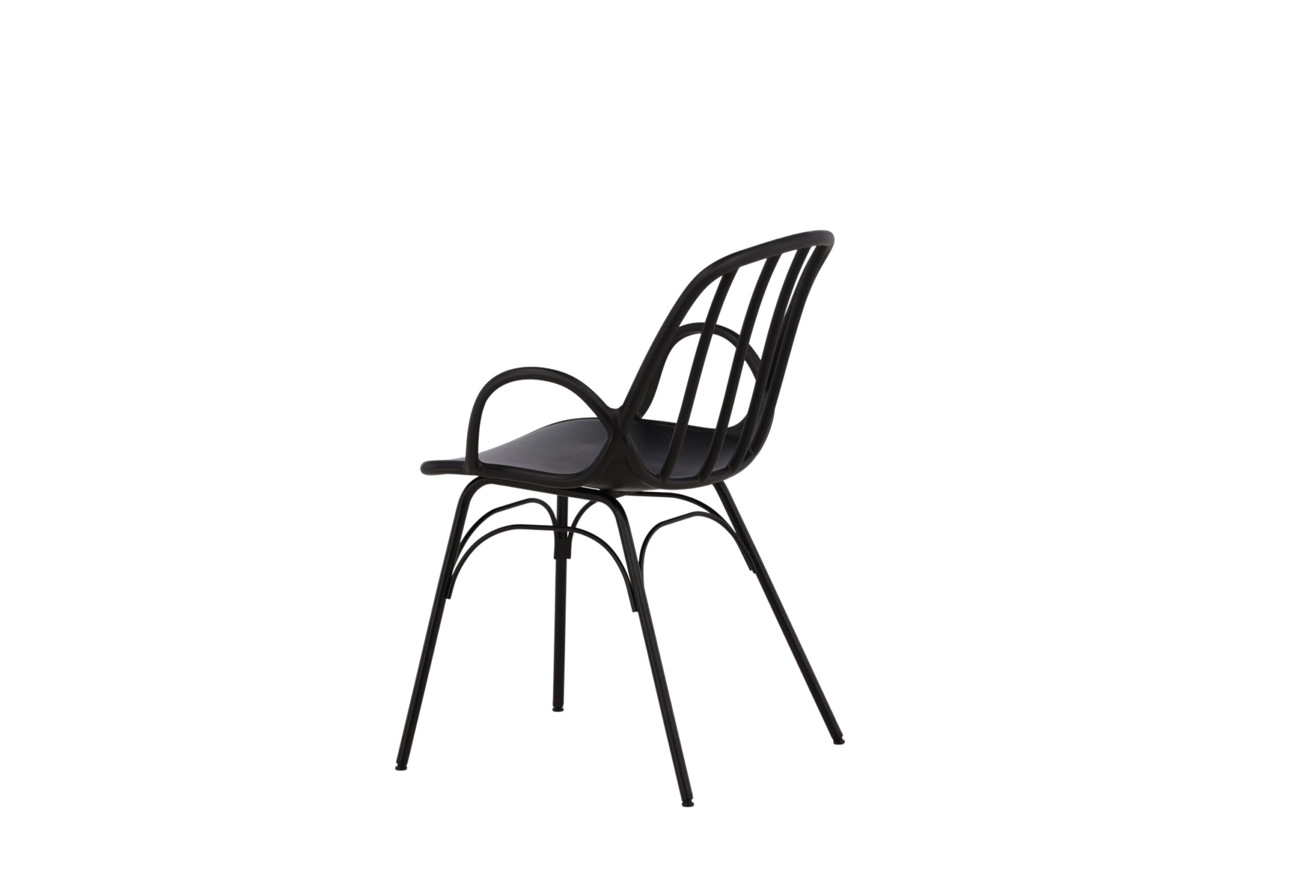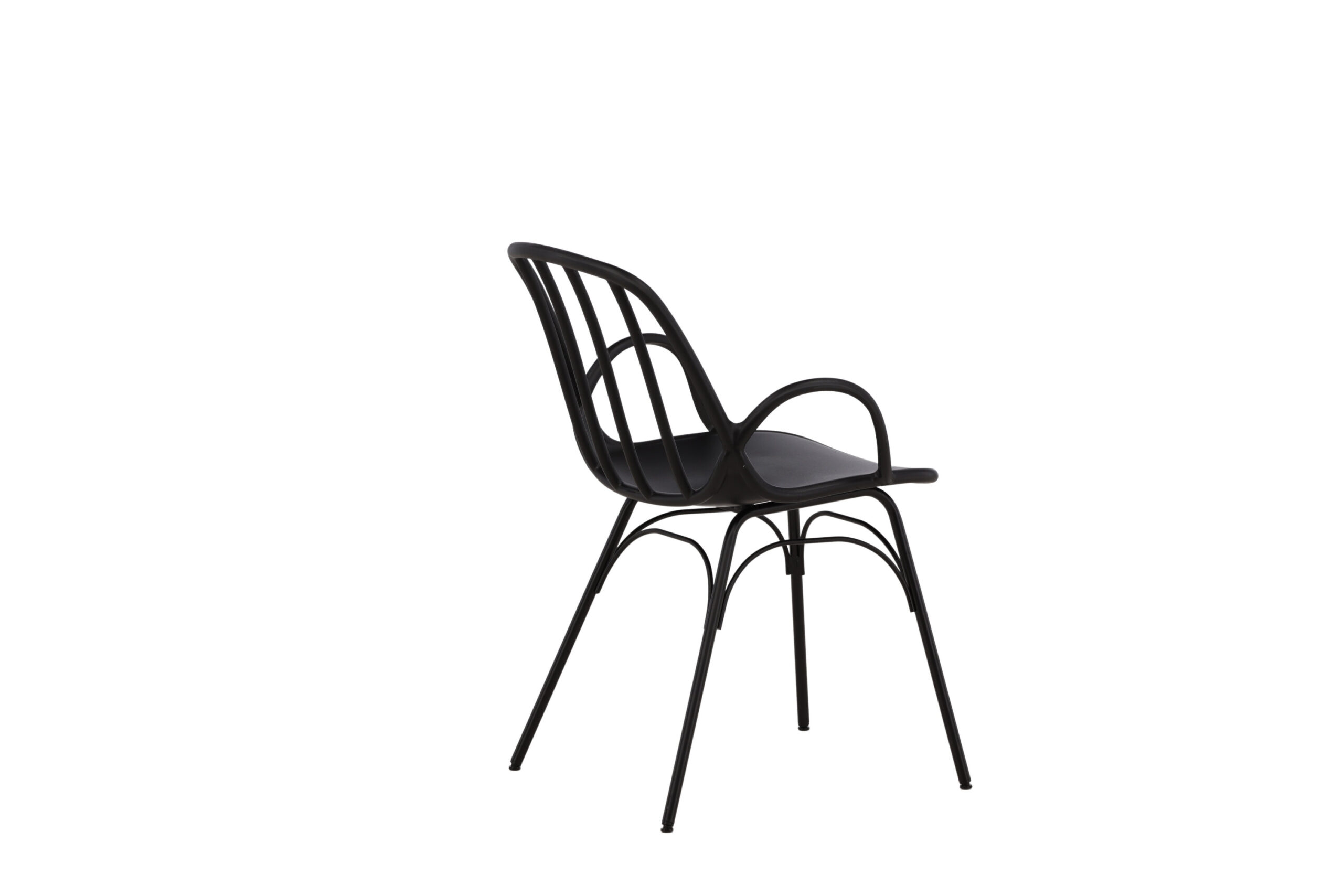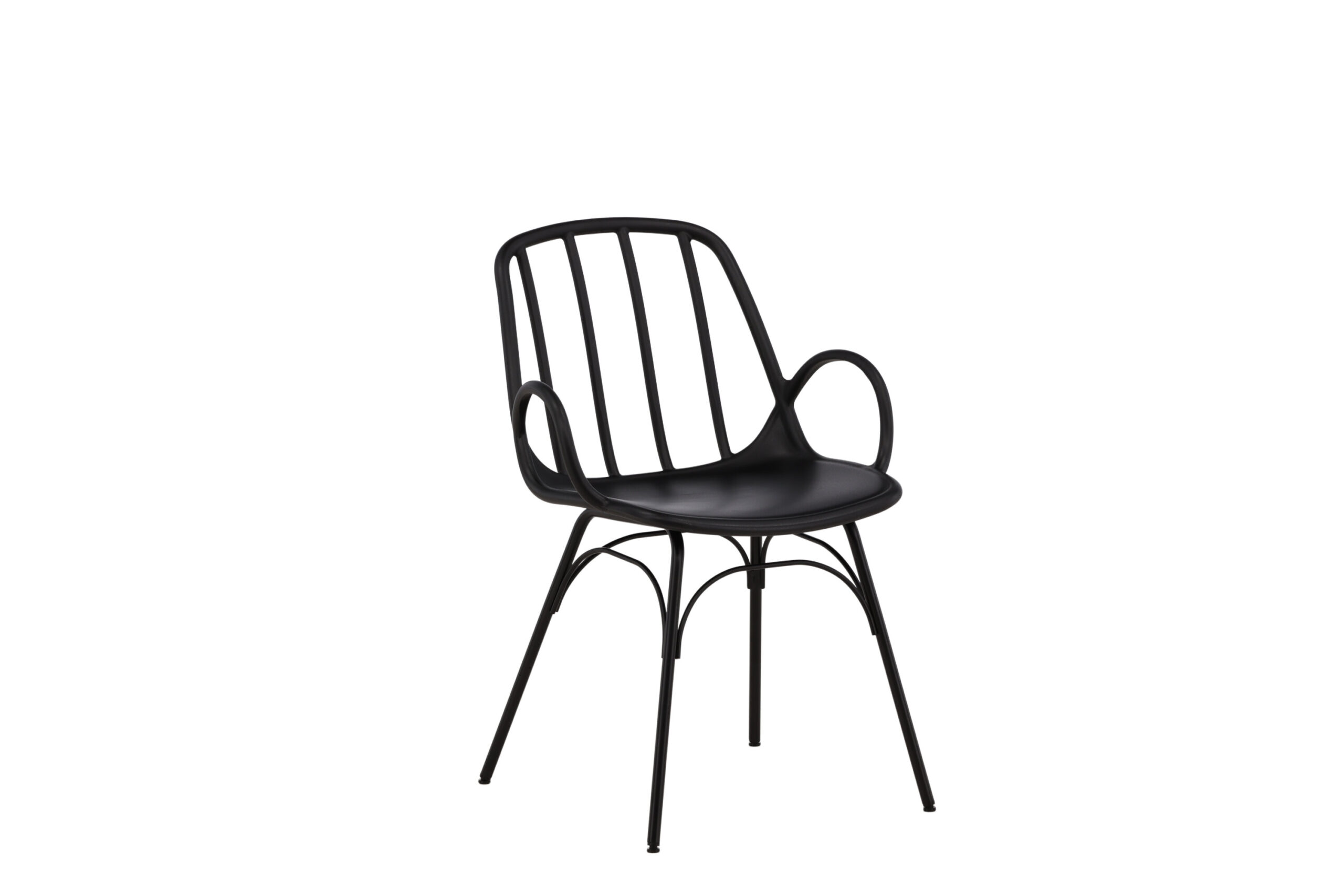Dyron - juoda valgomojo kėdė, kuri jūsų namuose sukurs individualią ir modernią atmosferą! Ši daili valgomojo kėdė, pagaminta iš juodo plastiko ir plieno, yra tiek pat elegantiška, kiek ir praktiška. Sėdimojoje dalyje integruoti porankiai, o švelniai suapvalinto atlošo formos yra briaunuotos. Kėdės kojos yra elegantiškai plonos ir švelniai platėjančios, skandinaviško modelio. Priderinkite prie jos valgomojo stalą ir sukurkite pilną valgomojo komplektą, prie kurio galėsite mėgautis maistu!