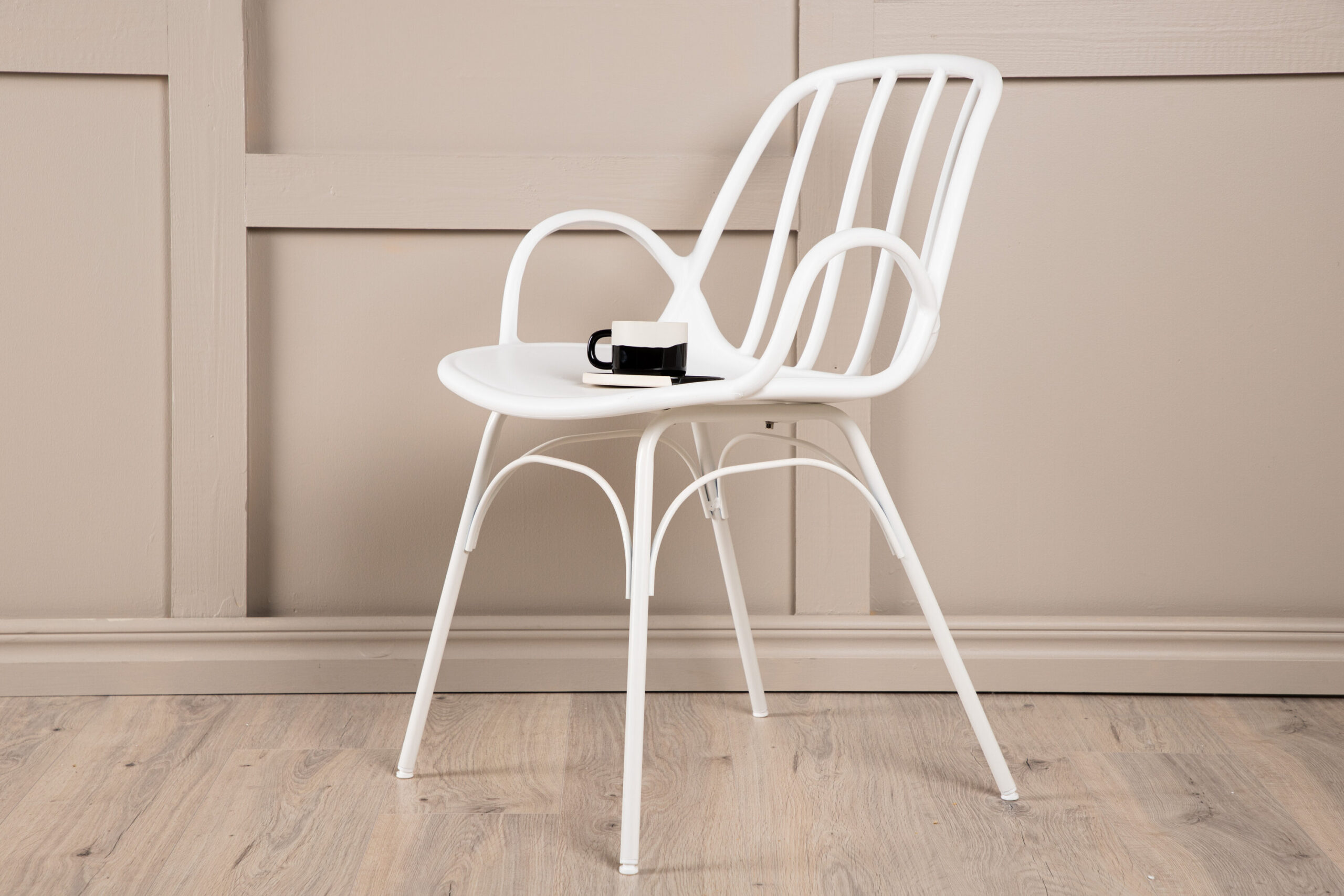 Dyron kolekcijos valgomojo kėdė padeda sukurti įspūdingą namų akcentą! Ši kėdė yra dekoratyvaus ir detalaus dizaino, lenktomis formomis, integruotais porankiais ir platėjančiomis kojomis, pagaminta iš patvaraus plastiko ir plieno, skoningos baltos spalvos. Priderinkite ją prie stilingo valgomojo stalo – sukursite išbaigtą valgomojo komplektą ir subursite šeimą maloniems pasisėdėjimams!