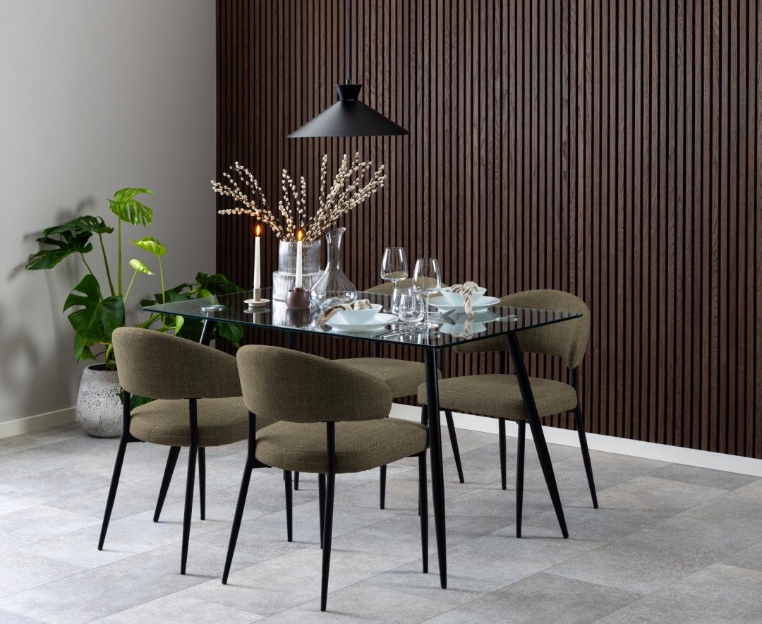 Edina valgomojo kėdė, Basel kolekcijos žalios spalvos audinys 77, pagrindas – juodas matinis šiurkščios faktūros milteliniu būdu dengtas plienas.