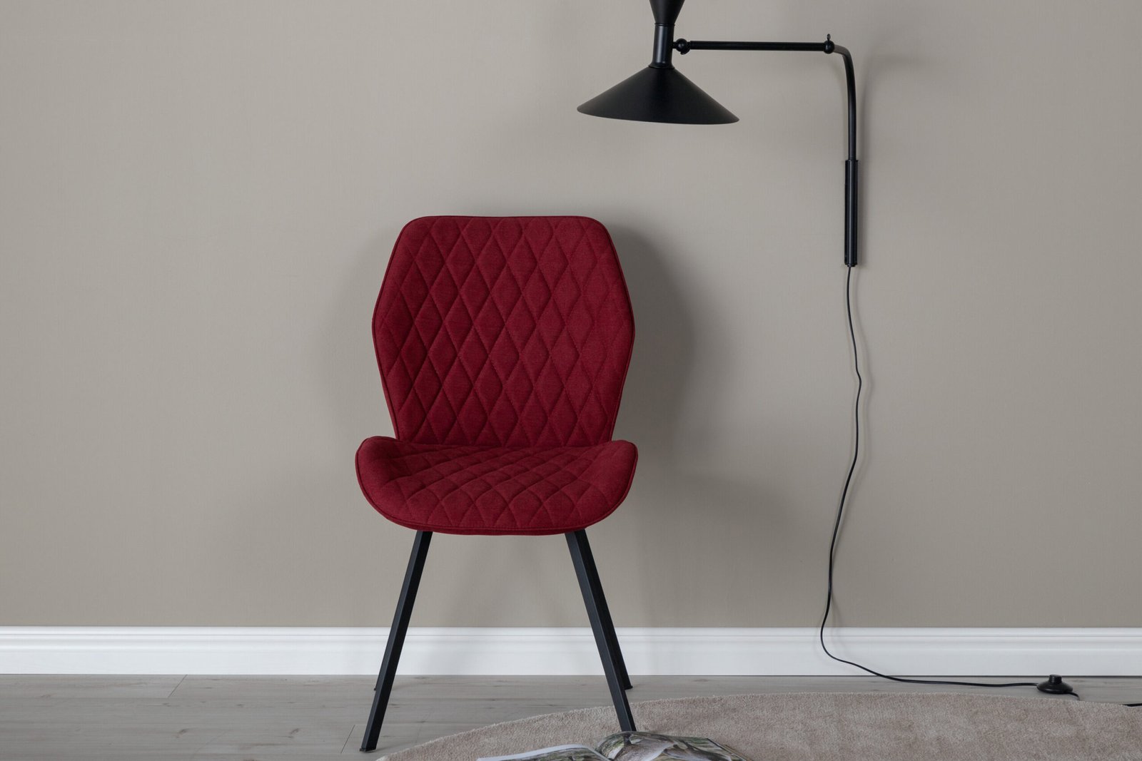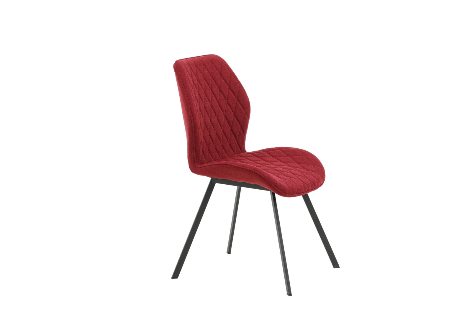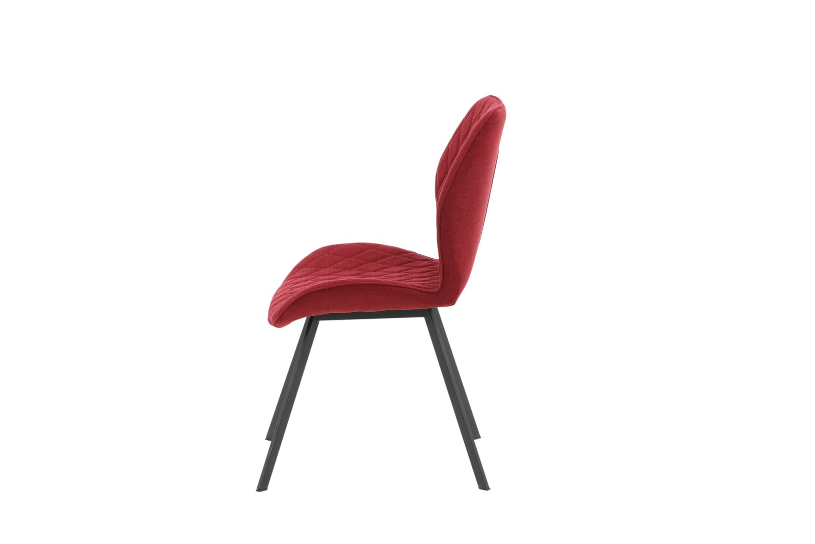 Skanus spalvotas spustelėjimas paryškina kasdienybę! Gemma - tai valgomojo kėdė su visais privalumais - praktiška, stilinga ir neprarandanti aktualumo! Visiškai išskirtinio dizaino, juodos spalvos milteliniu būdu dažyto metalo kojos ir tamsiai raudono poliesterio audinio atlošas ir sėdimoji dalis, kurie yra dubens formos. Kėdė labai patogi. Vidinėje atlošo ir sėdimosios dalies pusėje esančios dekoratyvinės siūlės sudaro tvarkingą tinklelio raštą. Lengvai surenkama.