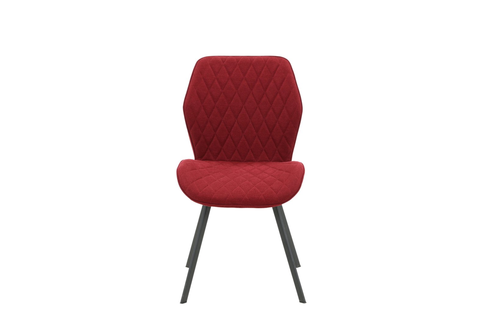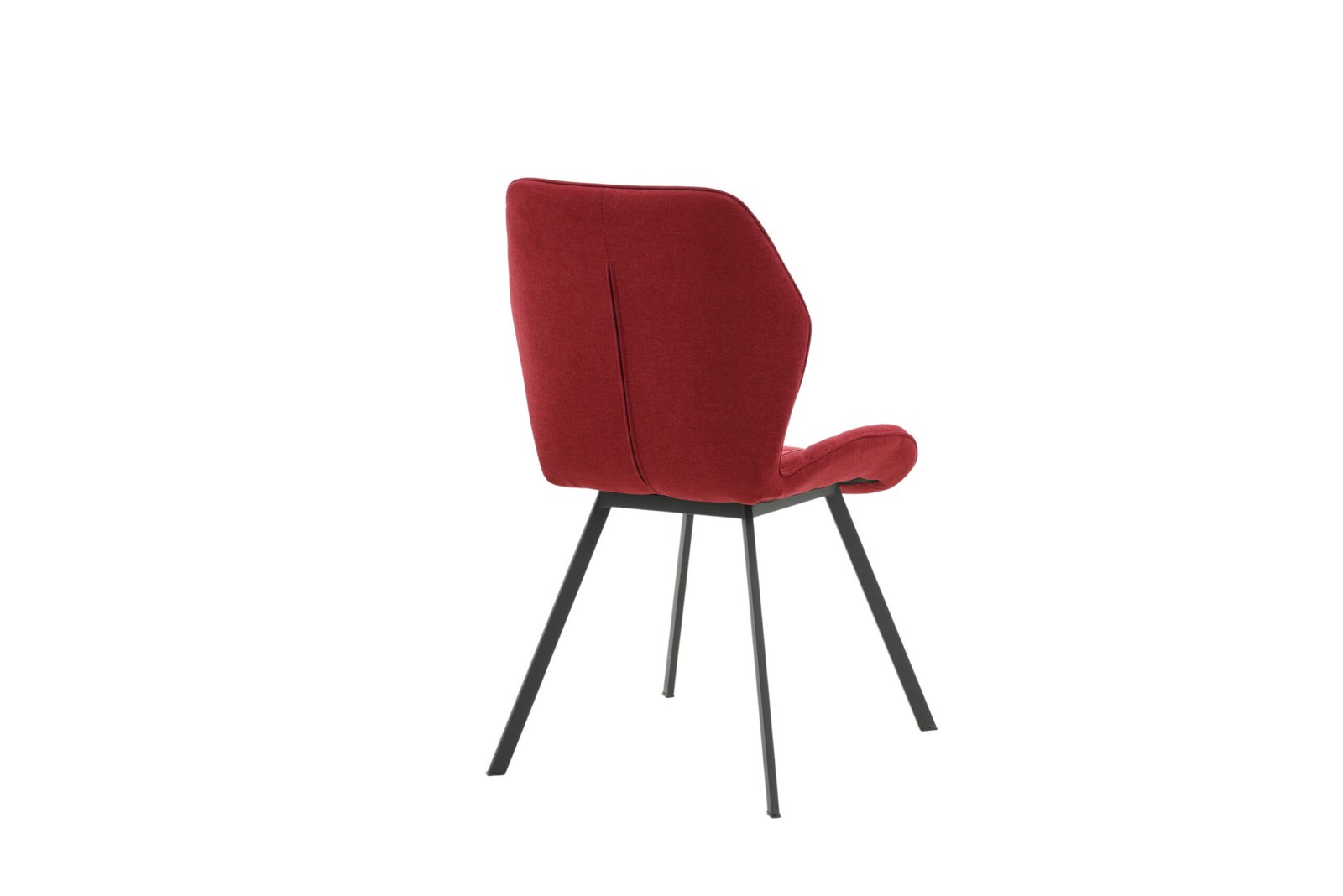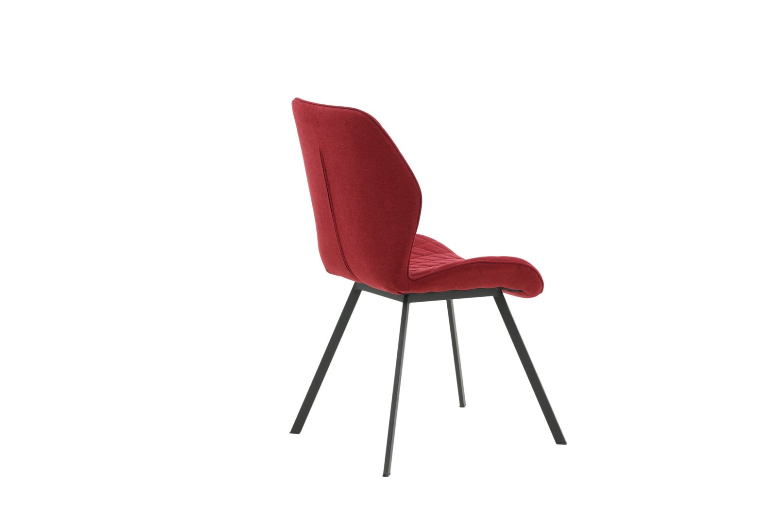 Skanus spalvotas spustelėjimas paryškina kasdienybę! Gemma - tai valgomojo kėdė su visais privalumais - praktiška, stilinga ir neprarandanti aktualumo! Visiškai išskirtinio dizaino, juodos spalvos milteliniu būdu dažyto metalo kojos ir tamsiai raudono poliesterio audinio atlošas ir sėdimoji dalis, kurie yra dubens formos. Kėdė labai patogi. Vidinėje atlošo ir sėdimosios dalies pusėje esančios dekoratyvinės siūlės sudaro tvarkingą tinklelio raštą. Lengvai surenkama.