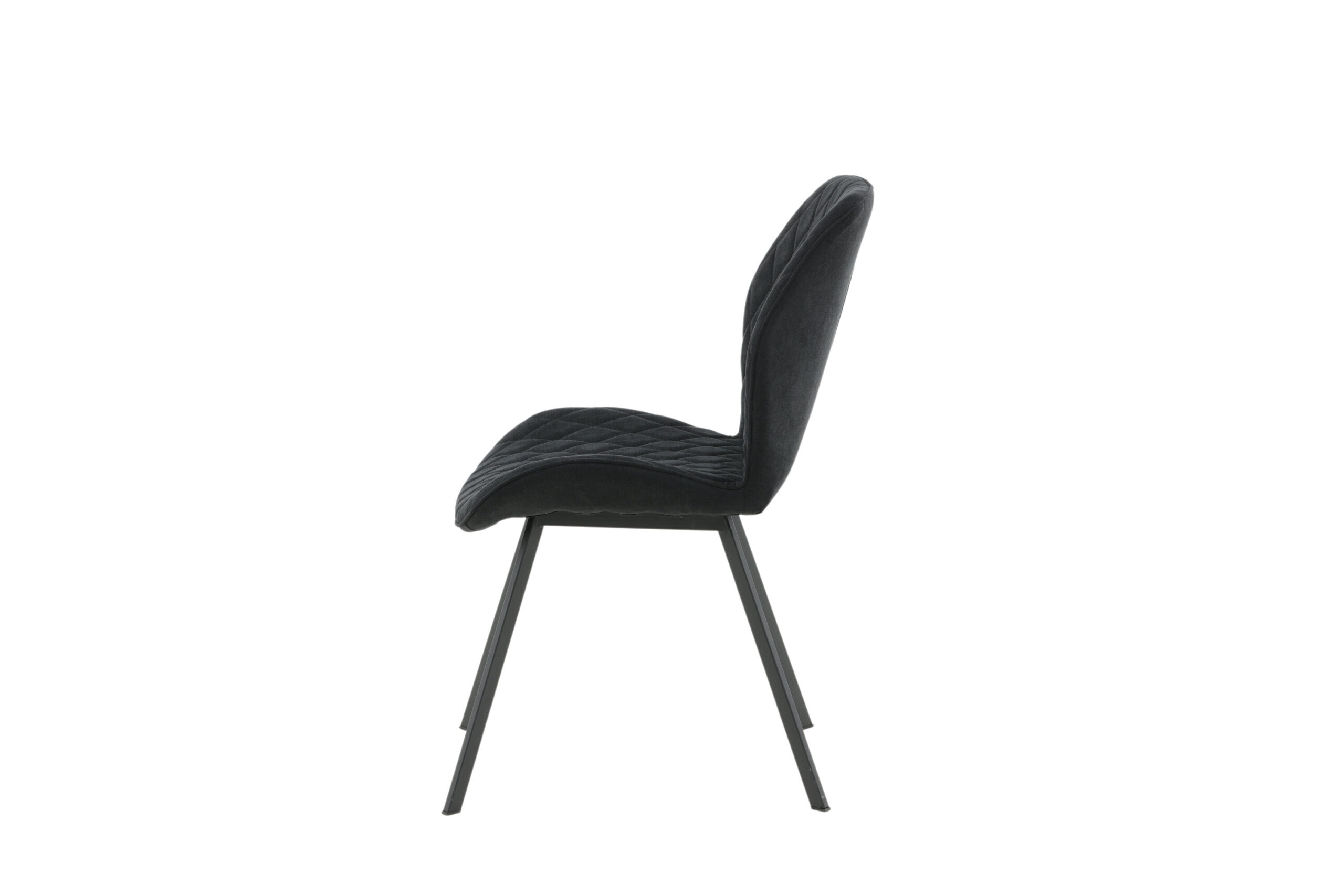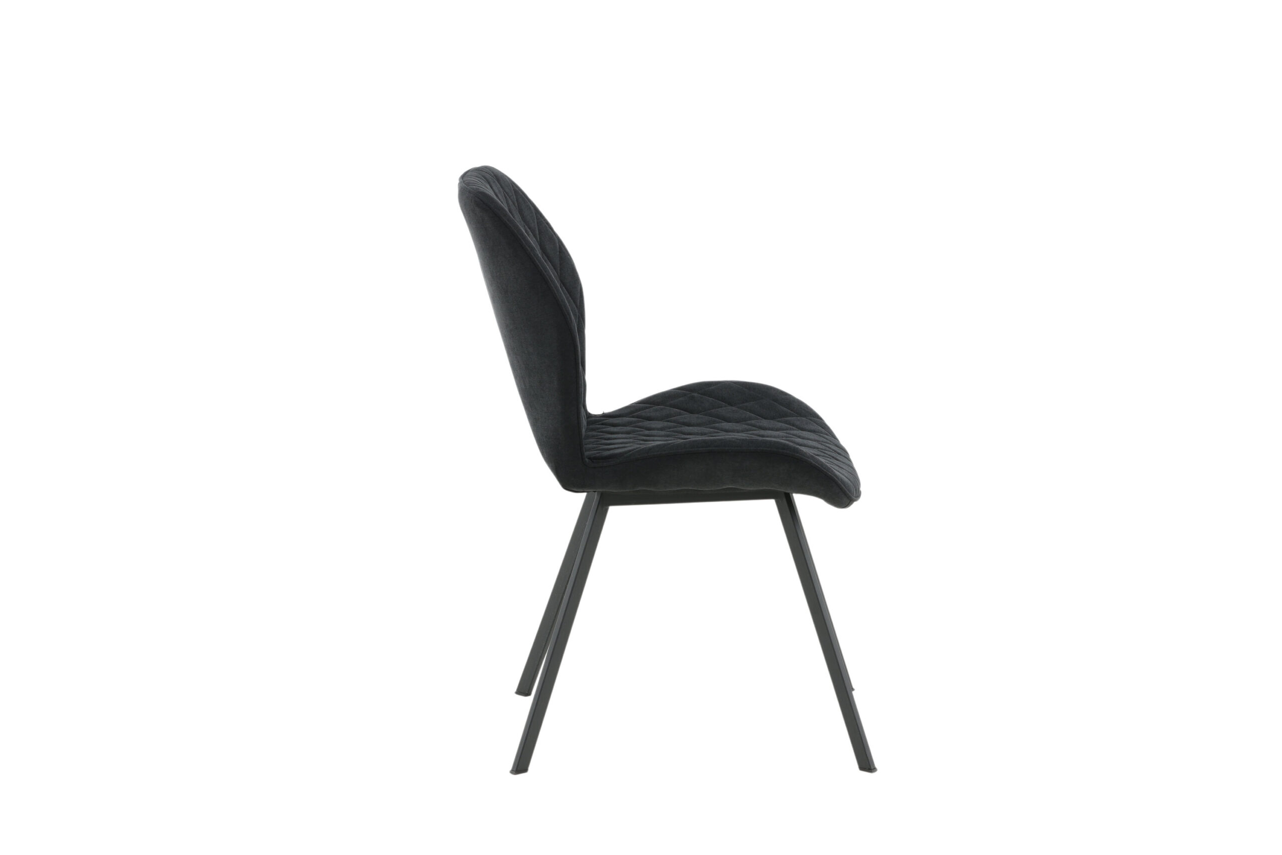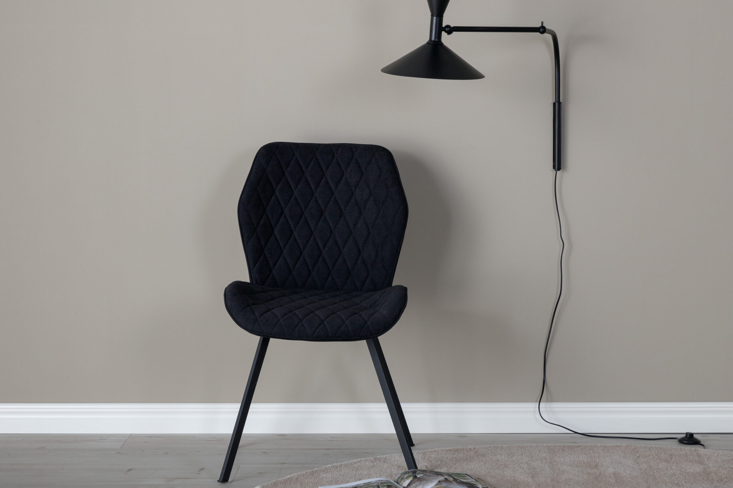 Gemma - tai valgomojo kėdė su visomis reikalingomis savybėmis: praktiška, elegantiška ir nepavaldi laikui! Pilnai apmušta, išskirtinio dizaino kėdė, su juodos spalvos milteliniu būdu dengto metalo kojomis ir juodos spalvos poliesterio audiniu aptrauktu, dubens formos atlošu bei sėdimąja dalimi - tai labai patogi kėdė. Dekoratyvinės siūlės atlošo ir sėdimosios dalies vidinėje pusėje sudaro stilingą rombo raštą. Nesudėtingai surenkama.