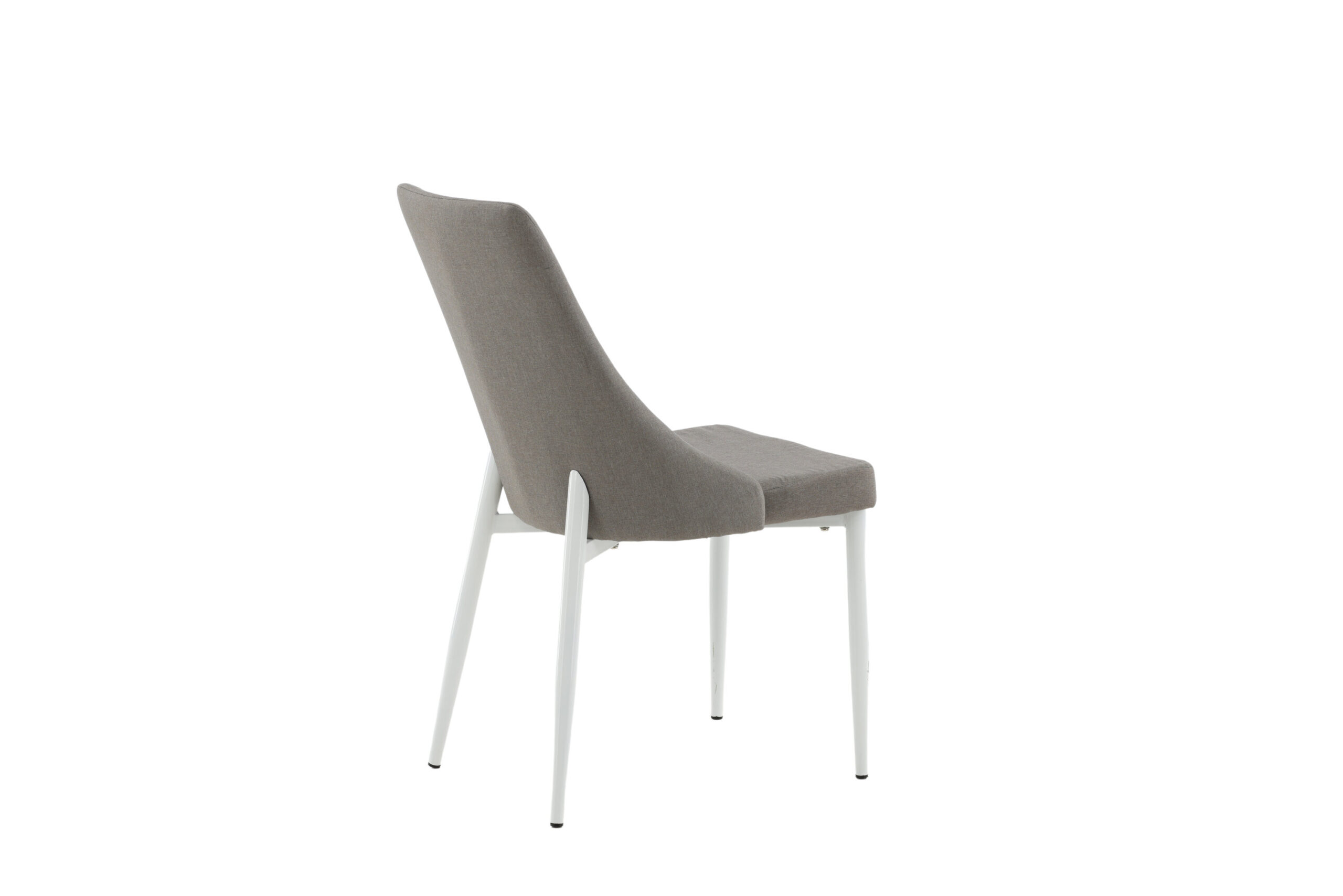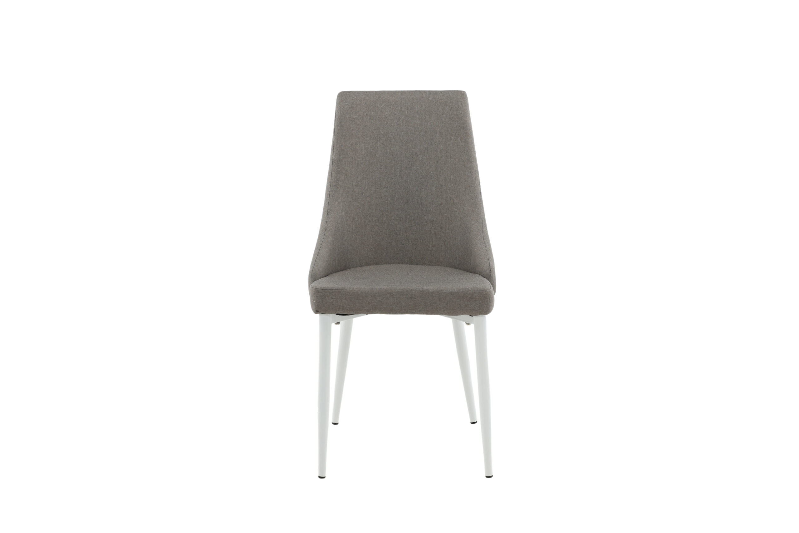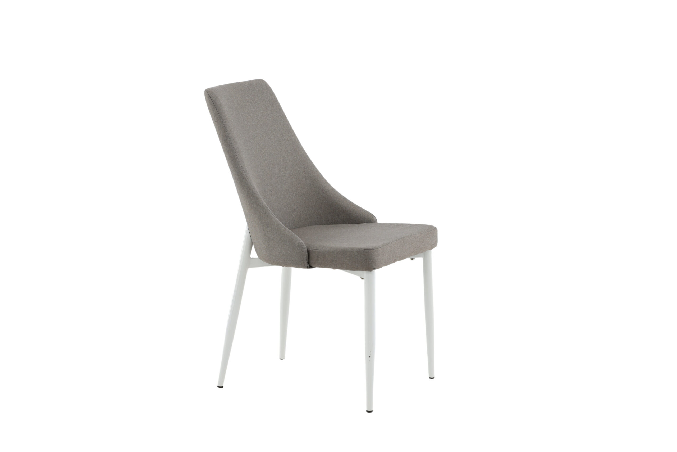 Su Leone kolekcijos valgomojo kėde nereikia rinktis kompromiso tarp patogumo ir dizaino! Apgalvota, apmušta konstrukcija yra tvirta, kojos pagamintos iš balto milteliniu būdu dengto metalo, o atlošas ir sėdimoji dalis - iš tamsiai pilko poliesterio audinio su paminkštinimu. Nesudėtingai surenkama.