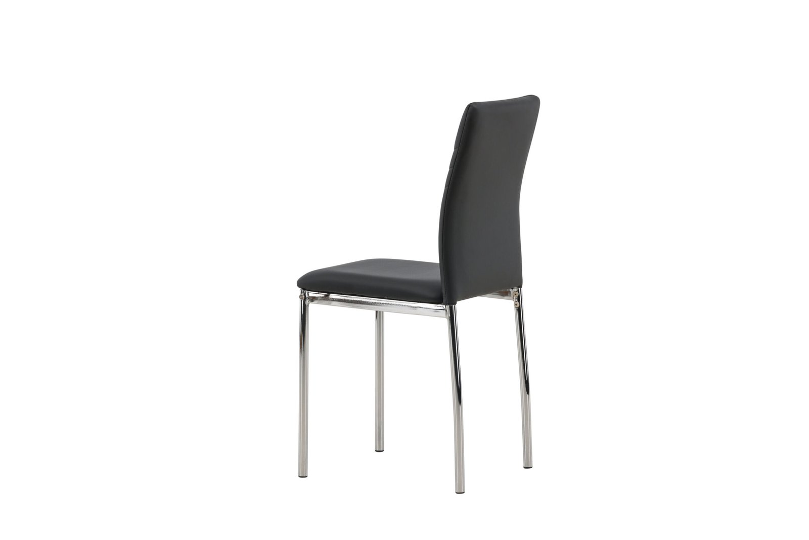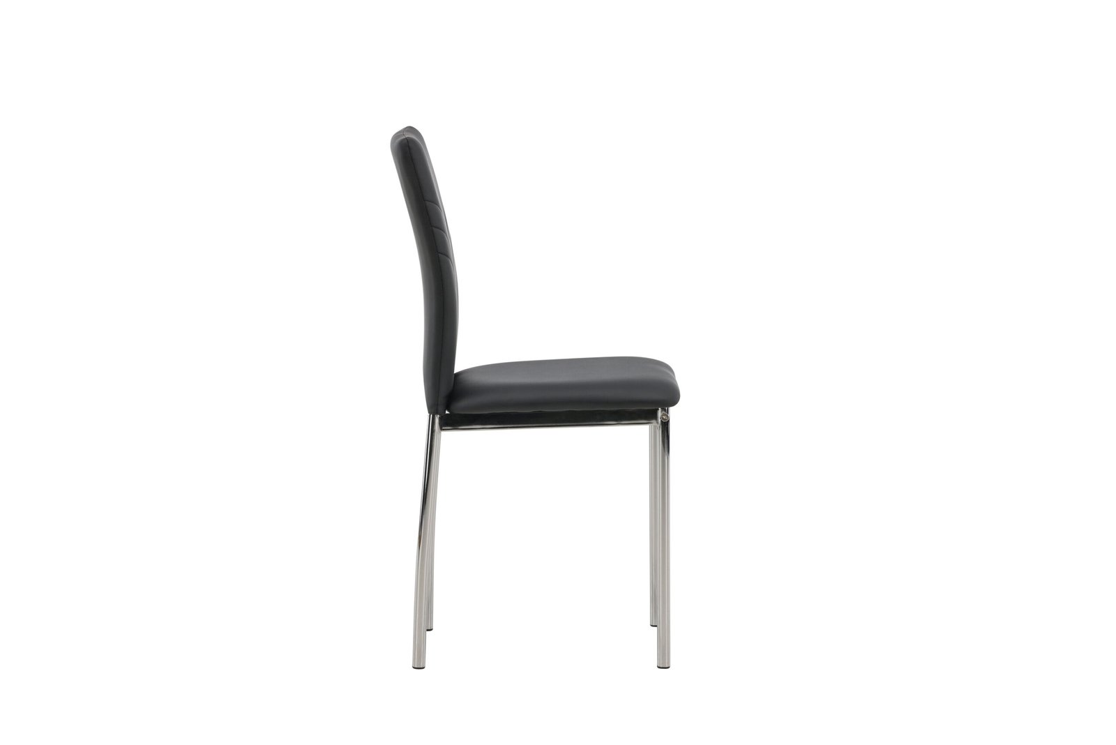 Puoškite namus Lily kolekcijos valgomojo kėdėmis! Ši valgomojo kėdė yra skandinaviško dizaino, aiškių šiaurietiškų formų, kurios atsparios laikui. Sėdimoji dalis aptraukta juoda dirbtine oda, o atlošas dekoruotas siūlėmis, kurios yra puošni detalė. Kėdės kojos - chromuoto plieno ir kuria malonų industrinį įspūdį. Patogiai įsitaisykite ir mėgaukitės maistu!