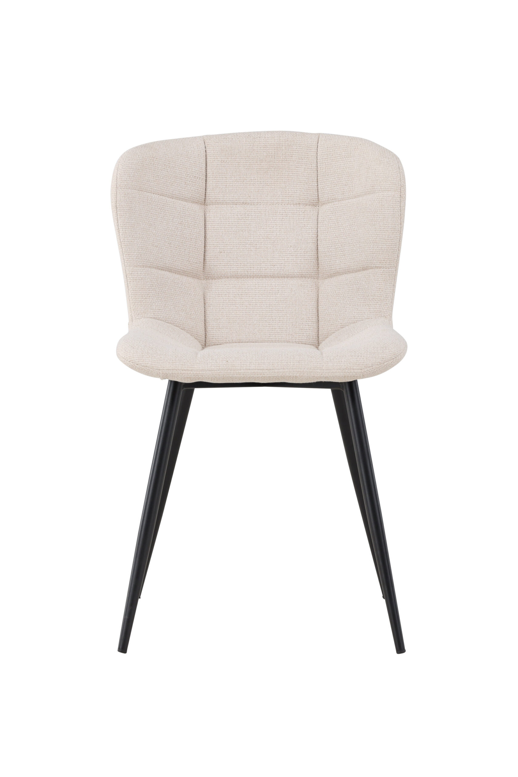 Juodos, iš patvarios medžiagos pagamintos kojelės suteikia Lily stabilią ir tvirtą konstrukciją, kartu sukurdamos elegantišką kontrastą šviesiems apmušalams. Smėlio ir juodos spalvų derinys formuoja subalansuotą ir stilingą įvaizdį, kuris sustiprina jūsų valgomojo estetiką.