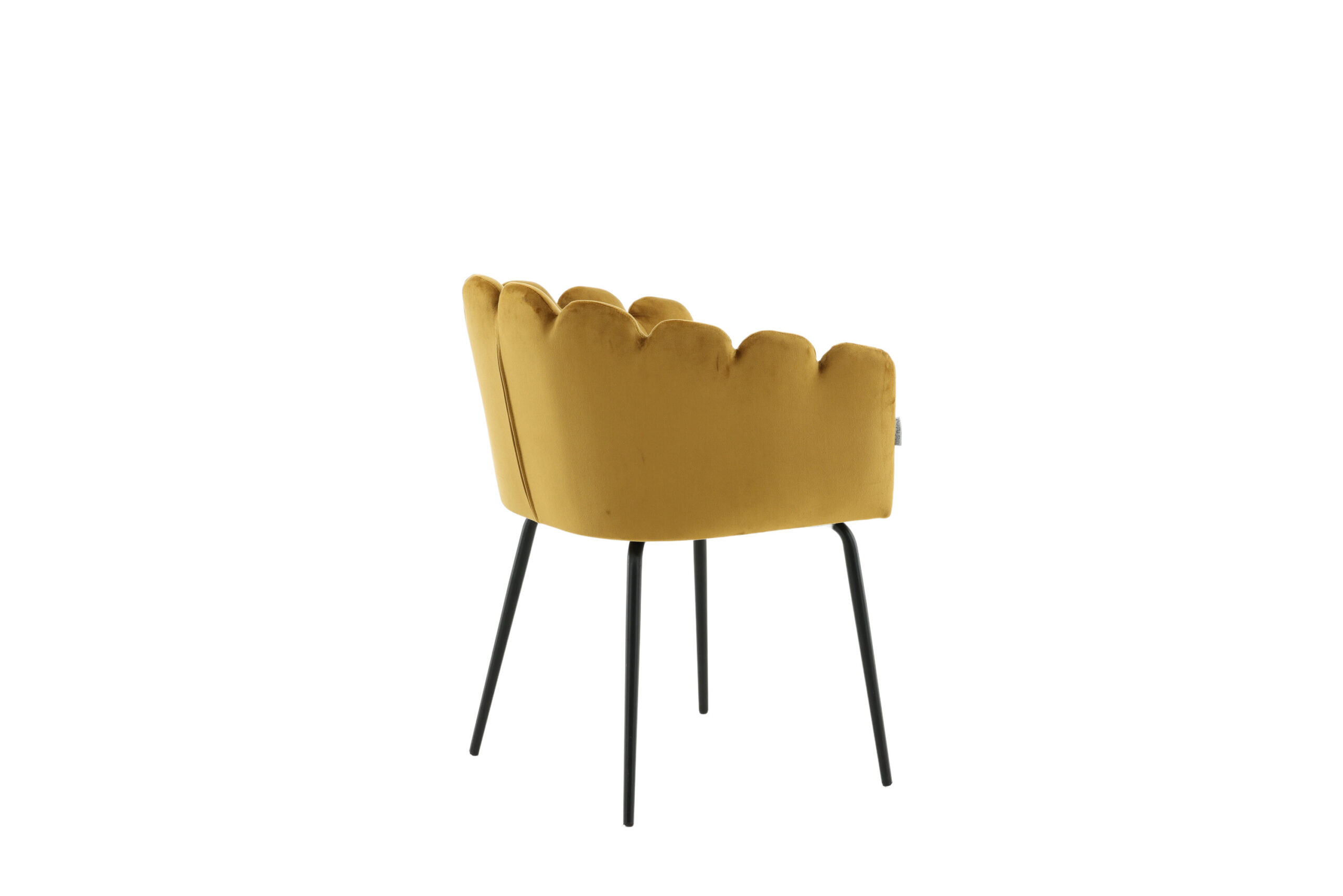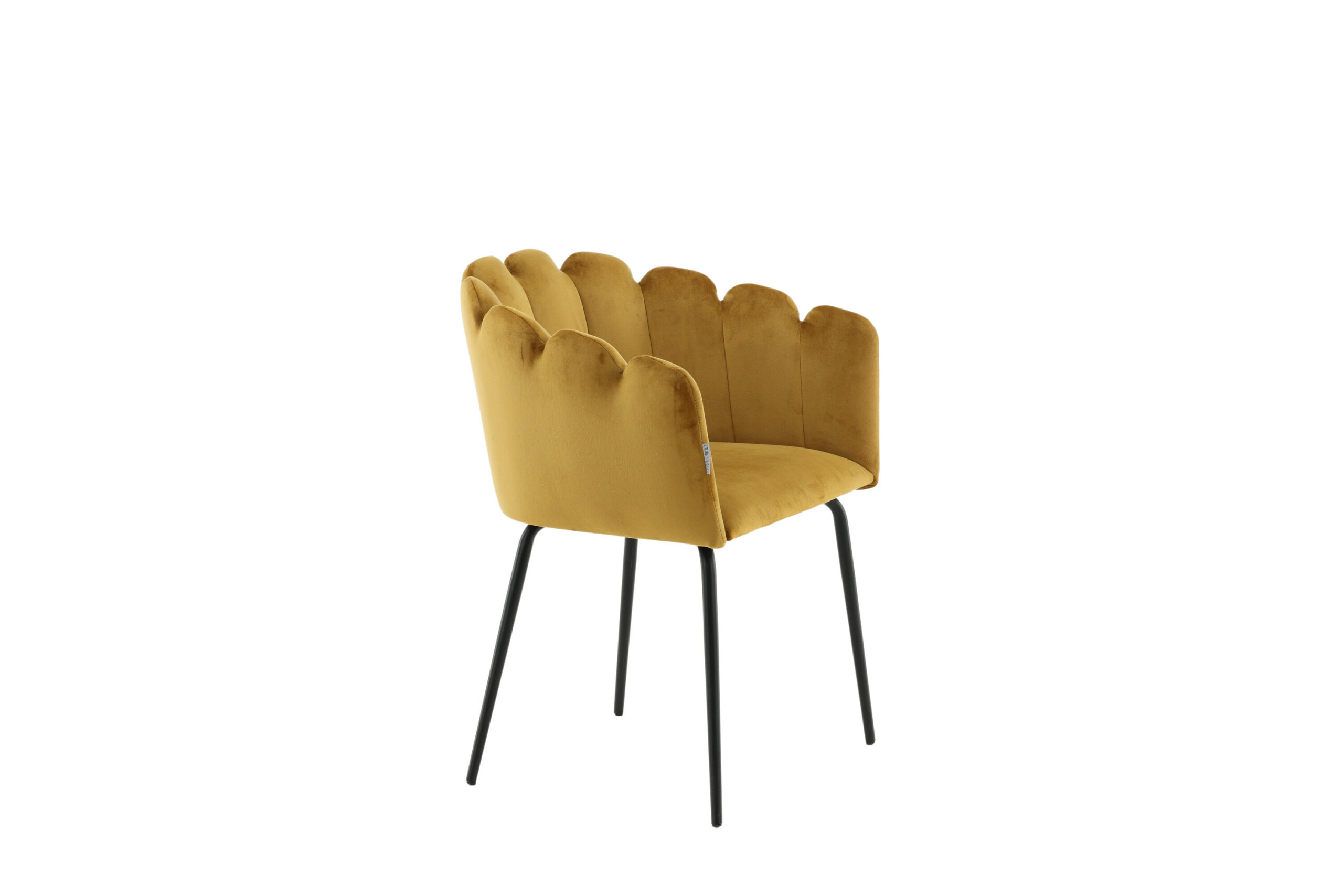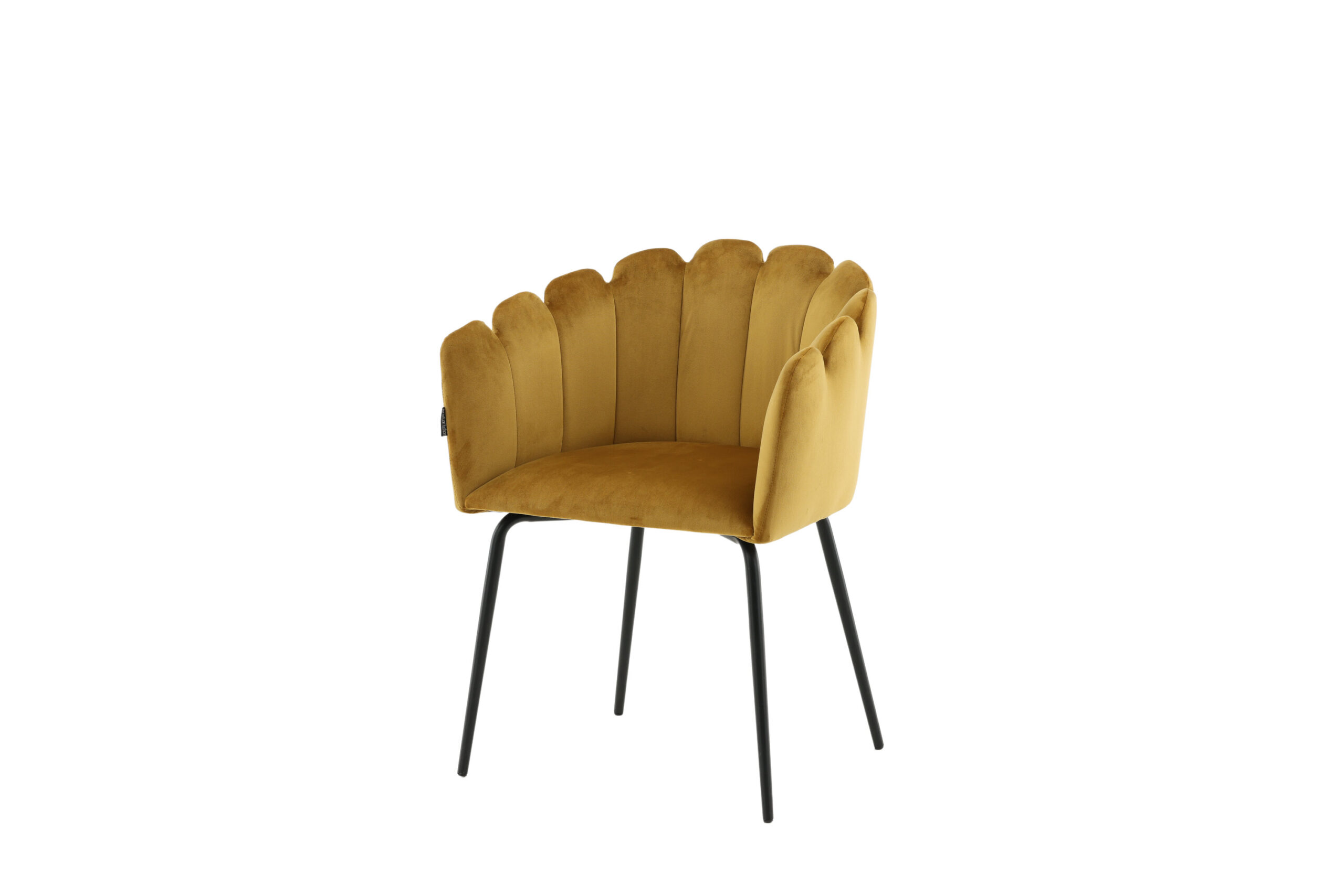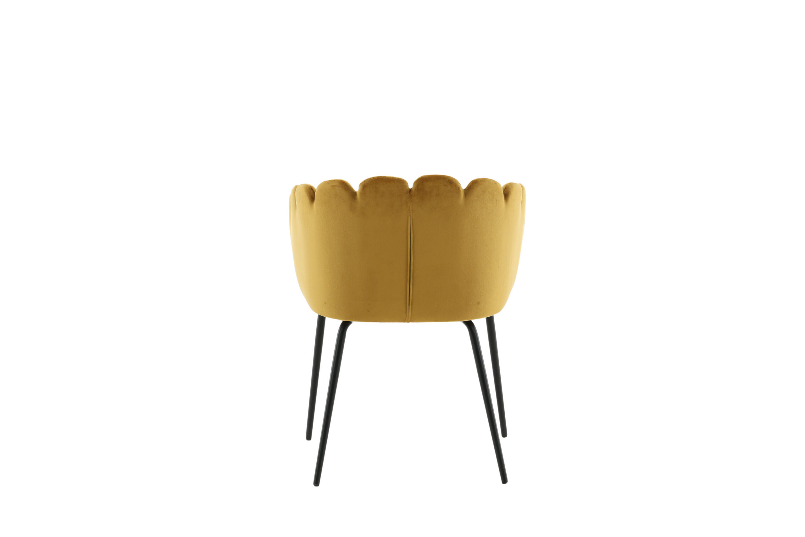 Šiuolaikinės spalvos gali lengvai pagerinti jūsų namų dekorą! Limhamn valgomojo kėdė yra šiuolaikiška ir daugelio mėgstama kėdė. Ji pasižymi patraukliu dizainu su kriauklės formos atlošu su dekoratyvinėmis siūlėmis ir apvalia geltono aksomo audinio sėdimąja dalimi. Kojos - iš juodos spalvos, milteliniu būdu dengto metalo. Sukurkite jaukų namų židinį! Nesudėtingai surenkama.