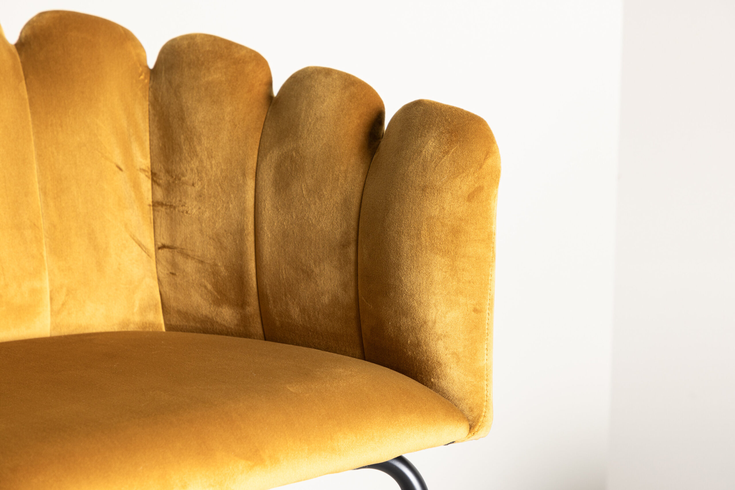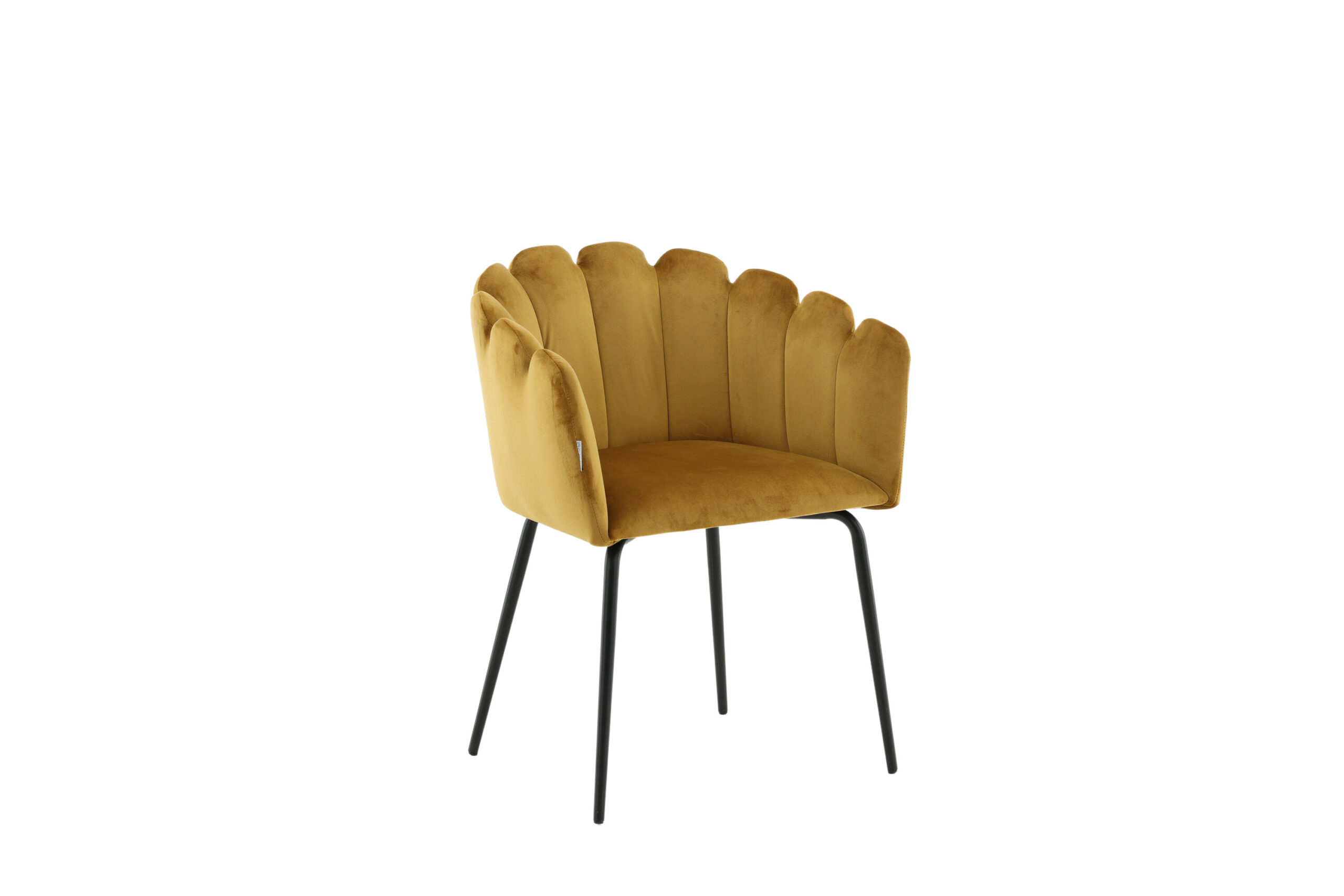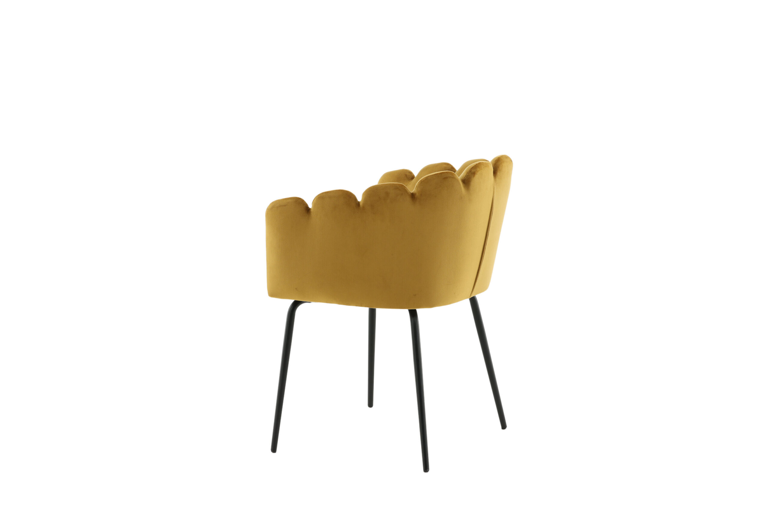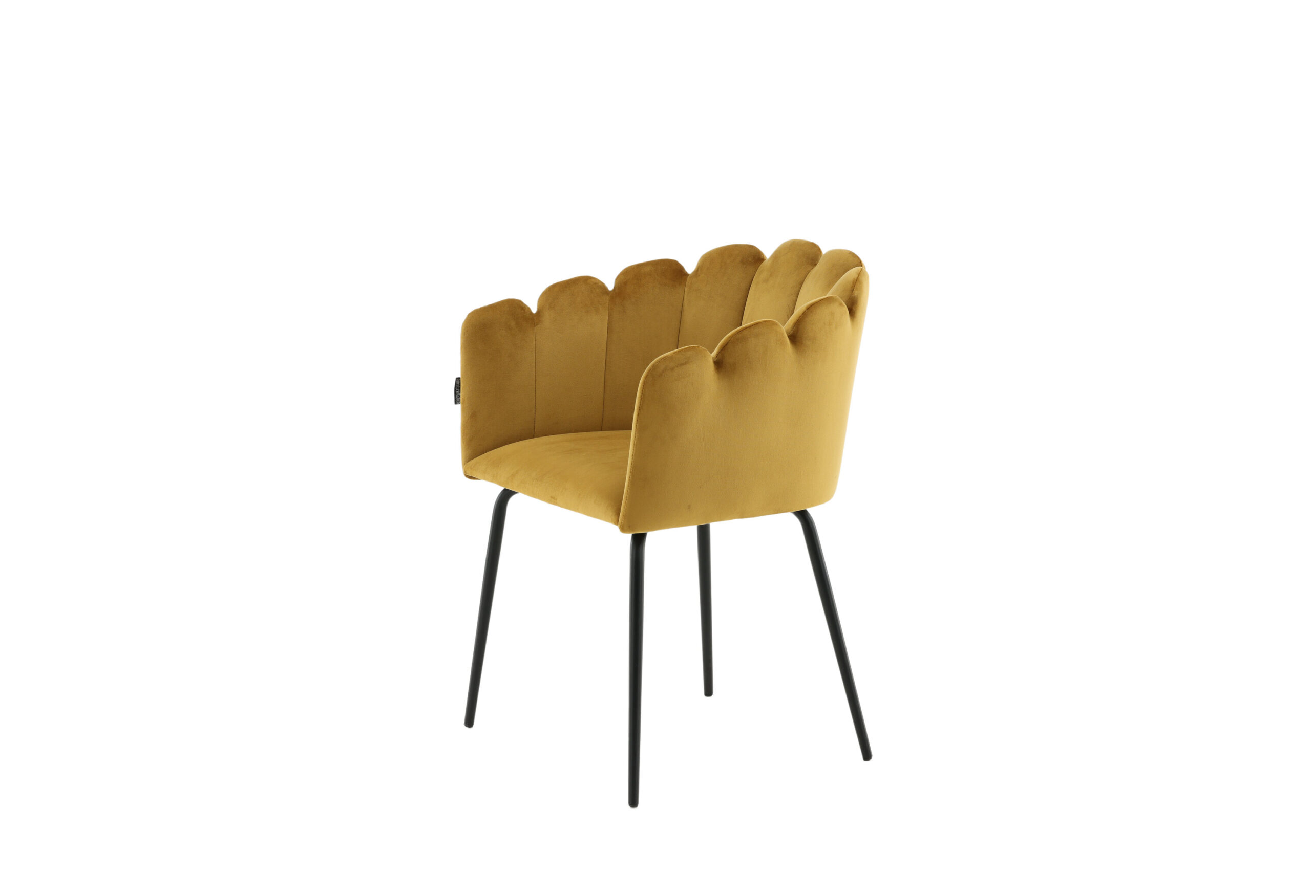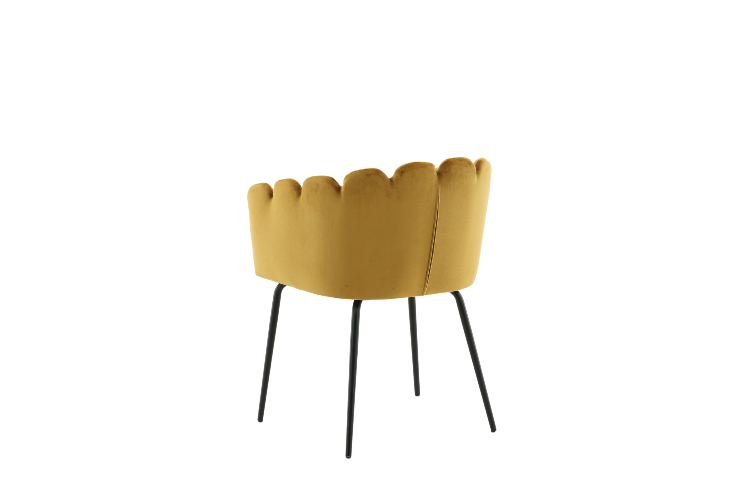 Šiuolaikinės spalvos gali lengvai pagerinti jūsų namų dekorą! Limhamn valgomojo kėdė yra šiuolaikiška ir daugelio mėgstama kėdė. Ji pasižymi patraukliu dizainu su kriauklės formos atlošu su dekoratyvinėmis siūlėmis ir apvalia geltono aksomo audinio sėdimąja dalimi. Kojos - iš juodos spalvos, milteliniu būdu dengto metalo. Sukurkite jaukų namų židinį! Nesudėtingai surenkama.