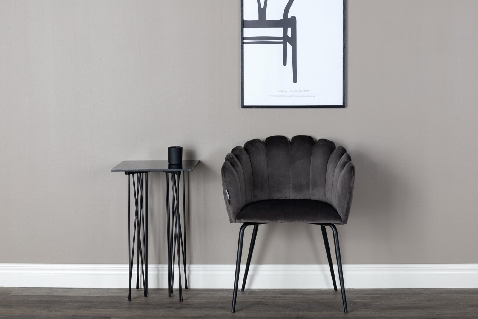 Patogiai įsitaisykite ant mūsų puikių aksominių kėdžių iš Limhamn kolekcijos. Pristatome elegantišką pilnai apmuštą modernaus dizaino fotelį, su juodos spalvos, milteliniu būdu dengto metalo kojomis. Dekoratyvi atlošo nugarėlė su dekoratyvinėmis siūlėmis ir pilko aksomo audinio sėdimoji dalis. Komplektuokite kartu su vienu iš mūsų modernių valgomojo stalų ir sukurkite žavų namų akcentą, prie kurio susirinks šeima. Nesudėtingai surenkama.