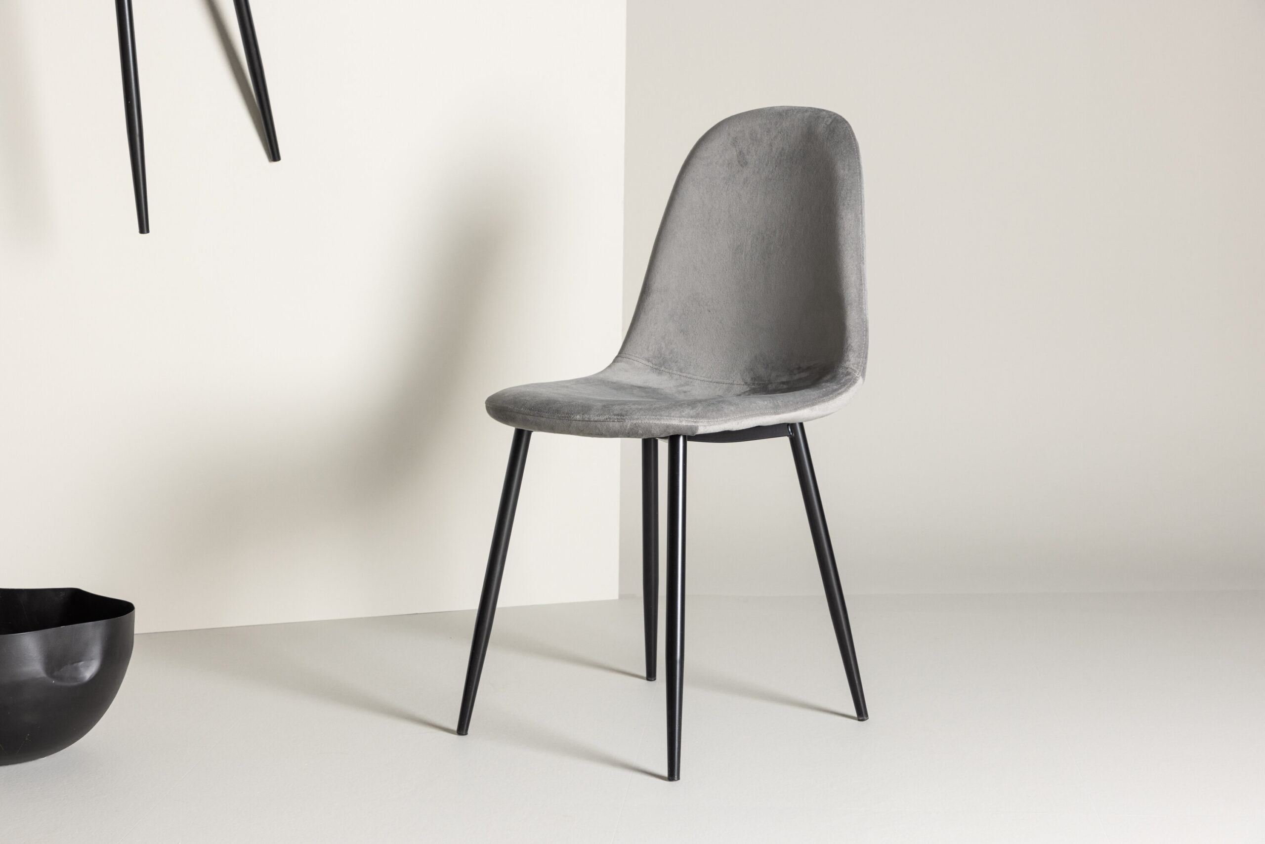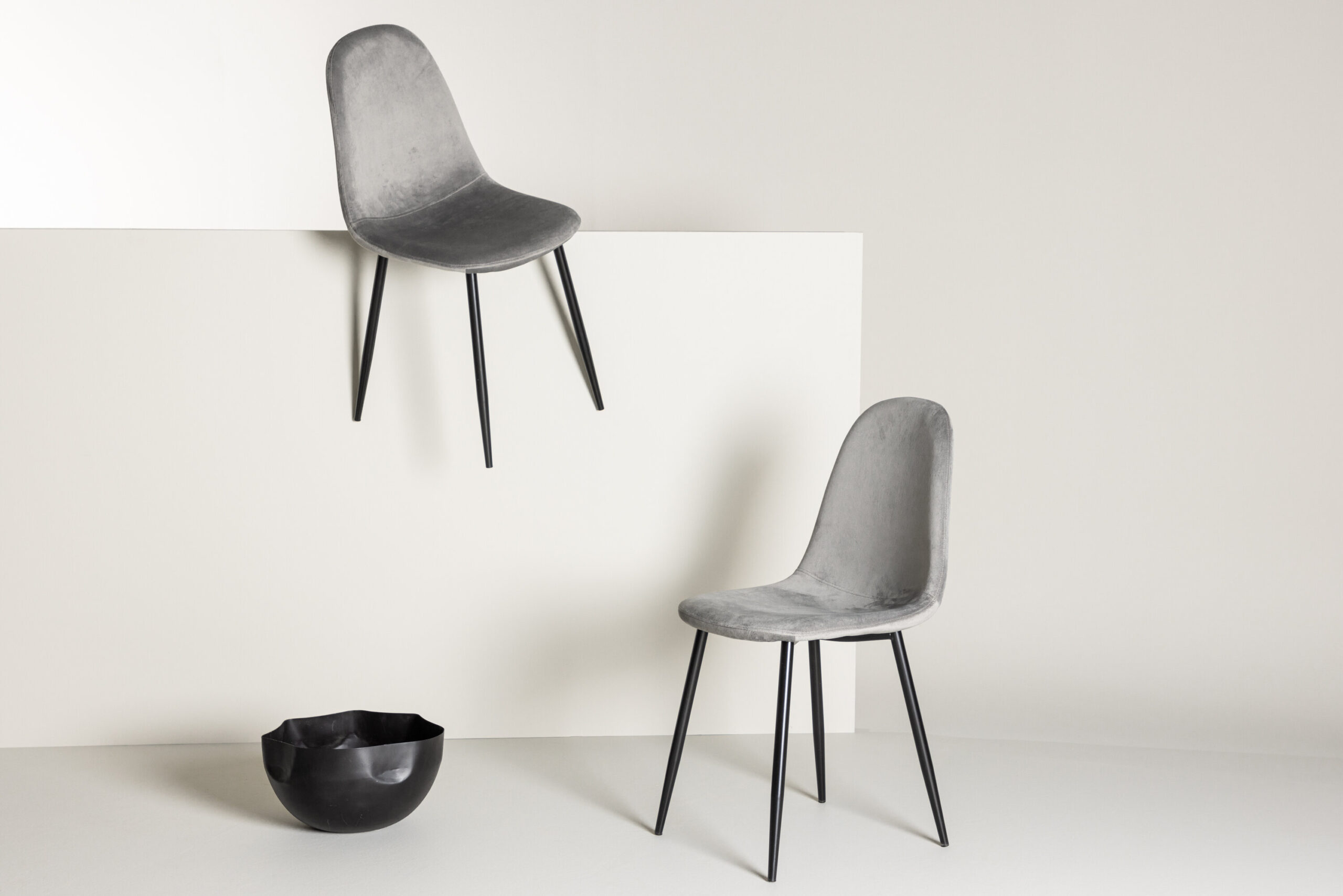 Moderni kėdė svajonė iš Polar kolekcijos, nesenstančios pilkos spalvos! Ši valgomojo kėdė švelniai suapvalintu atlošu ir sėdimąja dalimi iš aksominio audinio ir juodos spalvos, milteliniu būdu dengto metalo kojomis, yra tiek pat patogi, kiek ir patraukli akiai. Jaukiai apstatykite namus ir mėgaukitės gardžiais valgiais! Nesudėtingai surenkama. Patarimai, kaip prižiūrėti: Prieš naudodami impregnuokite audinį, naudokite purškiklį, kuris padės lengviau pašalinti nešvarumus ir dėmes ateityje. Nedelsdami pašalinkite dėmes, netrinkite, o stenkitės jas švelniai išvalyti medžiagos skiaute. Jei dėmės neišnyksta, pabandykite valyti dėmių valikliu, prieš tai pabandę ant mažiau matomos audinio vietos.