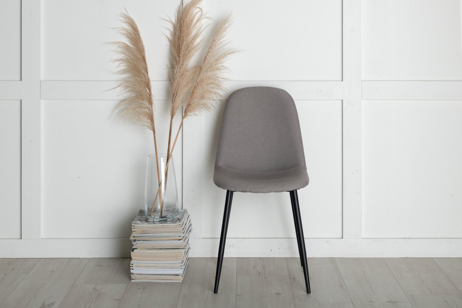 Praktiška ir paprasta valgomojo kėdė - patogi ir funkcionali! Polar turi apmuštą konstrukciją, juodos spalvos, milteliniu būdu dengto metalo kojas, švelniai suapvalintą atlošą ir sėdimąją dalį iš pilko poliesterio audinio su paminkštinimu. Derinkite ją su stilingu valgomojo stalu ir mėgaukitės gardžiais valgiais! Nesudėtingai surenkama. Priežiūros patarimai: Use fabric spray to impregnate the fabric before use, which will also make it easier to remove any dirt and stains in the future. Remove stains immediately, do not rub, but try to gently absorb with a cloth