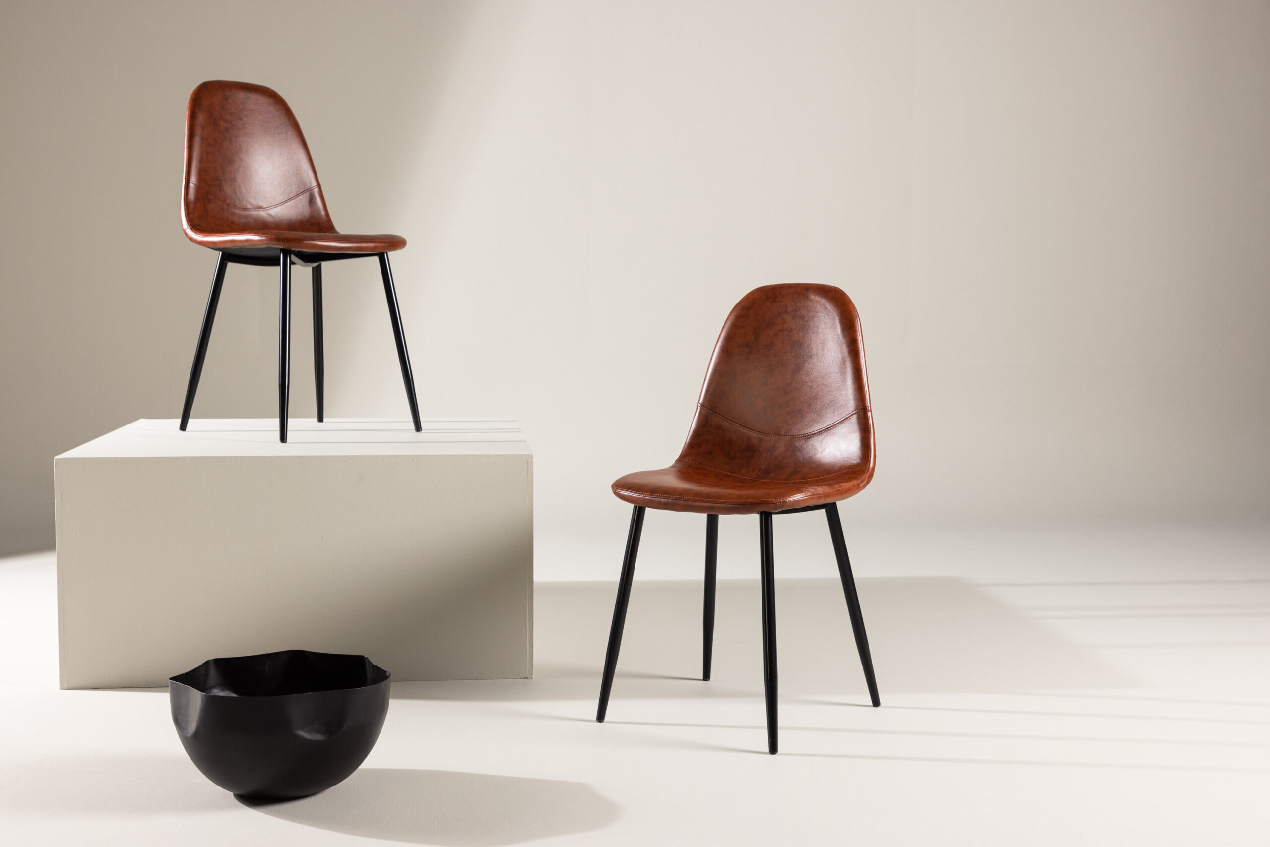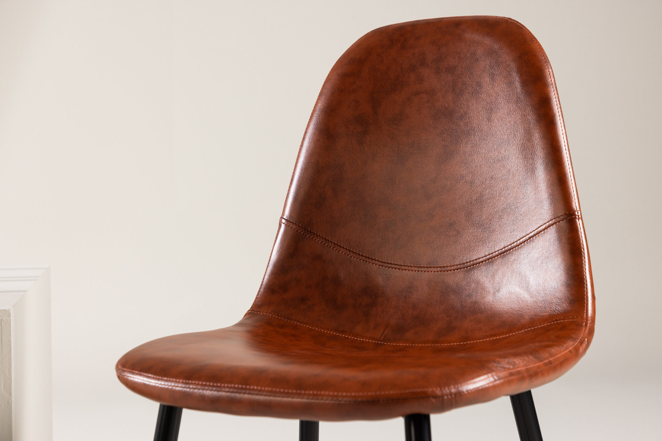 Moderni kėdė svajonė iš kolekcijos Polar, pagaminta iš klasikinės rudos dirbtinės odos su paminkštinimu! Ši pilnai apmušta valgomojo kėdė, švelniai suapvalintu atlošu ir juodos spalvos, milteliniu būdu dengto metalo kojomis, yra tiek pat patogi, kiek ir akį traukianti. Jaukiai apstatykite namus ir mėgaukitės maloniais valgiais! Nesudėtingai surenkama.