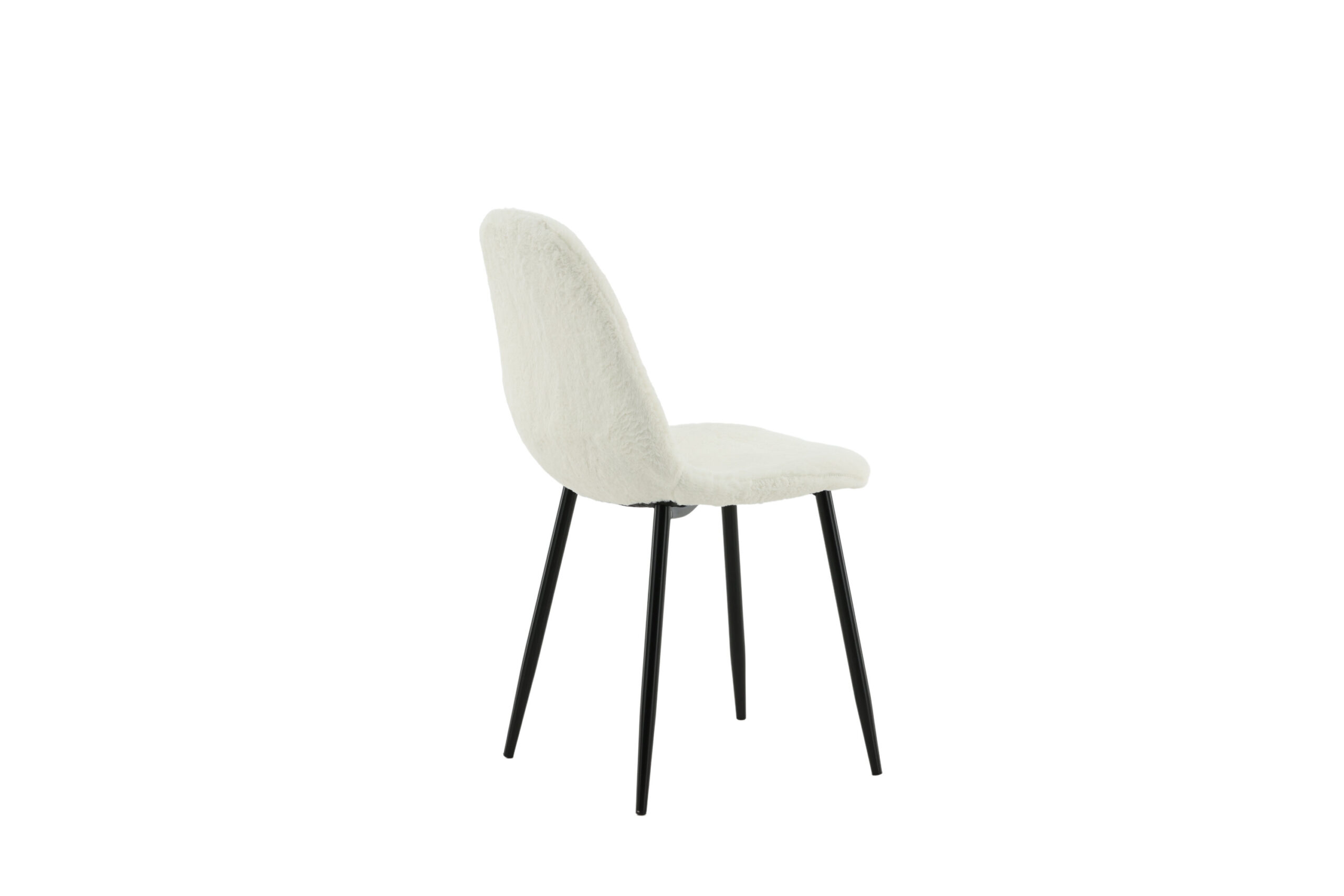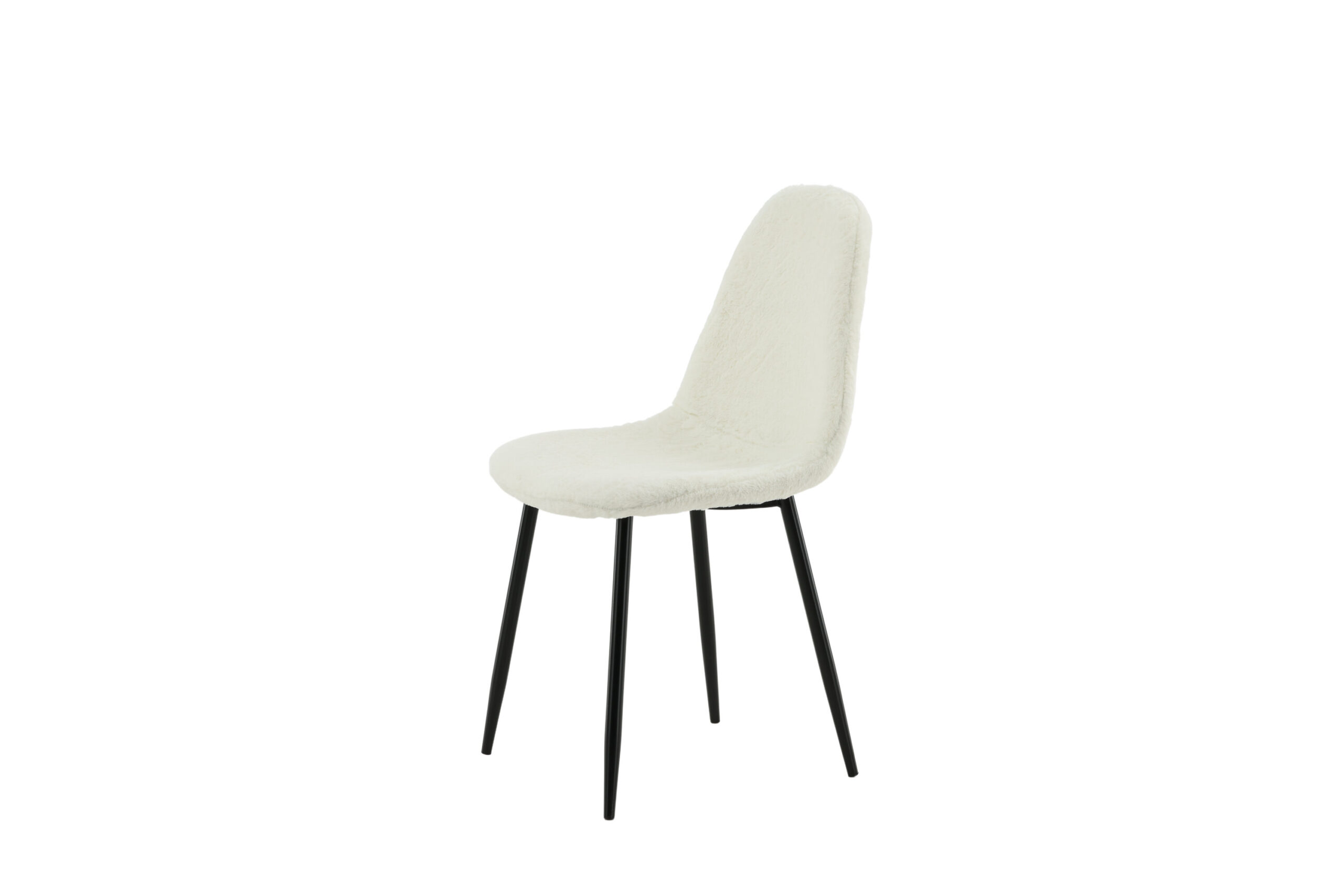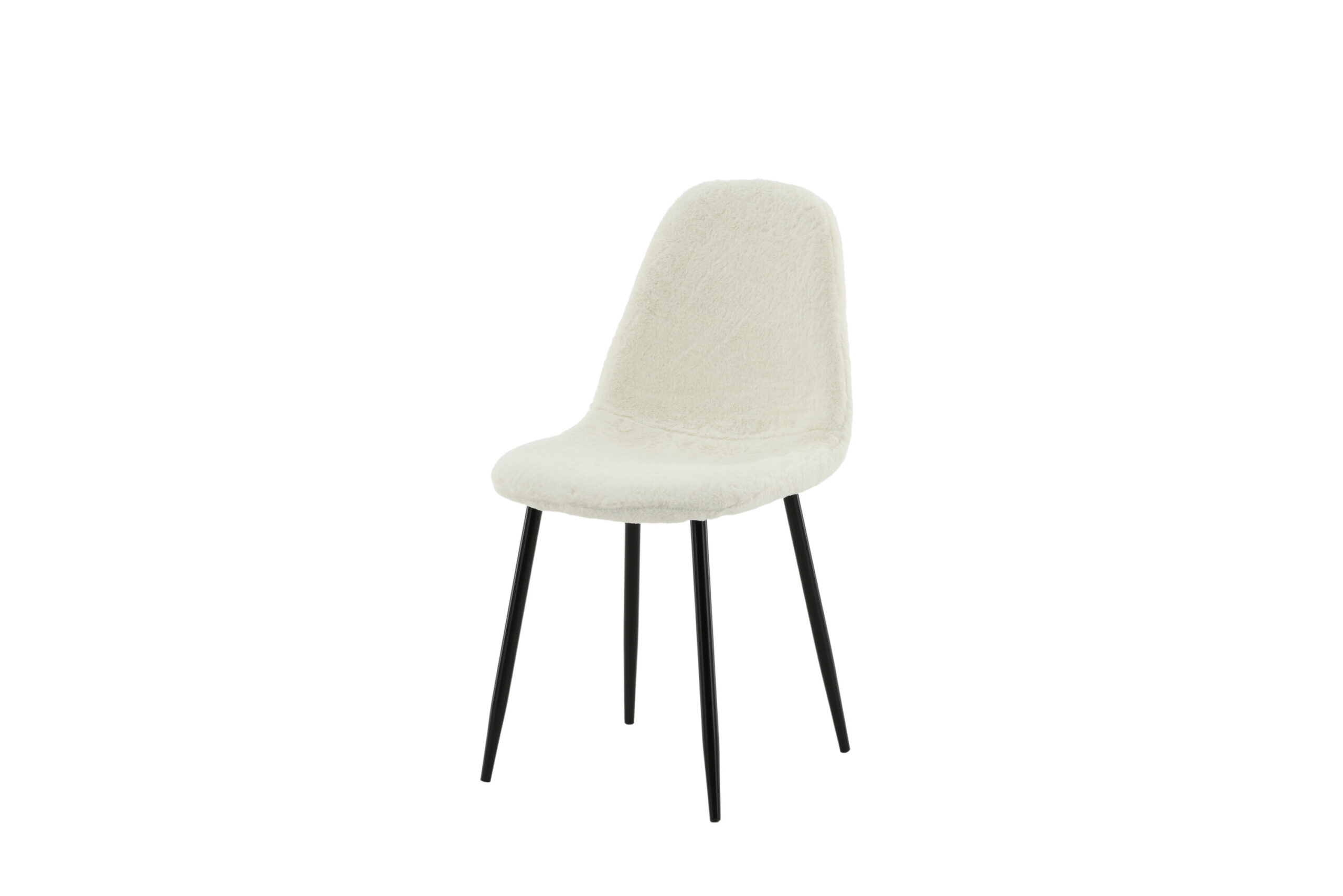 Sukurkite patrauklią namų erdvę! Valgomojo kėdė iš kolekcijos Polar, pilnai išbaigto dizaino, su juodos spalvos milteliniu būdu dengto metalo kojomis. Atlošas lengvai suapvalintas, o sėdimoji dalis pagaminta iš balto pūkuoto poliesterio Teddy audinio su paminkštinimu. Sukomplektuokite kartu su vienu iš mūsų populiarių valgomojo stalų, jei norite sukurti išbaigtą valgomojo komplektą! Lengvai surenkama.