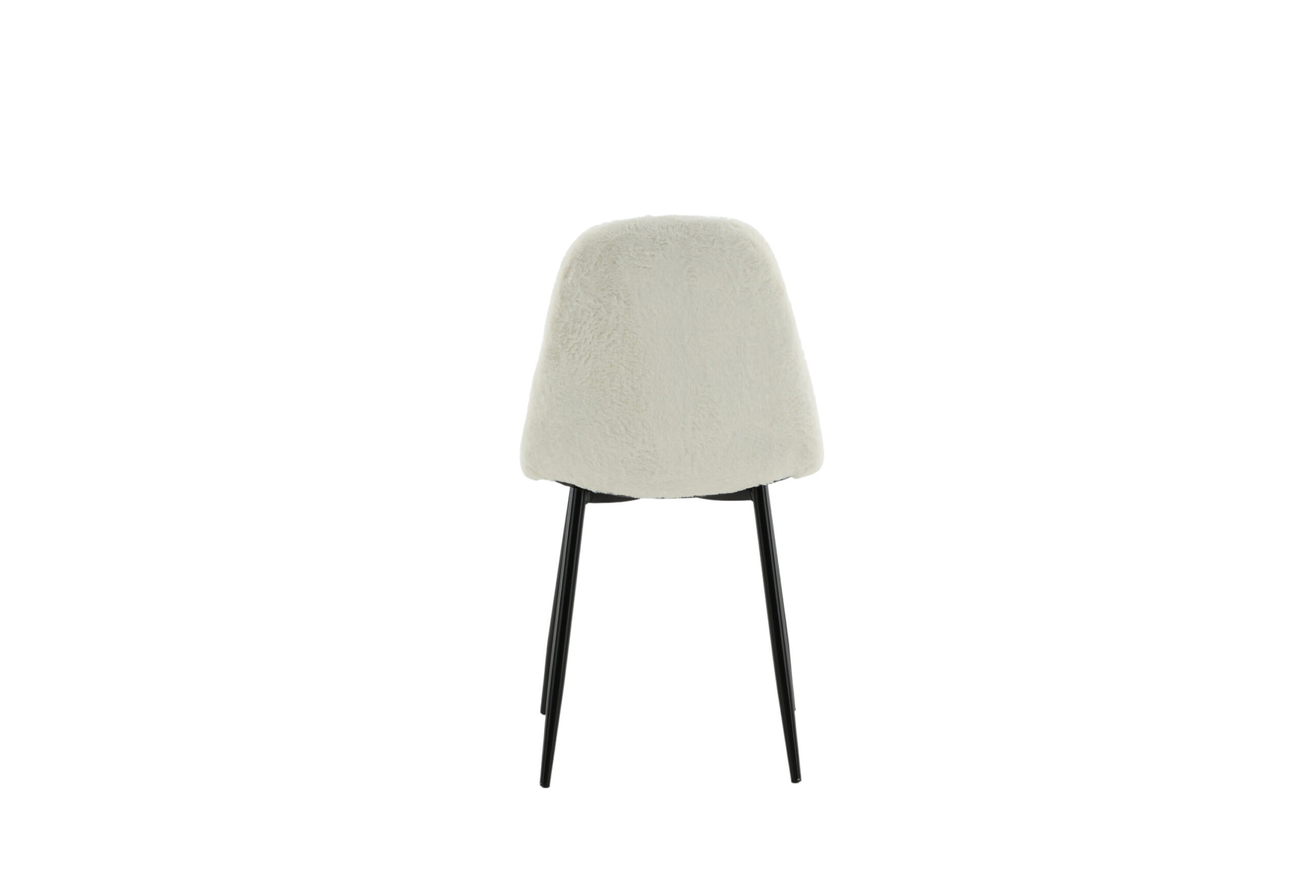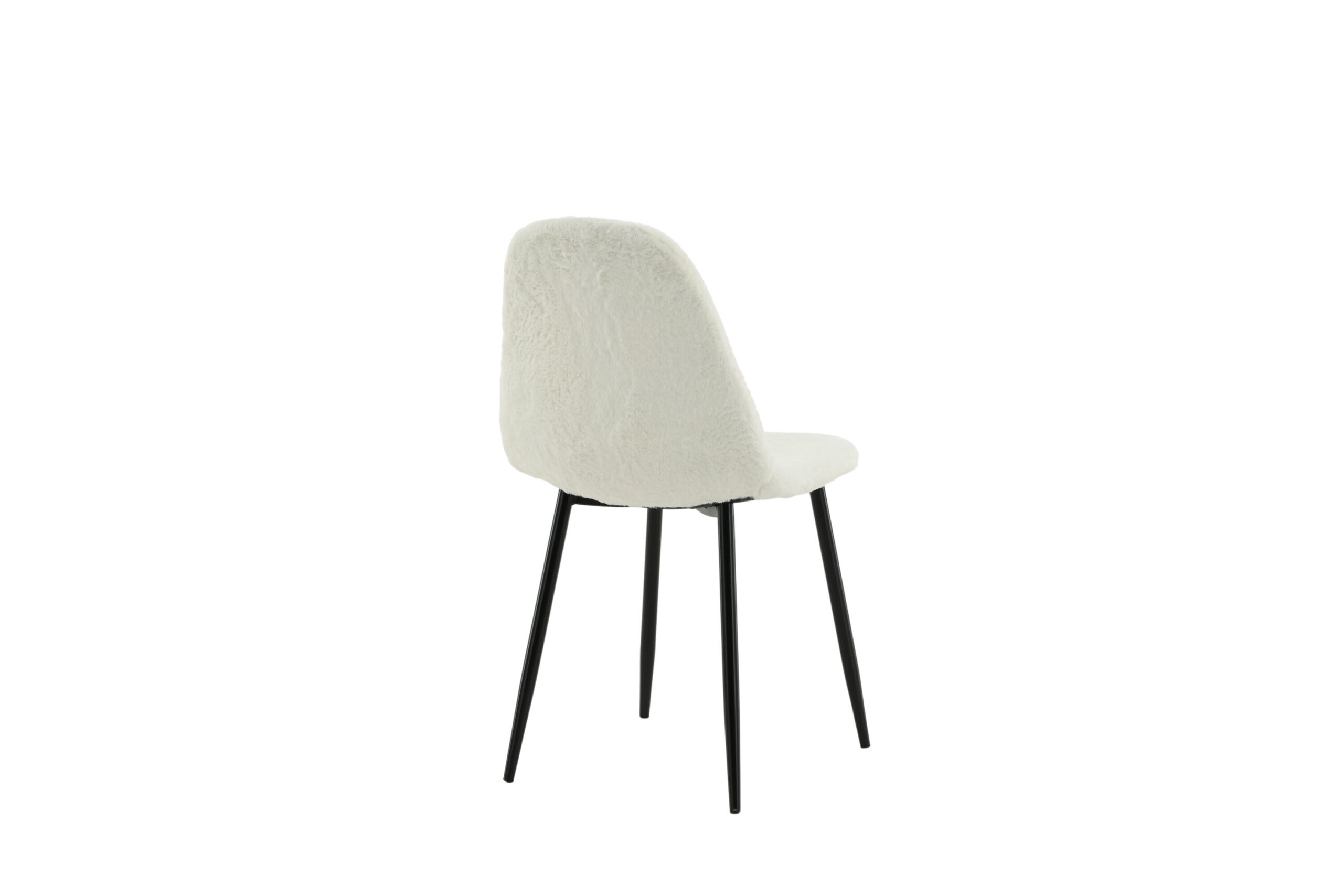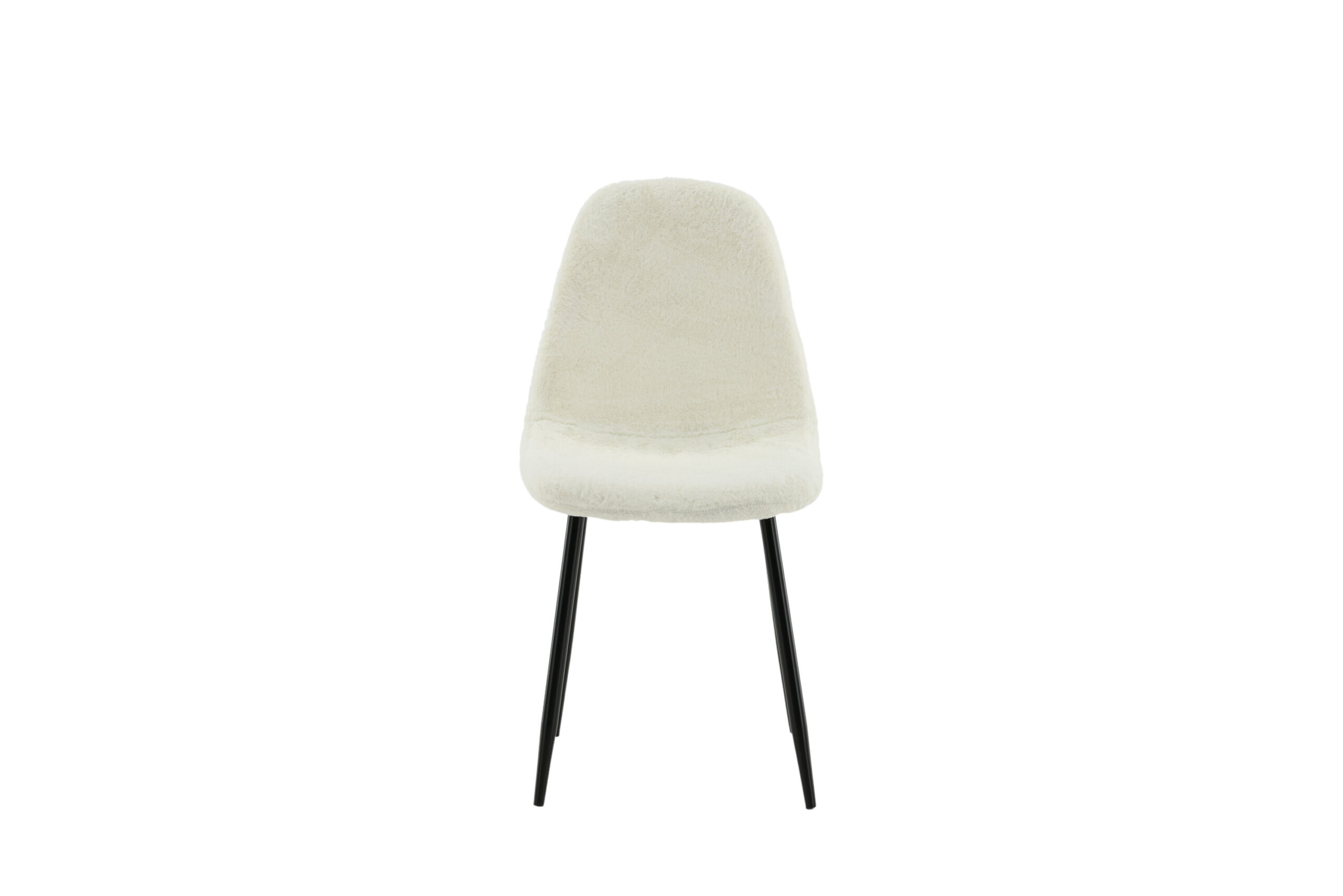 Sukurkite patrauklią namų erdvę! Valgomojo kėdė iš kolekcijos Polar, pilnai išbaigto dizaino, su juodos spalvos milteliniu būdu dengto metalo kojomis. Atlošas lengvai suapvalintas, o sėdimoji dalis pagaminta iš balto pūkuoto poliesterio Teddy audinio su paminkštinimu. Sukomplektuokite kartu su vienu iš mūsų populiarių valgomojo stalų, jei norite sukurti išbaigtą valgomojo komplektą! Lengvai surenkama.