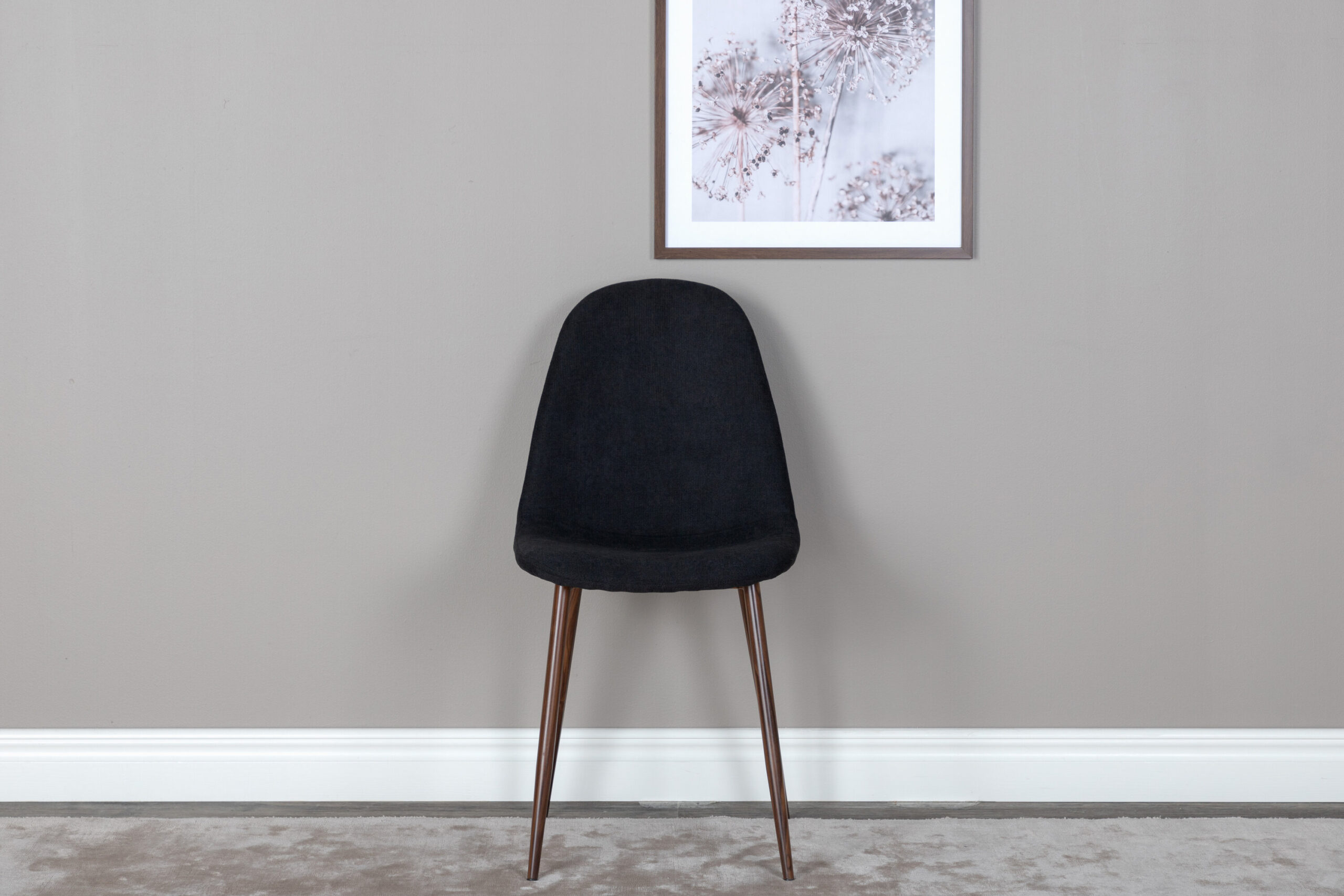 Polar valgomojo kėdė su riešutmedžio spalvos metalinėmis kojomis, kurios dizainas traukia akį ir pirmauja tendencijų sąrašuose! Švelniai suapvalintas klasikinis atlošas, su plokščia juodos spalvos poliesterio audiniu aptraukta ir paminkštinta, sėdimąja dalimi. Nesudėtingai surenkama. Čia su šeima ir draugais patogiai praleisite valandų valandas!