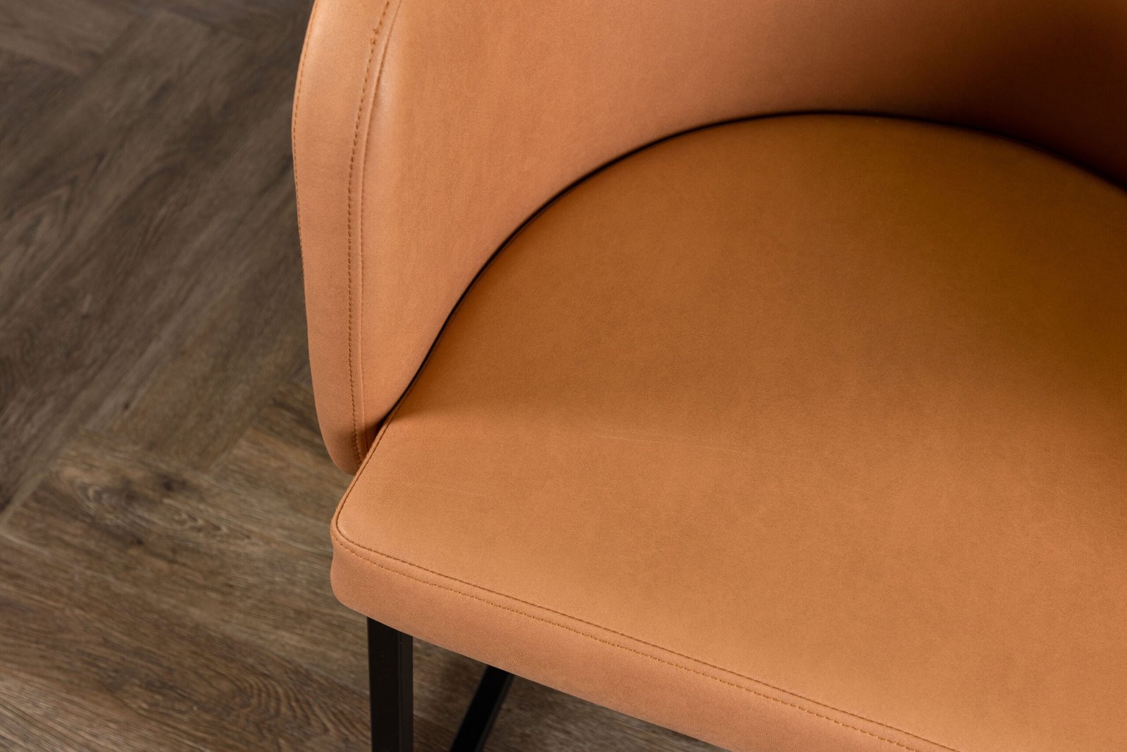 Simrishamn kolekcijos valgomojo kėdė yra tiek pat stilinga, kiek ir patogi, todėl prie jūsų valgomojo stalo atrodys prabangiai ir trauks akį! Furniture Fashion kolekcijai priklausanti kėdė su apmušta sėdimąja dalimi, užapvalintu atlošu iš rudos spalvos TC audinio ir dekoratyviniu minimalistiniu kojų rėmu iš juodo plieno. Madingas dizainas daro įspūdį ir neprieštarauja tendencijoms. Patogiai įsitaisykite ir mėgaukitės valgiais ant šių elegantiškų valgomojo kėdžių!