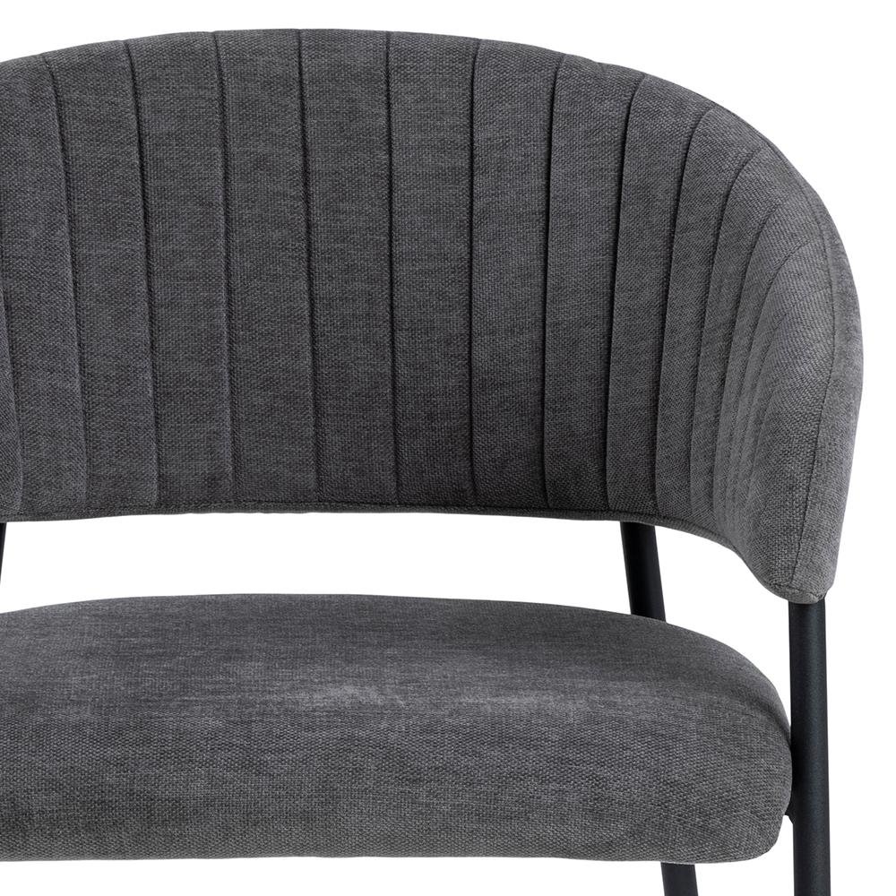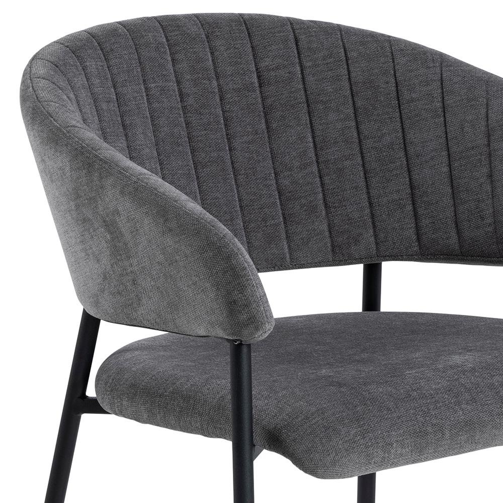 Ann valgomojo kėdė su porankiais, Danny kolekcijos tamsiai pilkos spalvos audinys 18, pagrindas juodas matinis šiurkščios faktūros milteliniu būdu dengtas plienas, su vertikaliomis siūlėmis.