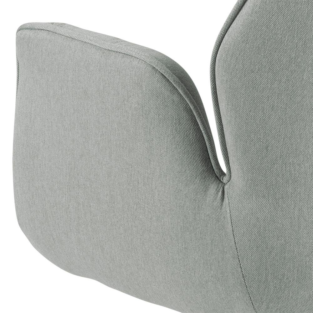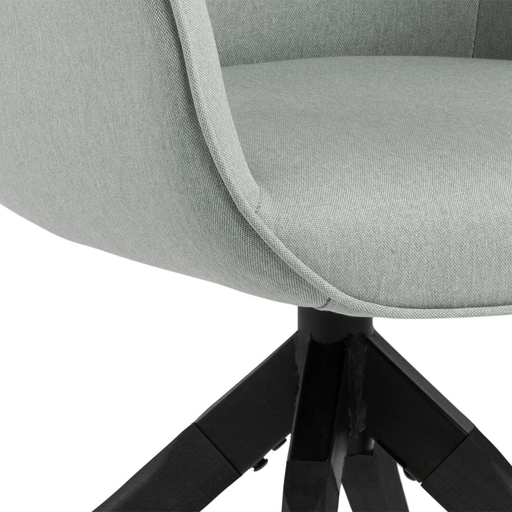 Aura valgomojo kėdė su porankiais, Town kolekcijos šviesiai pilkos spalvos audinys 13, keturių atšakų pagrindas – matinis juodas NC lakuotas kaučiukmedis, su automatinio grįžimo funkcija.