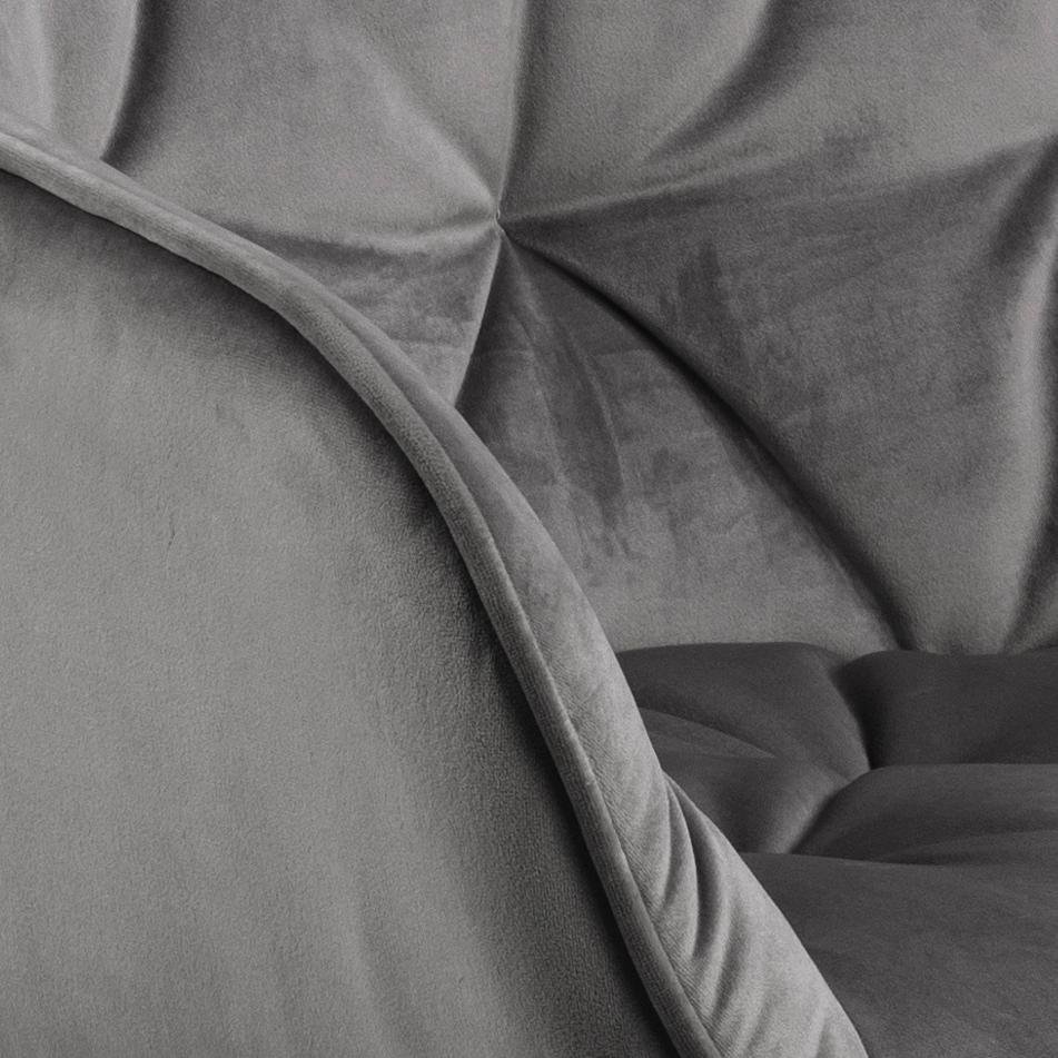 Brooke valgomojo kėdė su porankiais, Vic kolekcijos tamsiai pilkos spalvos audinys 28, pagrindas juodas matinis šiurkščios faktūros milteliniu būdu dengtas plienas, su sagutėmis.