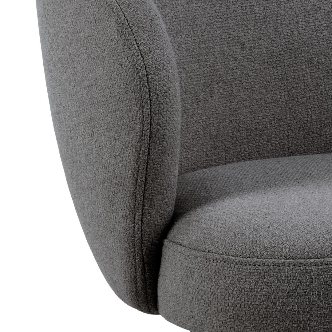 Darlene valgomojo kėdė su porankiais, Alea kolekcijos pilkos spalvos audinys 19 FR, pagrindas – plieninis, dengtas juoda matine šiurkščios faktūros milteline danga; trys siuvimo linijos, automatinio grįžimo funkcija, kišeninės Spy kolekcijosruoklės, pasukimo funkcija, su užtrauktuku.