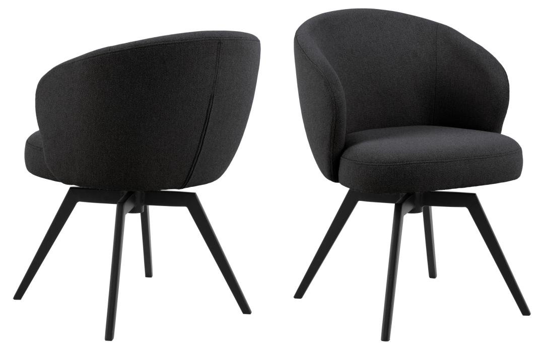 Darlene valgomojo kėdė su porankiais, Alea kolekcijos antracito spalvos audinys 22 FR, pagrindas – plieninis, dengtas juoda matine šiurkščios faktūros milteline danga; trys siuvimo linijos, automatinio grįžimo funkcija, kišeninės Spy kolekcijosruoklės, pasukimo funkcija, su užtrauktuku.
