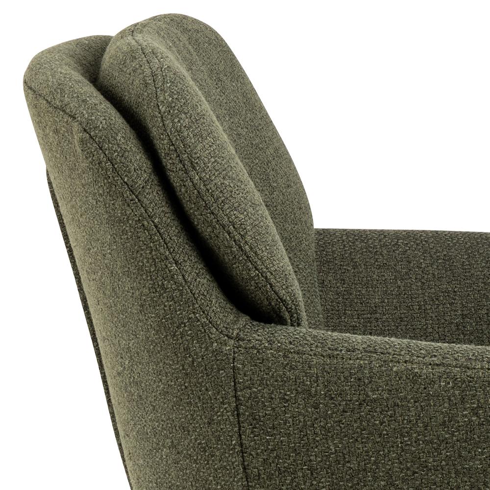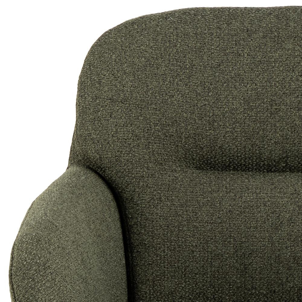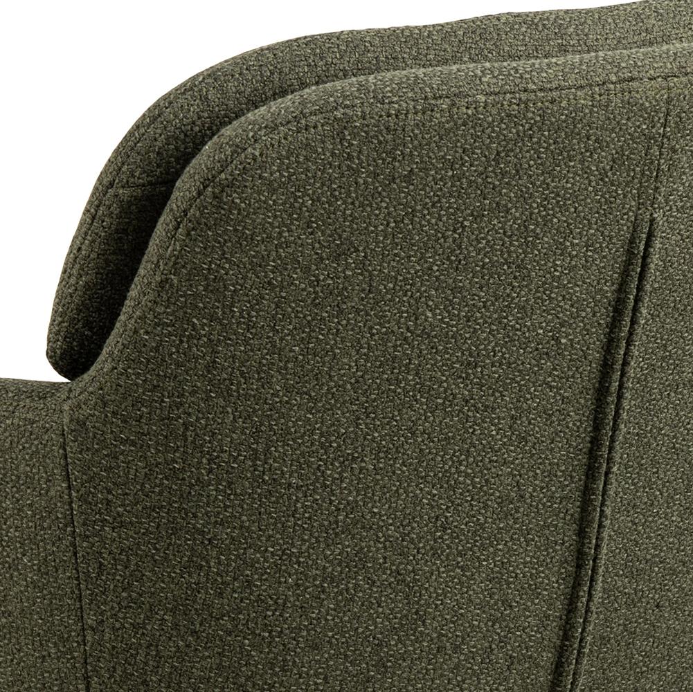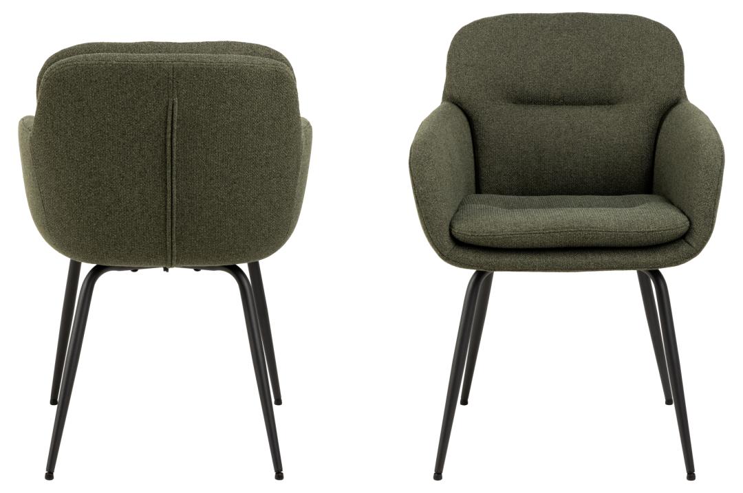Dora valgomojo kėdė su porankiais, Alea kolekcijos žalios spalvos audinys 61, pagrindas – plieninis, dengtas juoda matine šiurkščios faktūros milteline danga, horizontalūs dygsniai, su užtrauktuku.
