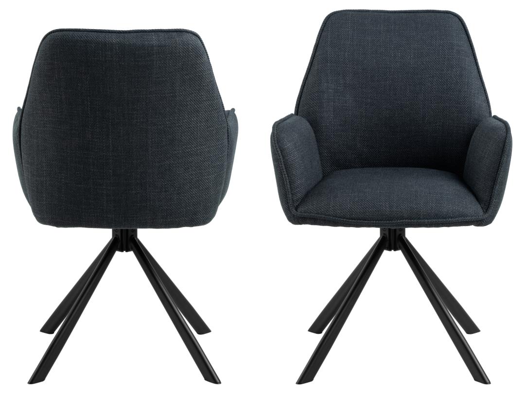 Glenda valgomojo kėdė su porankiais, Basel kolekcijos antracito spalvos audinys 16 FR, keturių atšakų pagrindas – juodas matinis šiurkščios faktūros milteliniu būdu dengtas plienas, pasukimo funkcija.