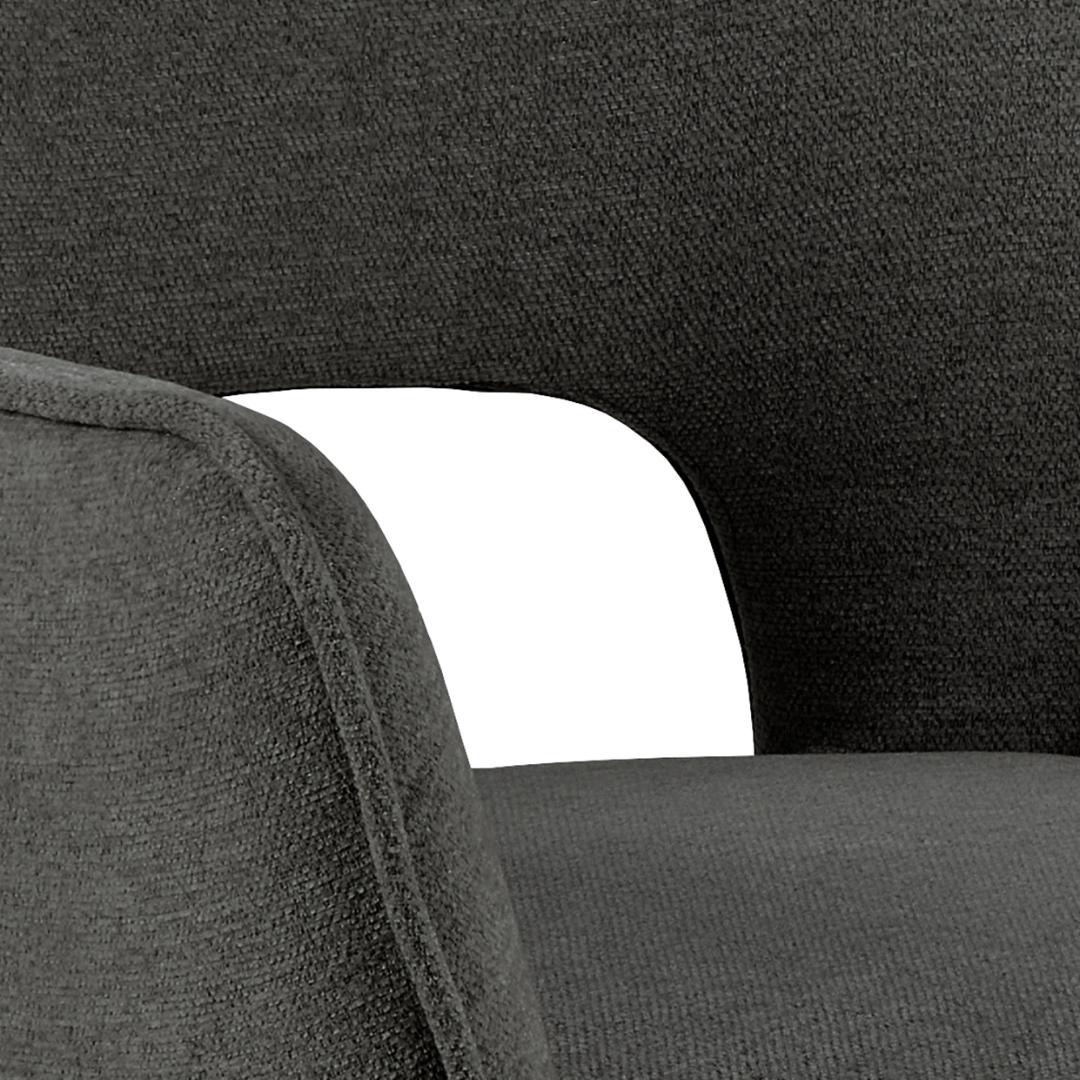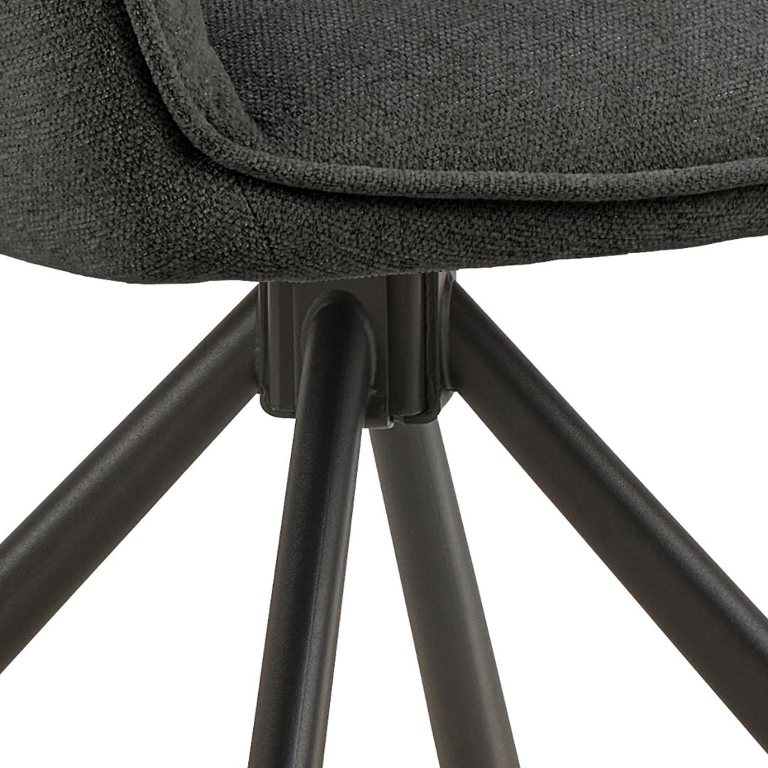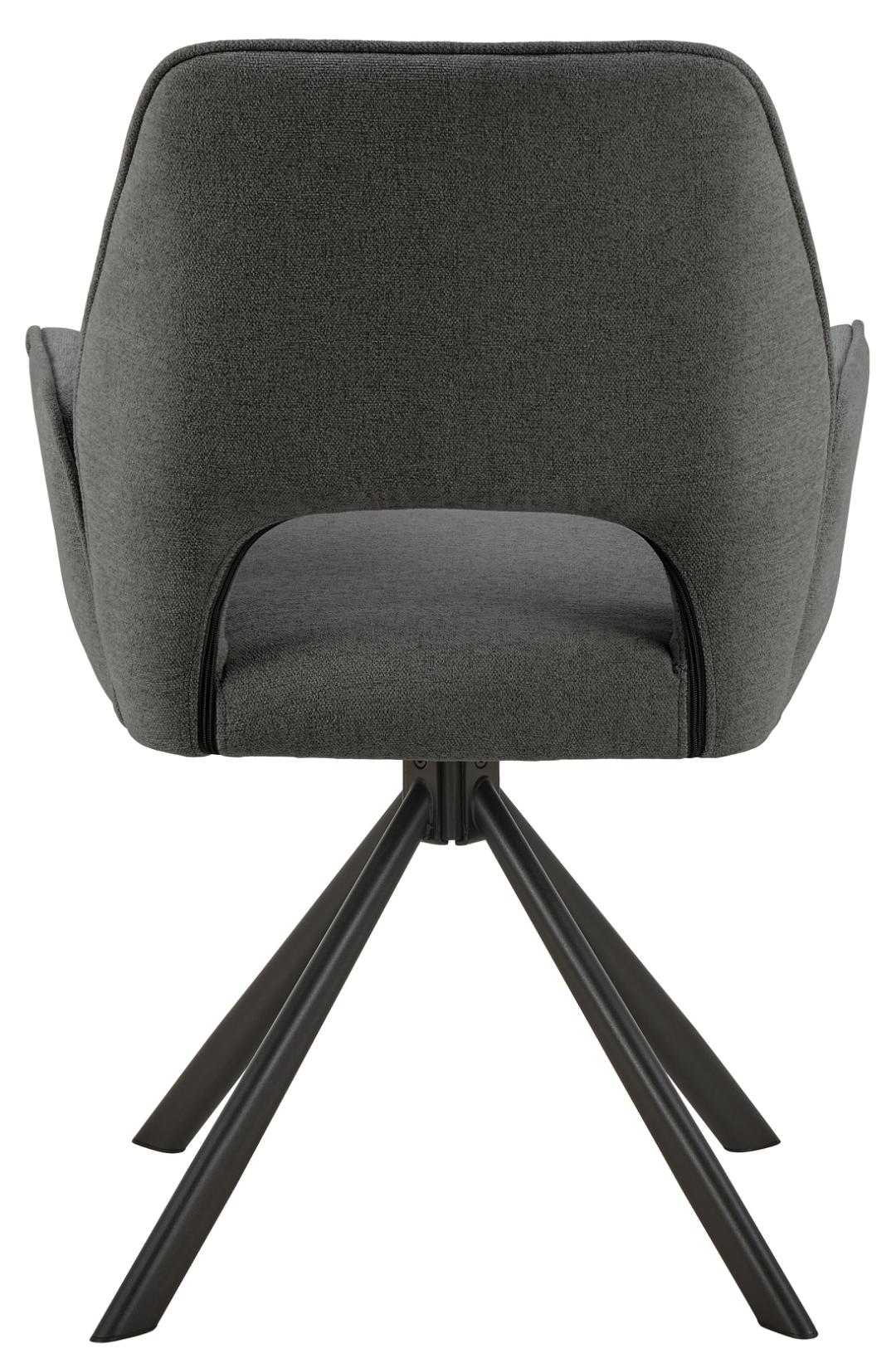 Graham valgomojo kėdė su porankiais, Apia kolekcijos tamsiai pilkos spalvos audinys 458, keturių atšakų pagrindas – juodas matinis šiurkščios faktūros milteliniu būdu dengtas plienas, pasukimo funkcija.