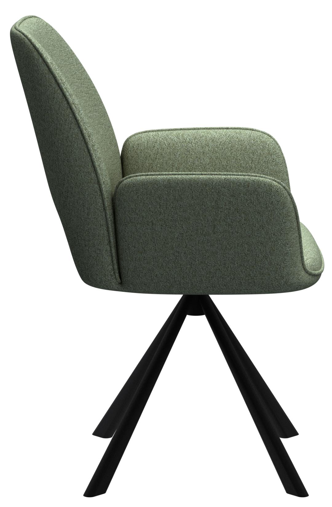 Graham valgomojo kėdė su porankiais, Apia kolekcijos žalios spalvos audinys 352, keturių atšakų pagrindas – juodas matinis šiurkščios faktūros milteliniu būdu dengtas plienas, pasukimo funkcija.