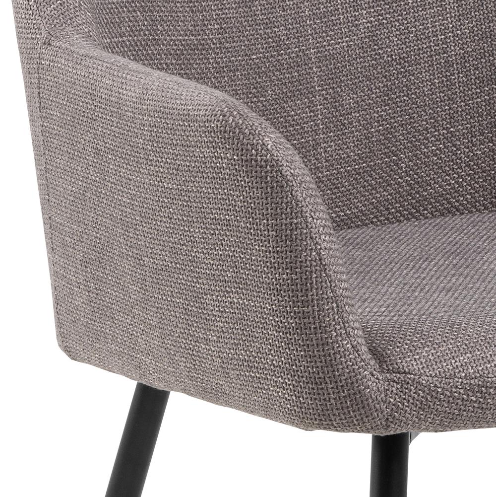 Lizzy valgomojo kėdė su porankiais, Basel kolekcijos audinys šviesiai pilkos spalvos rudos spalvos 34, matinės juodos grublėtos milteliniu būdu dengtos plieninės kojos su užtrauktuku.