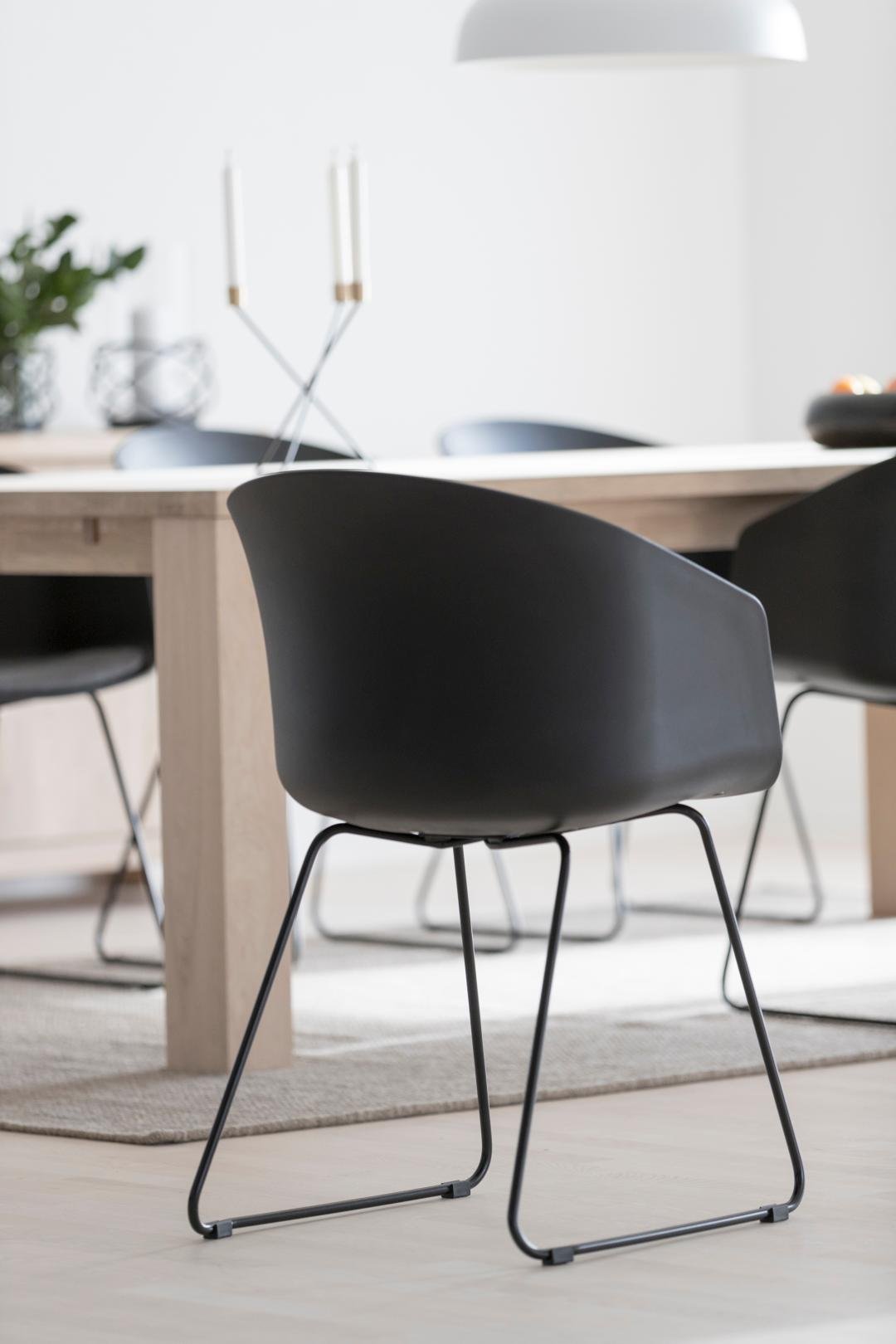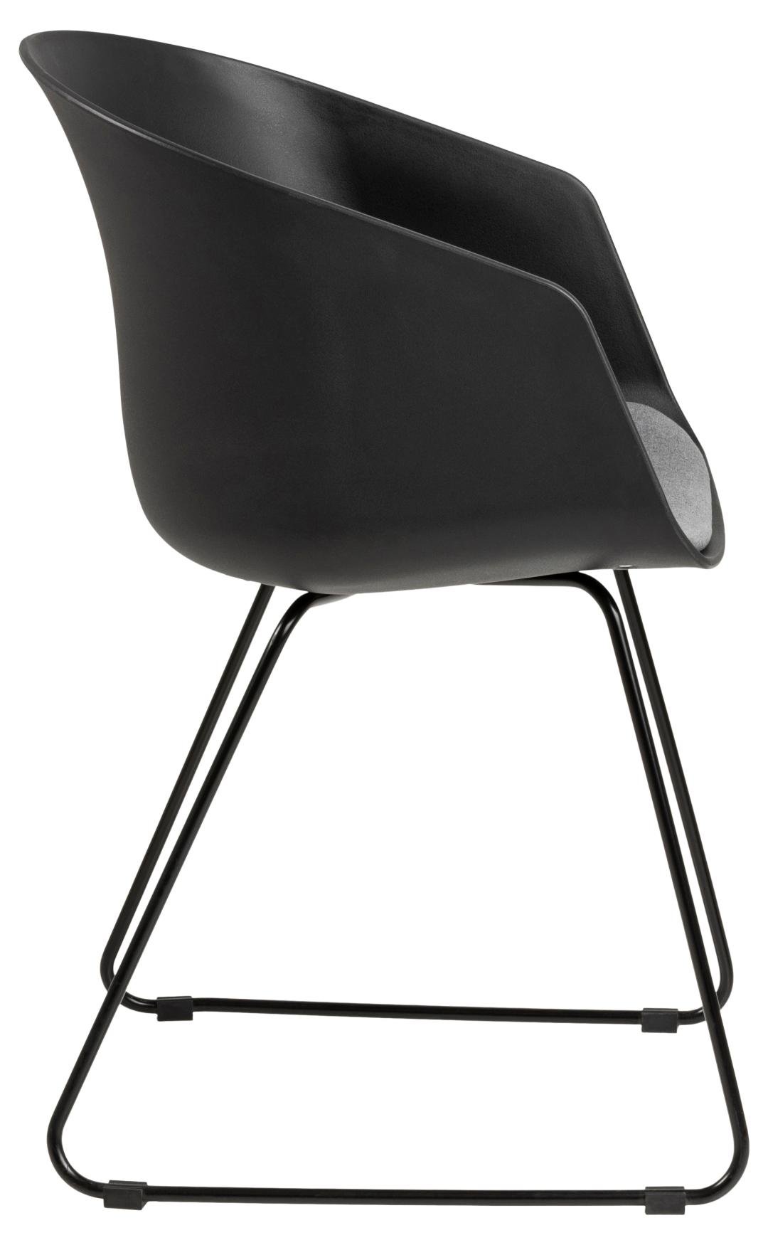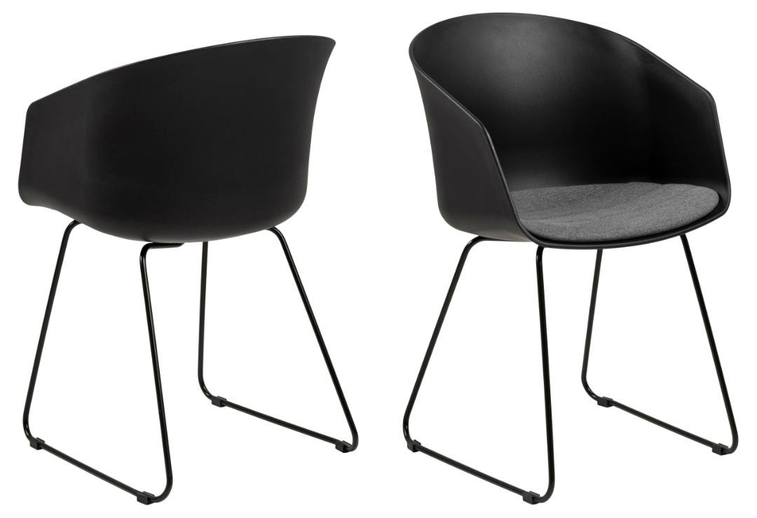 Moon valgomojo kėdė su porankiais, Spy kolekcijos audinys pilkas 20 ir matinio juodo grublėto polipropileno sėdimoji dalis, lenktas pagrindas, juodos milteliniu būdu dengtos plieninės kojos.