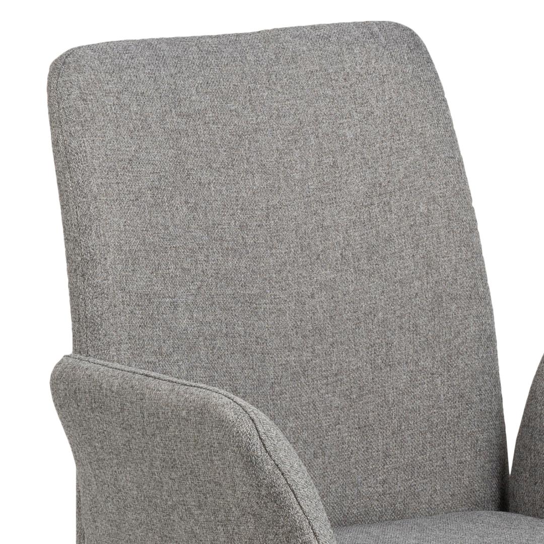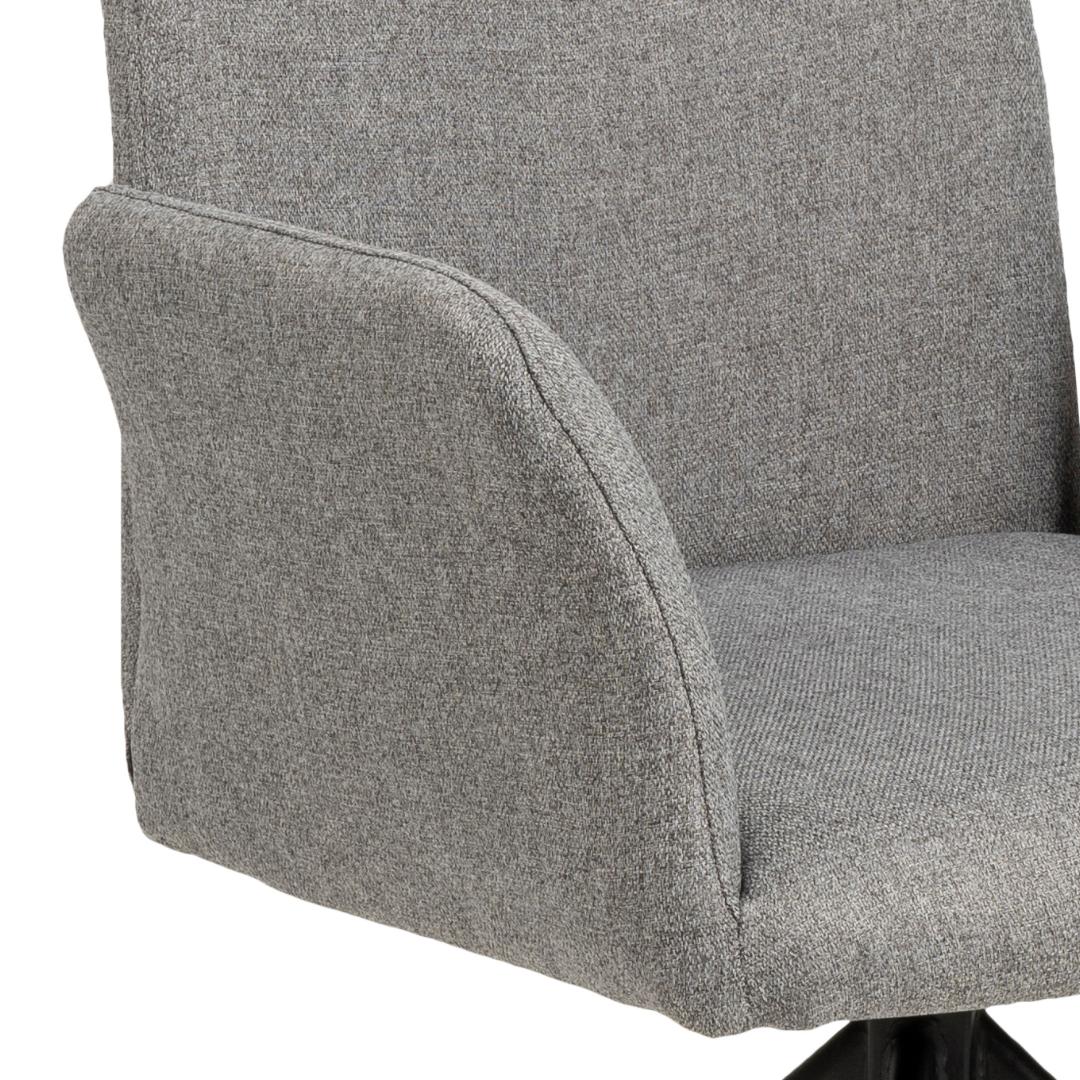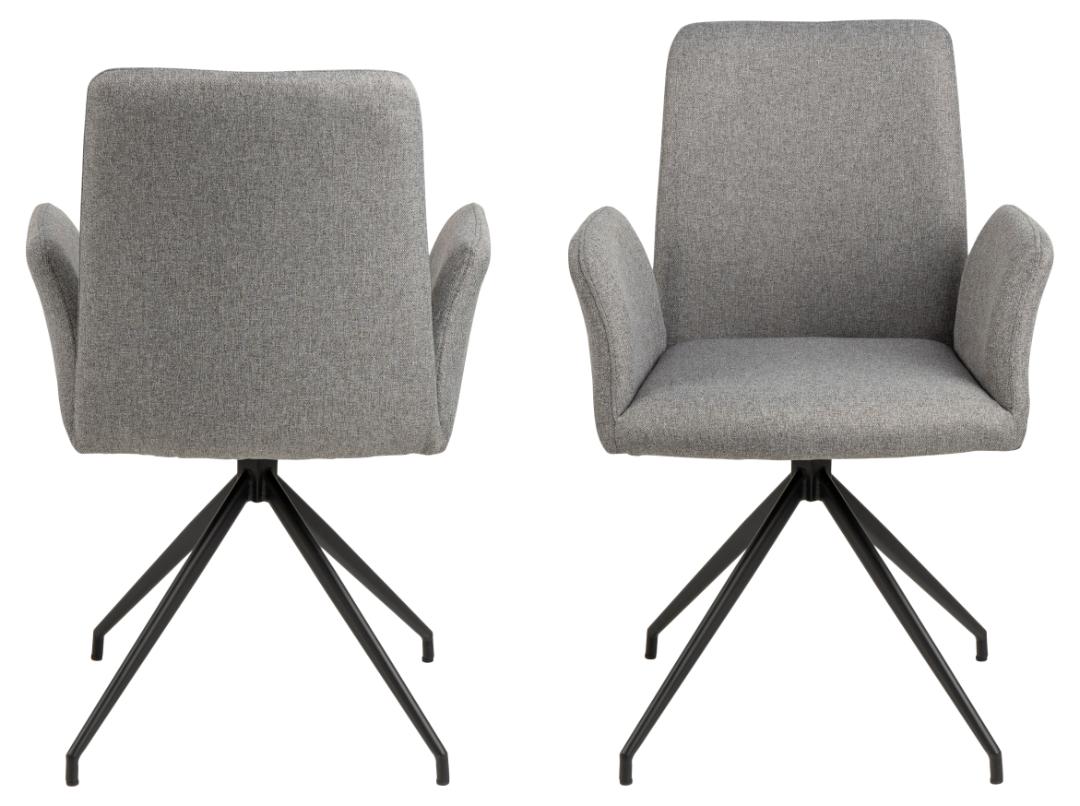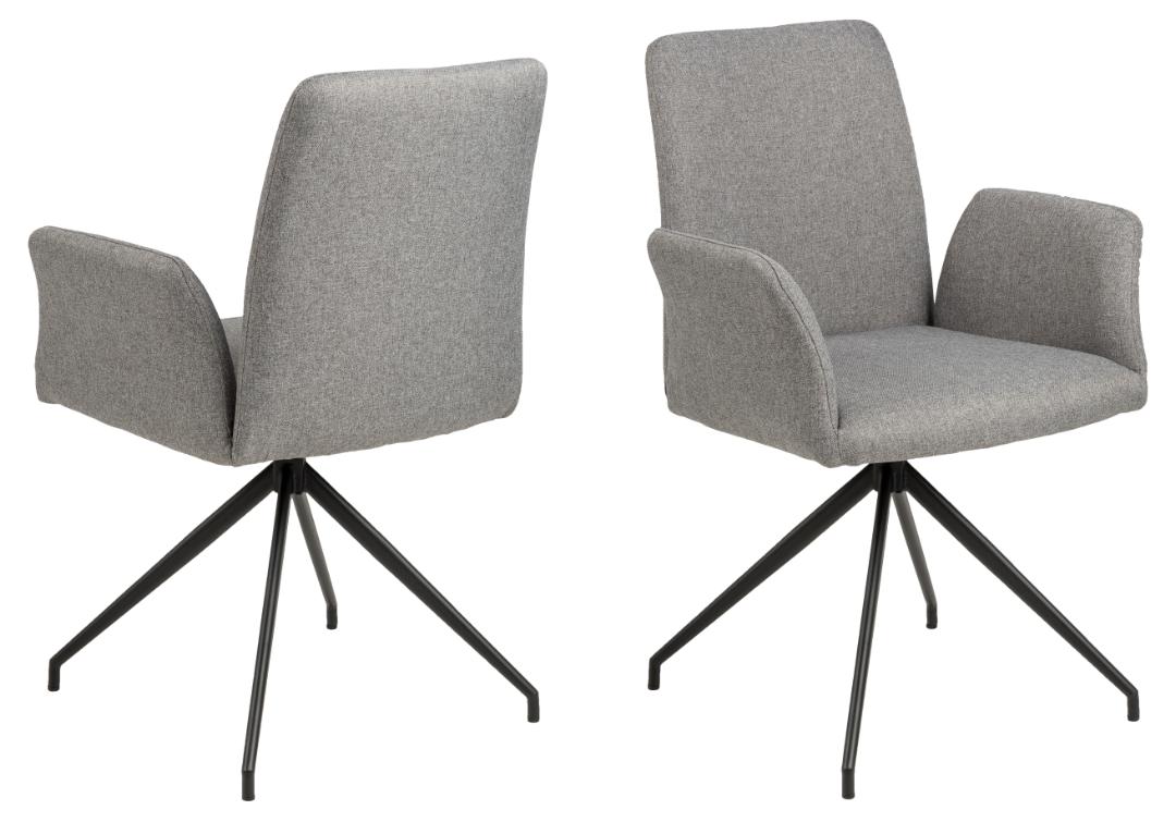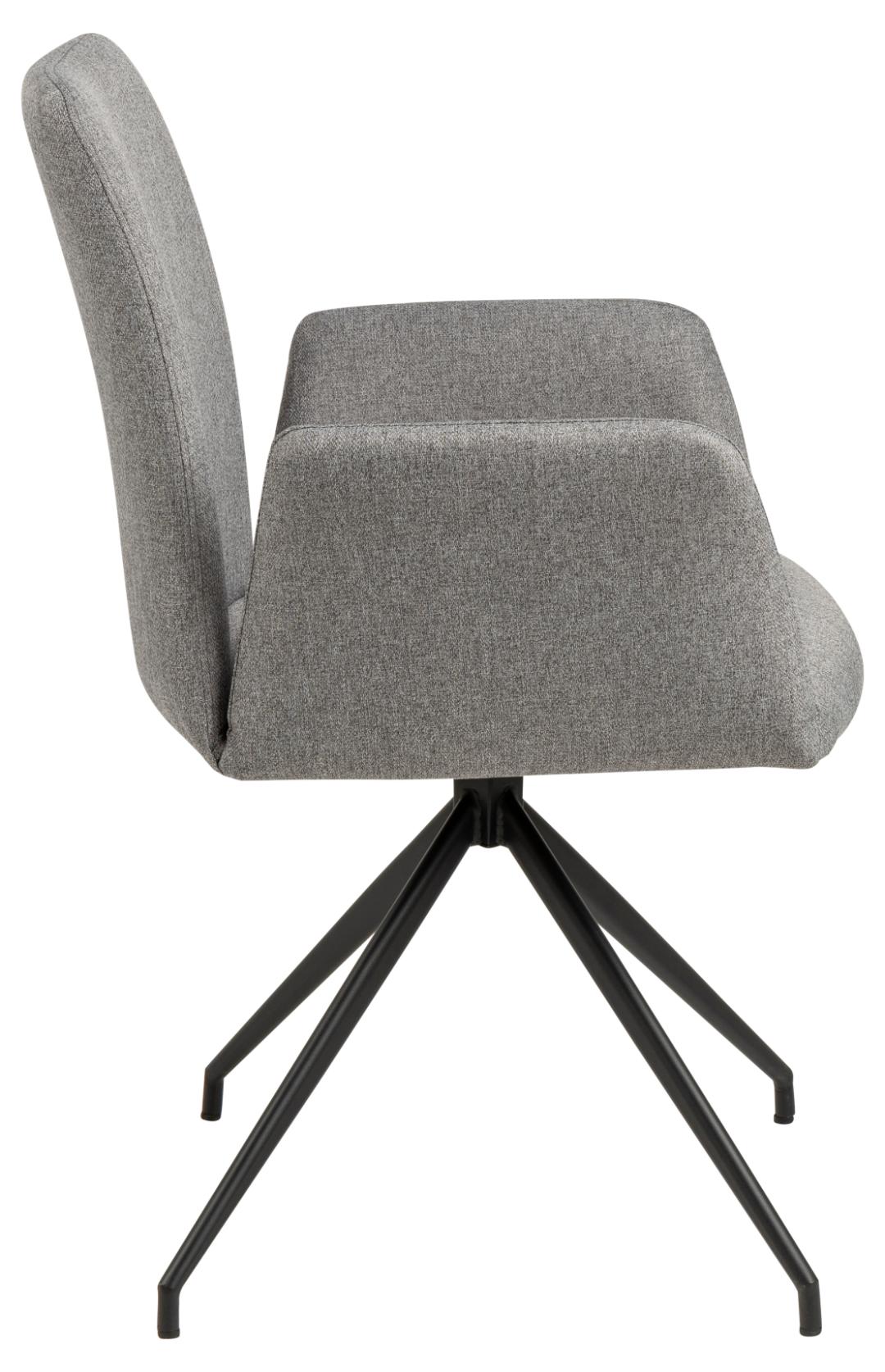 Naya valgomojo kėdė su porankiais, Malmo kolekcijos audinys šviesiai pilkos spalvos 90, keturių atšakų matinės juodos grublėtos milteliniu būdu dengtos plieninės kojos, pasukimo funkcija