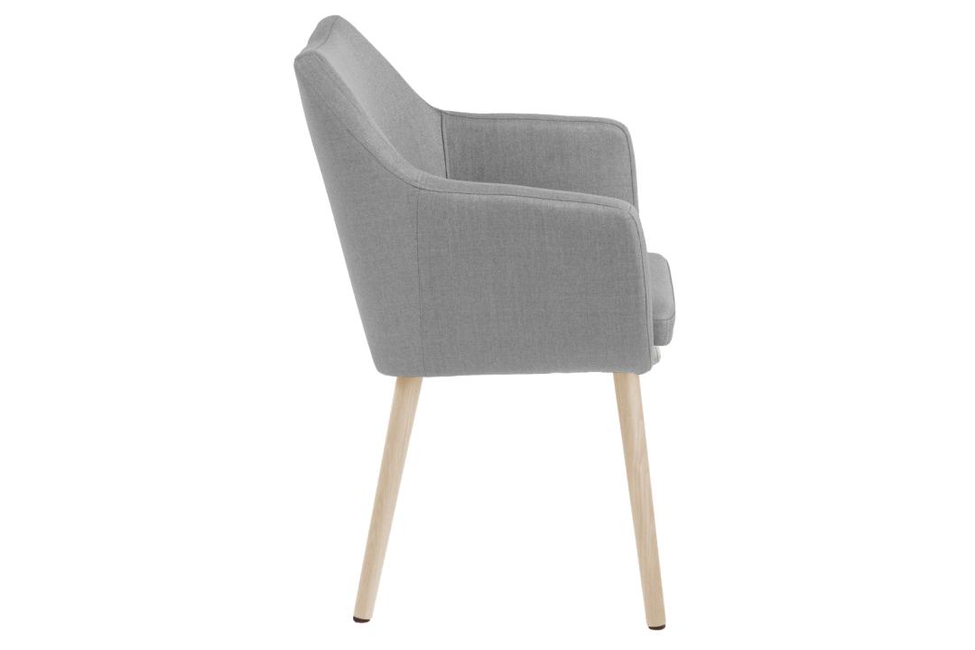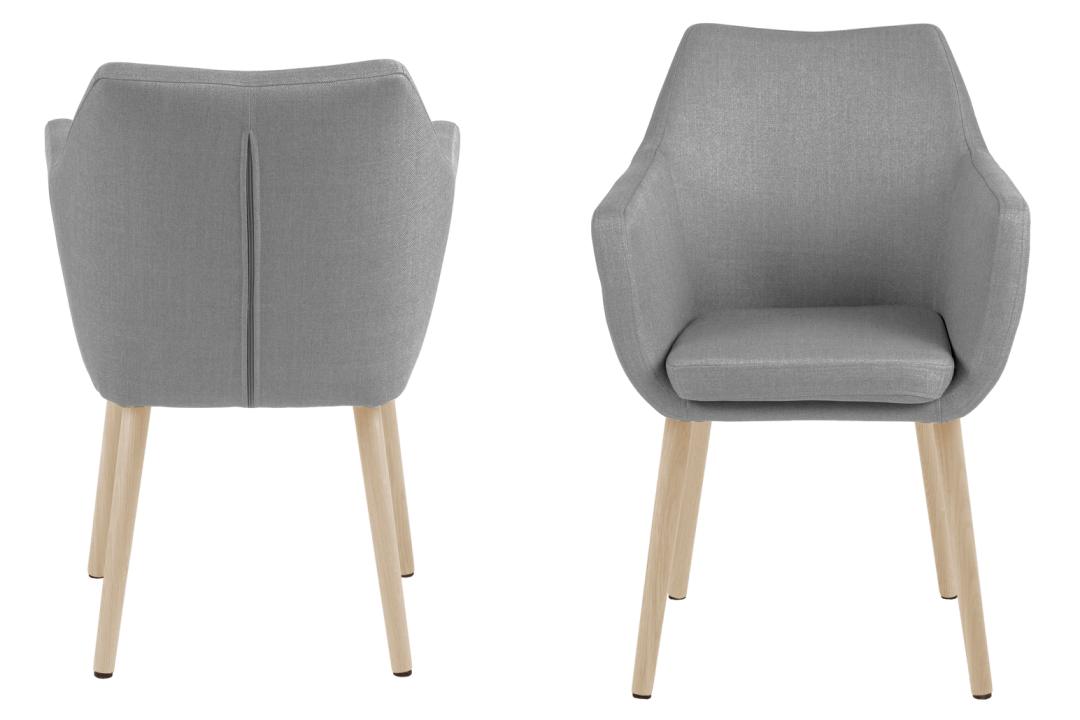 Nora valgomojo kėdė su porankiais, Corsica kolekcijos audinys šviesiai pilkos spalvos 40, baltai pigmentuoto alyvuoto ąžuolo pagrindas