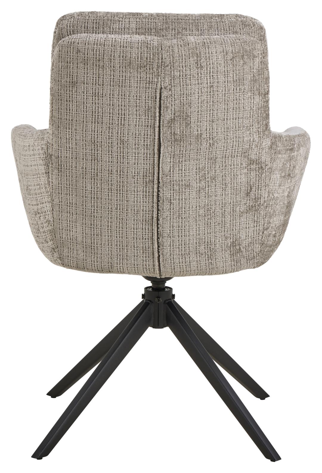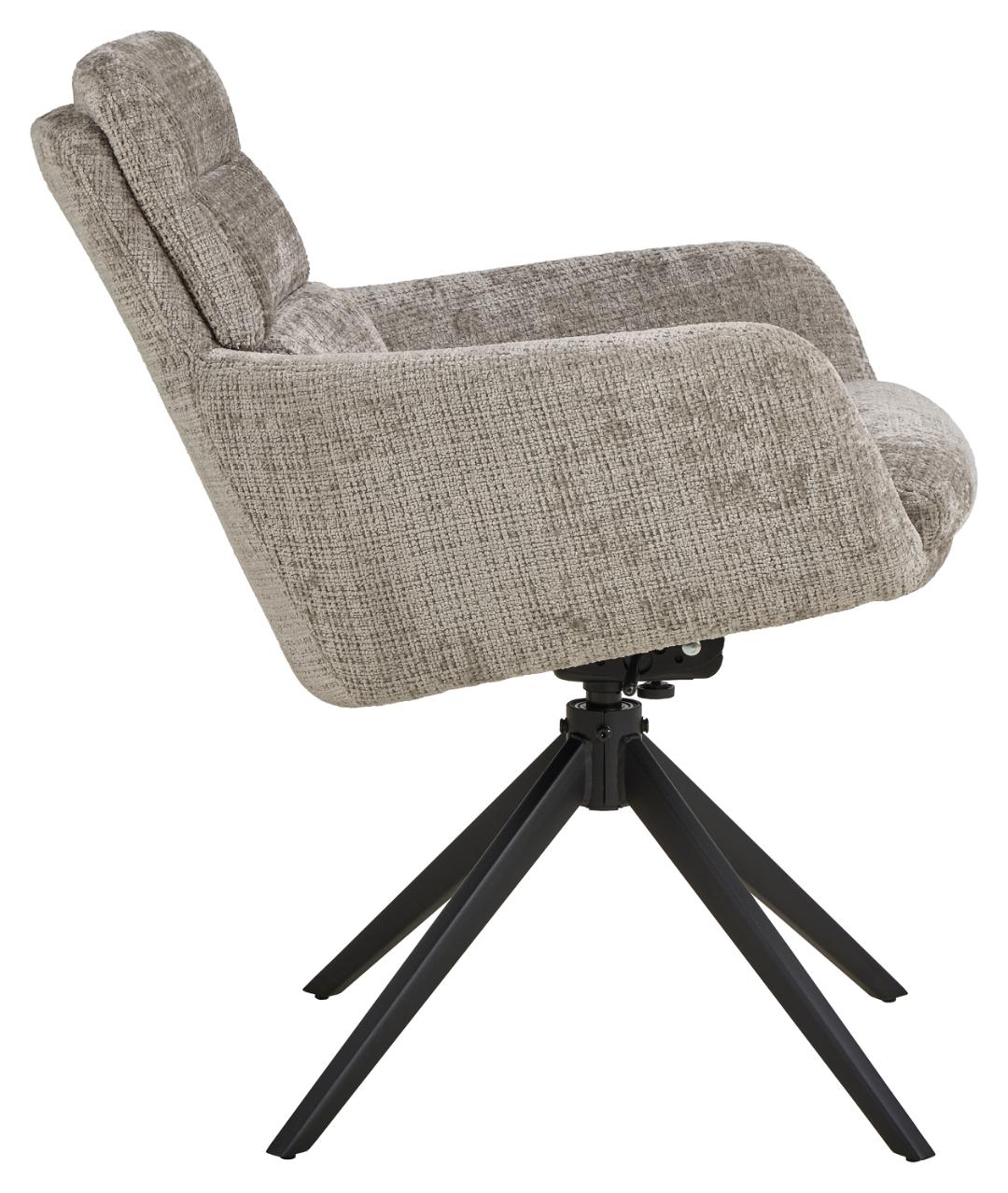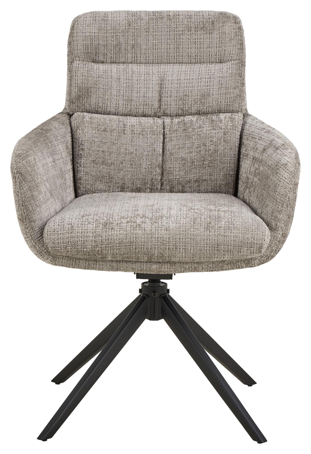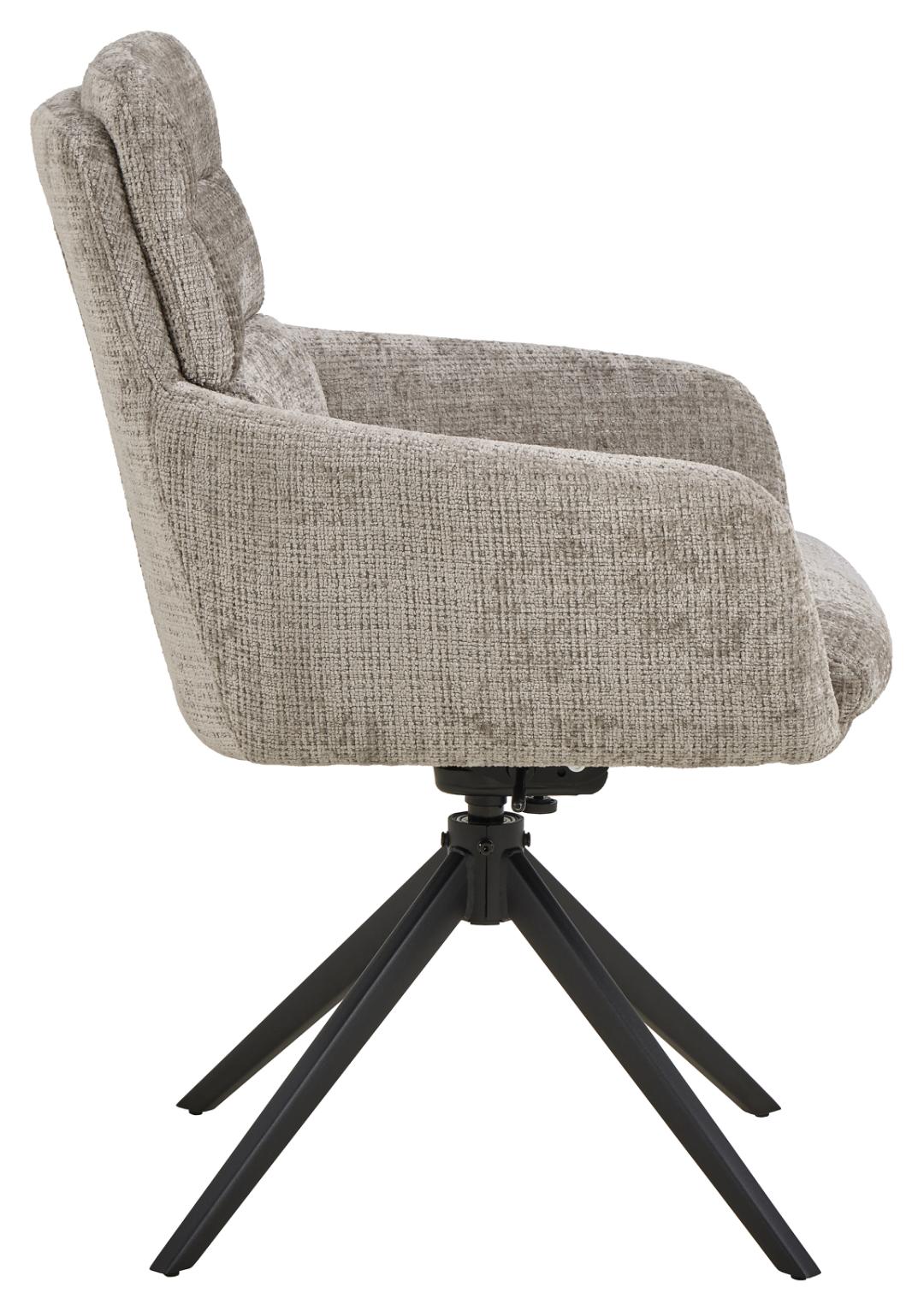 Roger valgomojo kėdė su porankiais, Juto kolekcijos audinys pilkas 85, keturių atšakų matinės juodos grublėtos milteliniu būdu dengtos plieninės kojos su automatinio grįžimo funkcija, horizontaliu siuvinėjimu, pasukimo funkcija, su pasvyrimo funkcija.