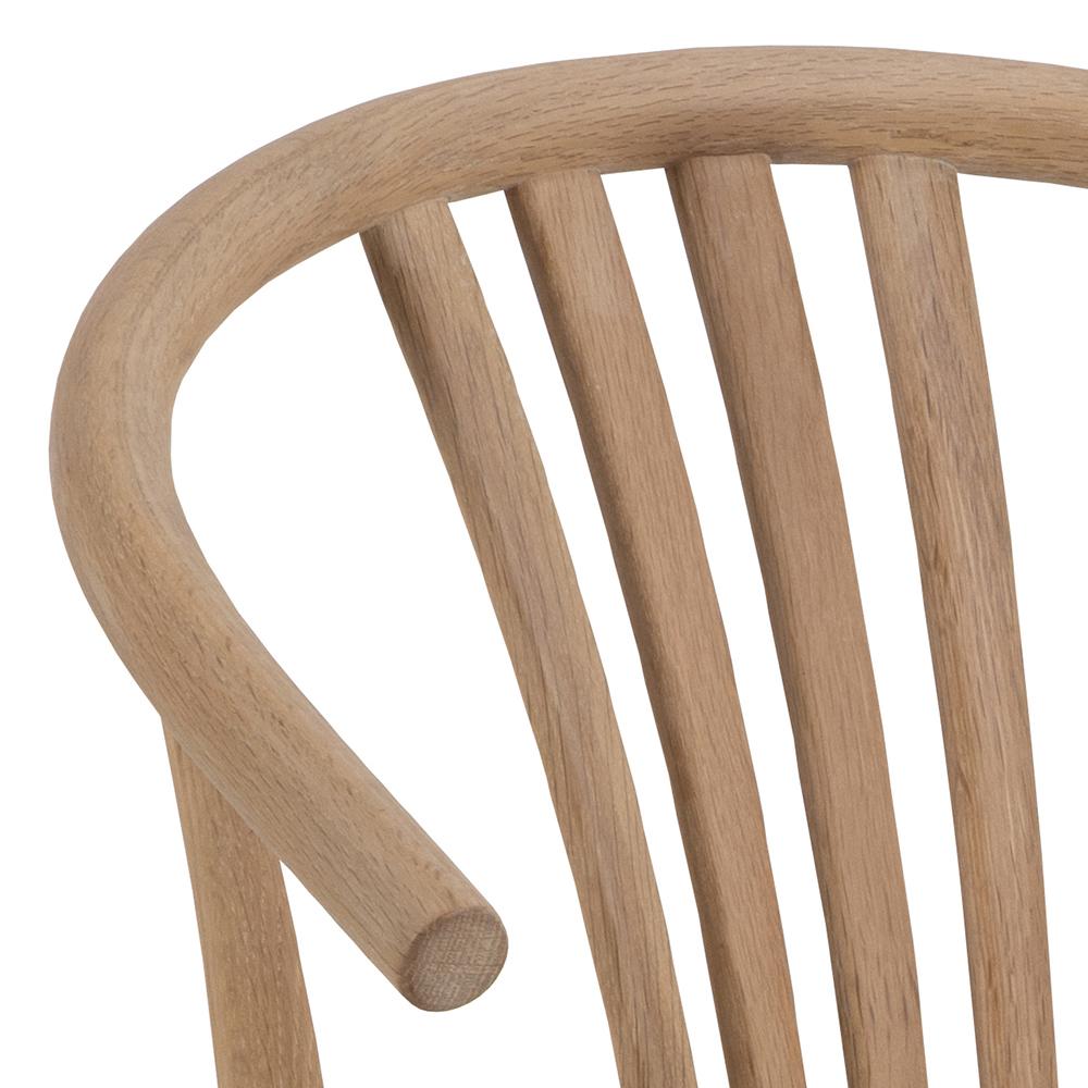 I_York valgomojo kėdė su porankiais, kreminės spalvos, iš popierinių virvelių pintas paviršius ir baltai pigmentuotas alyvuotas ąžuolas; pagrindas – baltai pigmentuotas alyvuotas ąžuolas, su vokelio raštu.