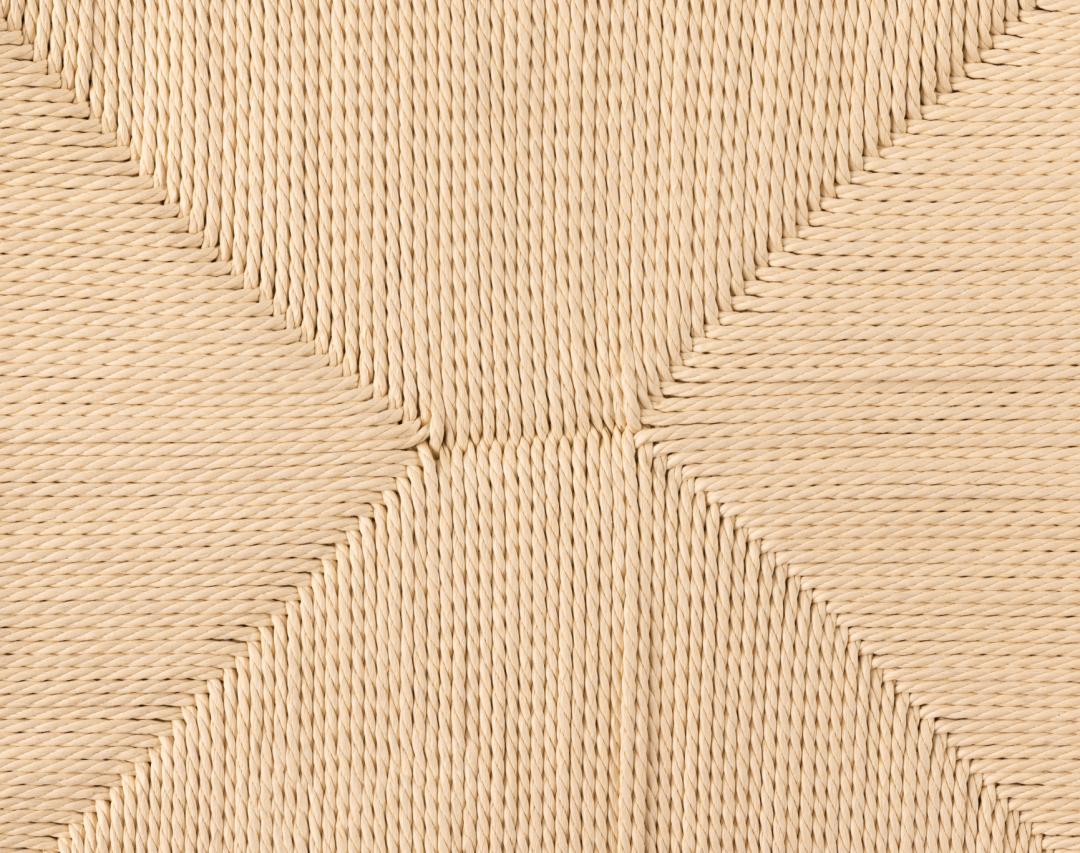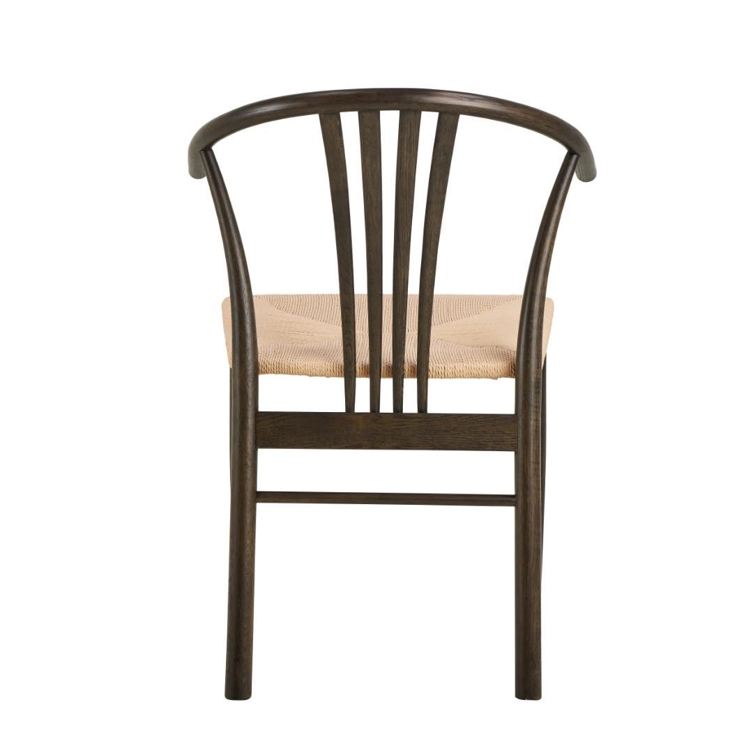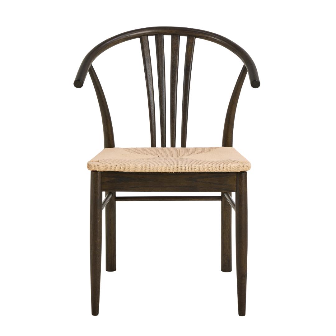 I_York valgomojo kėdė su porankiais, baltos spalvos, iš popierinių virvelių pintas paviršius ir matinis dūmintas NC lakuotas ąžuolas; pagrindas – matinis dūmintas NC lakuotas ąžuolas, su vokelio raštu.