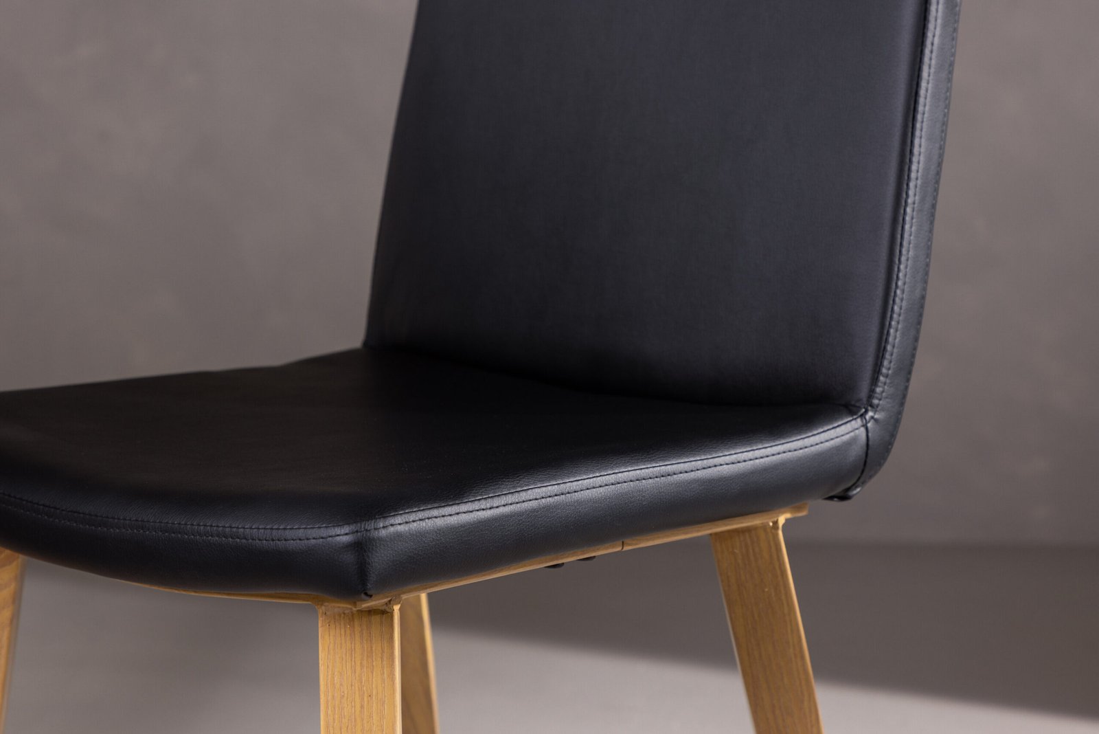 Klasikinė valgomojo kėdė TODAY yra tiesių šiaurietiškų formų, juoda dirbtine oda aptraukta sėdimąja dalimi. Kėdės kojos - lengvai platėjančios iš natūralaus medžio ir atrodo stabiliai. Gerai apgalvotas bendras dizainas yra tiek pat modernus, kiek ir nepavaldus laikui. Derinkite su gražiu valgomojo stalu, kad gautumėte visą valgomojo komplektą maloniems būsimiems pasisėdėjimams!