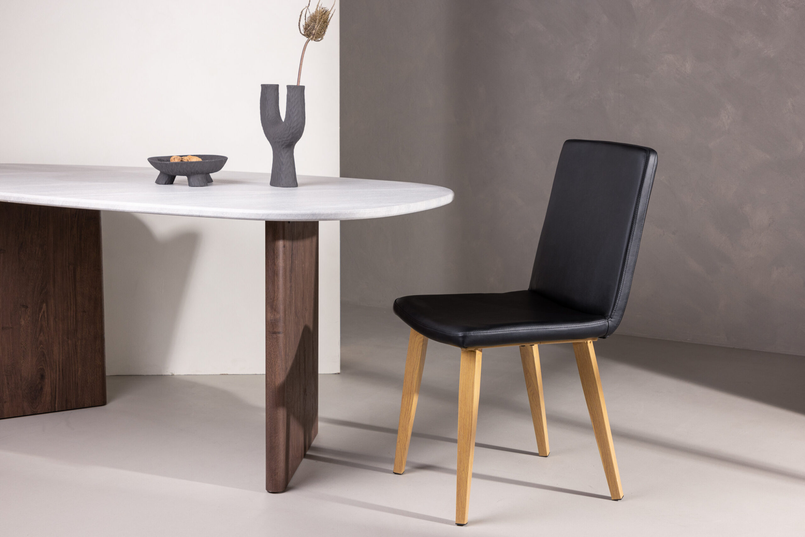 Klasikinė valgomojo kėdė TODAY yra tiesių šiaurietiškų formų, juoda dirbtine oda aptraukta sėdimąja dalimi. Kėdės kojos - lengvai platėjančios iš natūralaus medžio ir atrodo stabiliai. Gerai apgalvotas bendras dizainas yra tiek pat modernus, kiek ir nepavaldus laikui. Derinkite su gražiu valgomojo stalu, kad gautumėte visą valgomojo komplektą maloniems būsimiems pasisėdėjimams!