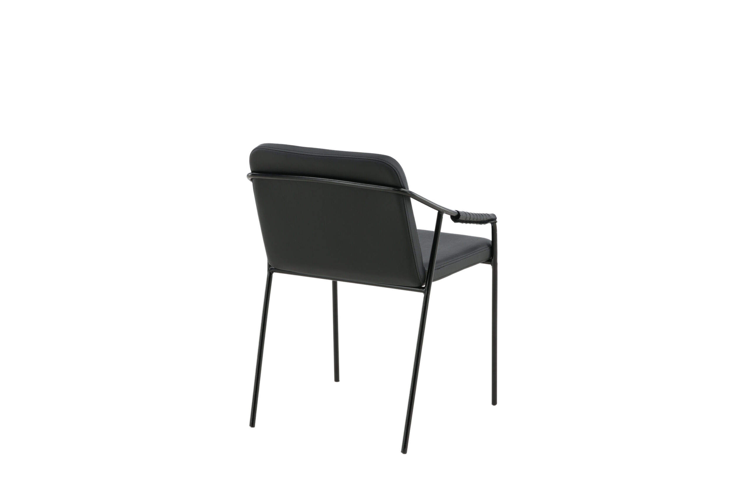 Visiškai juodos spalvos kėdė - puikiai tinka svetainei ar virtuvei! Dispute valgomojo kėdės sėdimoji dalis ir atlošas pagaminti iš juodos spalvos poliuretano membranos ir poliesterio, o kojos - iš geležies. Drąsaus dizaino ir madingos konstrukcijos dėka, turėsite valgomojo kėdę, kuri pagerins valgomojo nuotaiką!