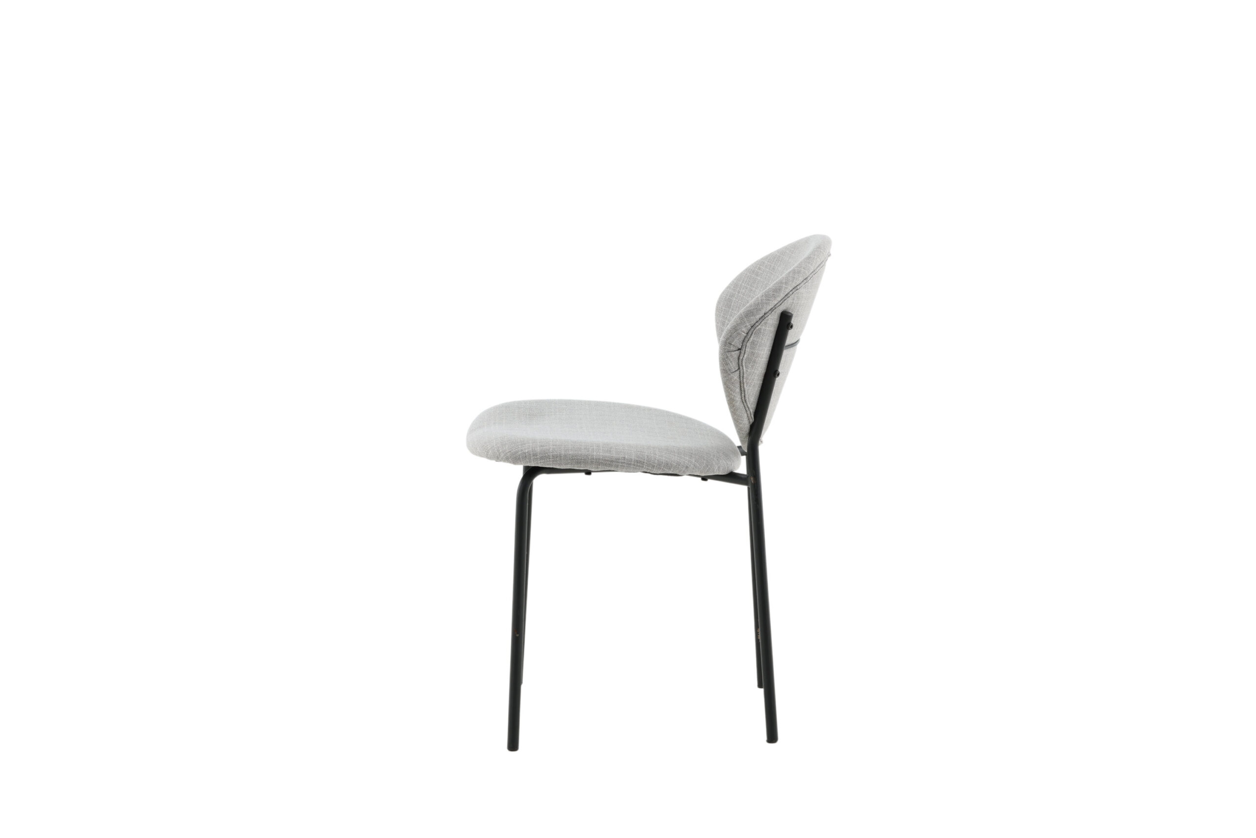 Nesenstanti valgomojo kėdė, minimalistinio dizaino iš kolekcijos Vault! Šios puikios valgomojo kėdės rėmas ir kojelės yra iš juodos spalvos milteliniu būdu dažyto metalo, o atlošas užapvalintas. Atlošas ir sėdimoji dalis aptraukti pilku poliesterio audiniu. Papuoškite savo namus patogiomis kėdėmis, kurios yra ne tik stilingos, bet ir praktiškos! Lengvai surenkama.