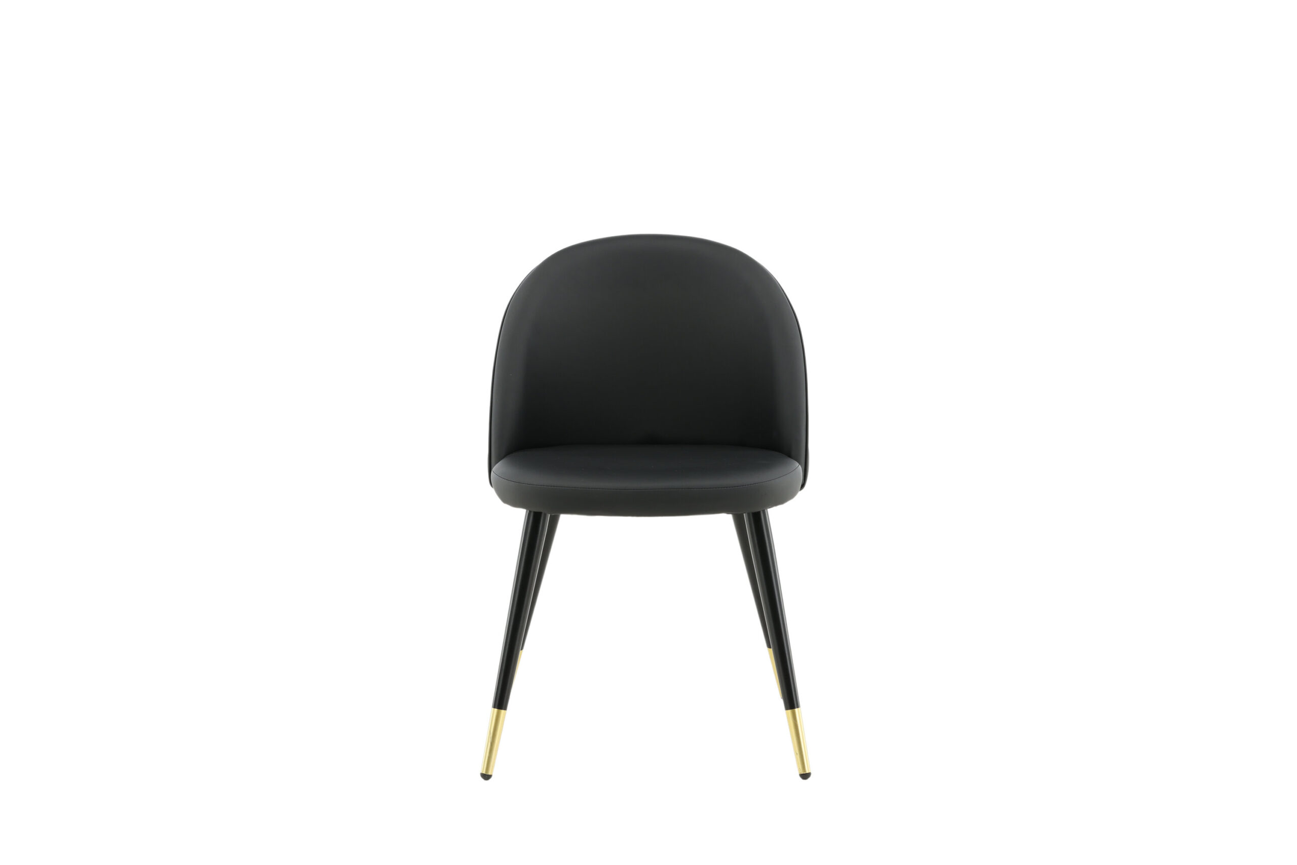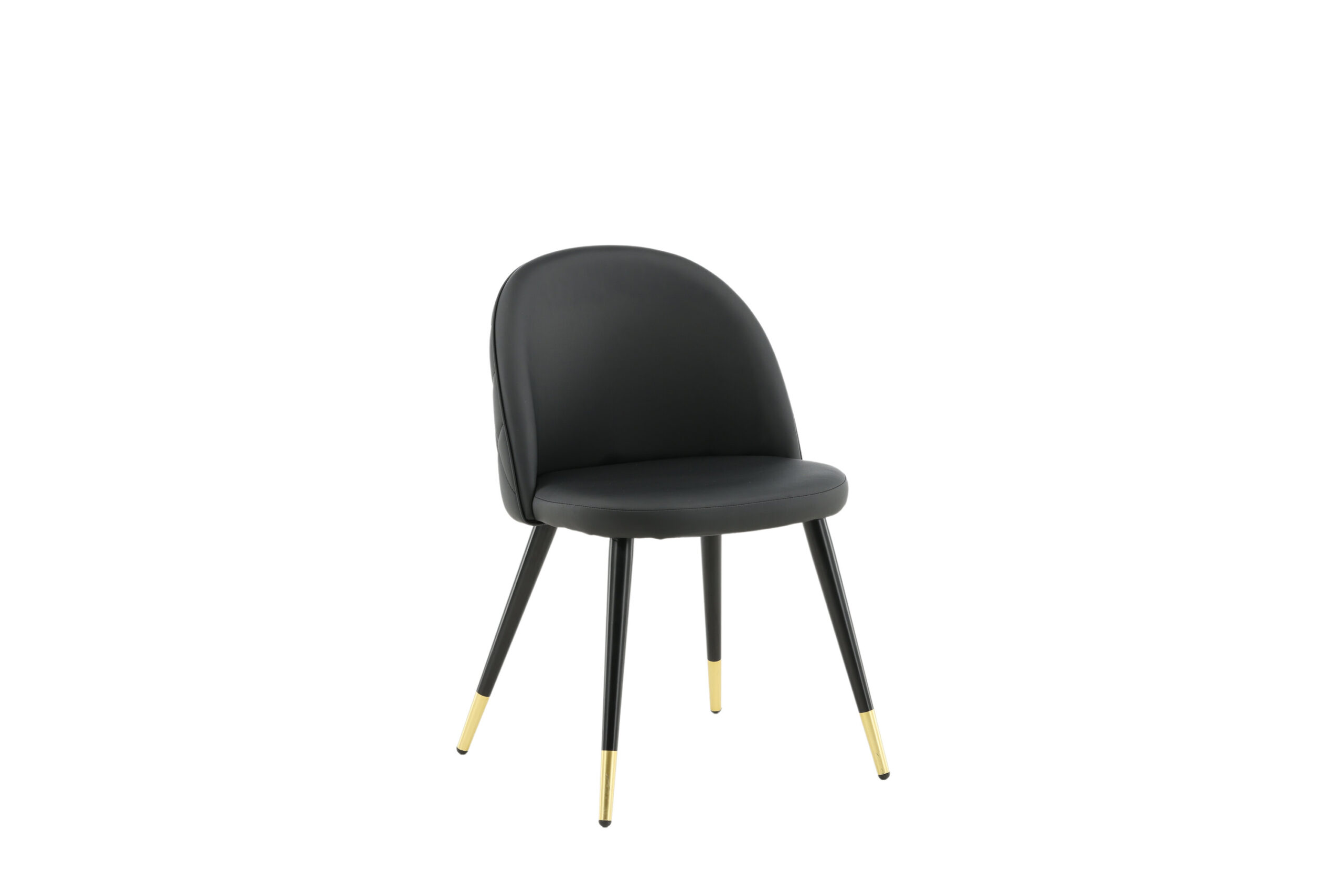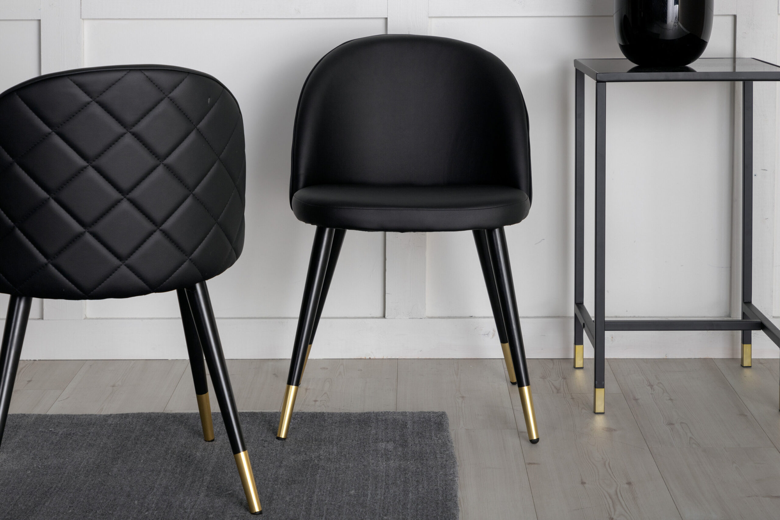 Velvet - tvirta valgomojo kėdė, pasižyminti kruopščiu ir prabangiu dizainu! Atlošas suapvalintas ir, kaip ir sėdimoji dalis, padengtas juoda dirbtine oda su dekoratyviniais dygsniais. Kojos - iš juodo milteliniu būdu dažyto metalo su žalvario imitacijos užbaigimu, kuris kuria akį traukiančią visumą. Lengvai surenkama. Susikurkite šiuolaikišką namų interjero puošmeną!