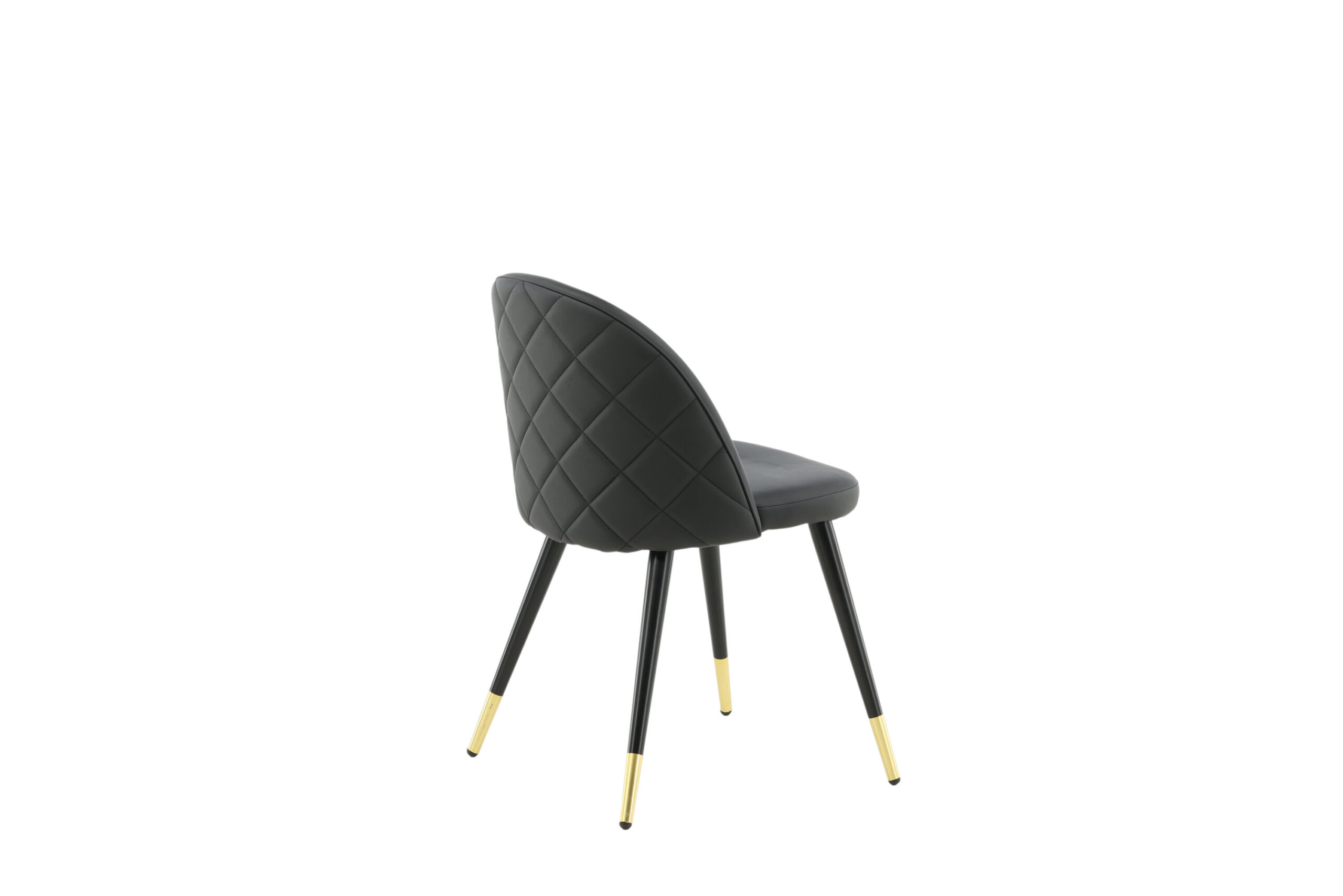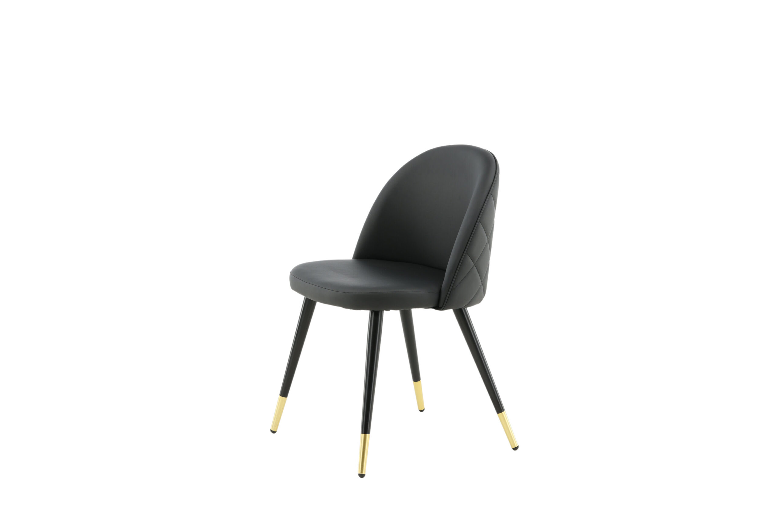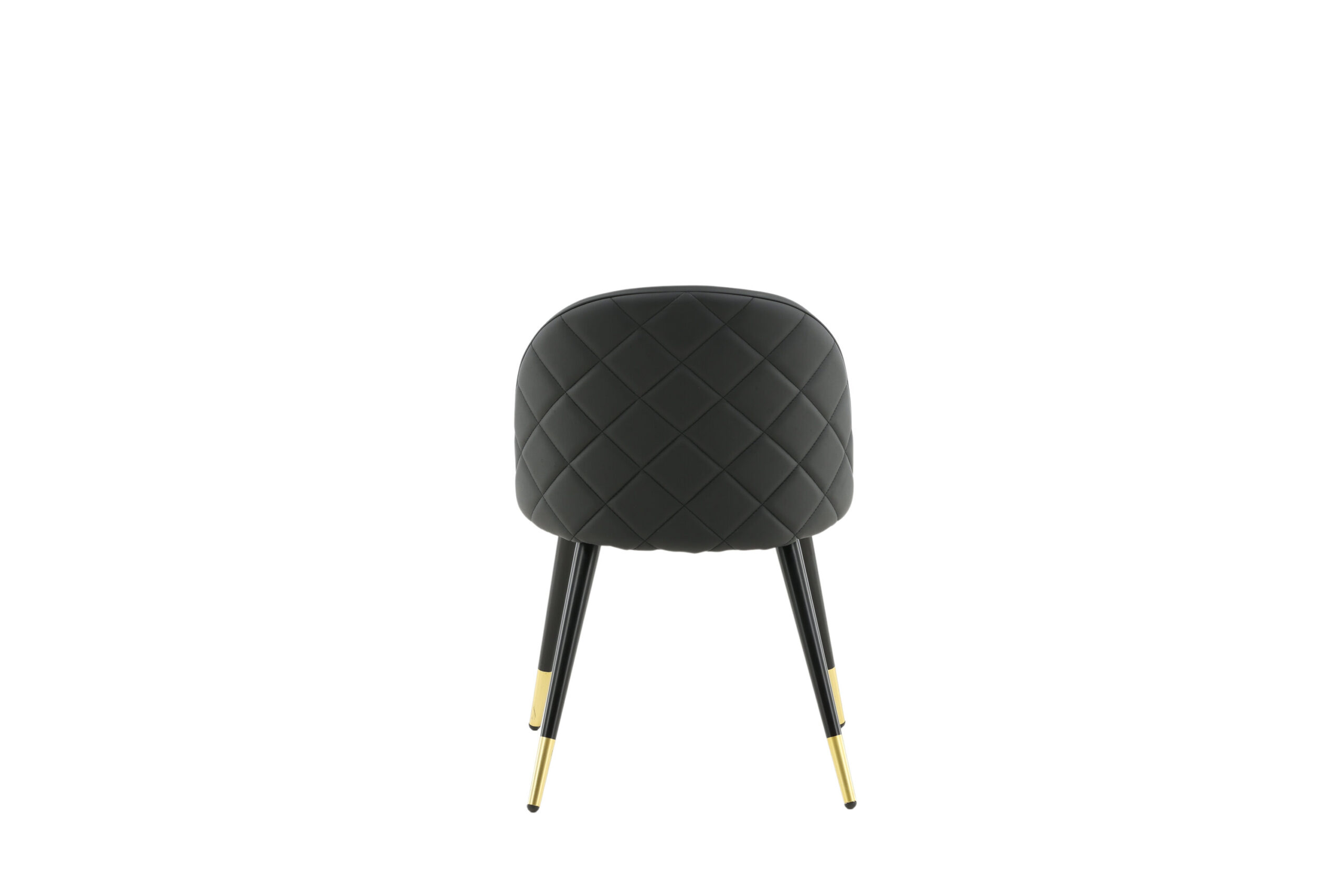 Velvet - tvirta valgomojo kėdė, pasižyminti kruopščiu ir prabangiu dizainu! Atlošas suapvalintas ir, kaip ir sėdimoji dalis, padengtas juoda dirbtine oda su dekoratyviniais dygsniais. Kojos - iš juodo milteliniu būdu dažyto metalo su žalvario imitacijos užbaigimu, kuris kuria akį traukiančią visumą. Lengvai surenkama. Susikurkite šiuolaikišką namų interjero puošmeną!