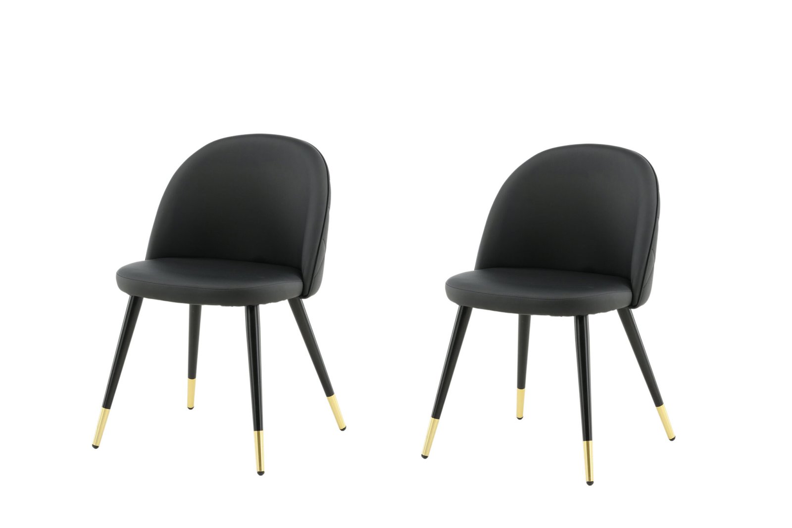 Velvet - tvirta valgomojo kėdė, pasižyminti kruopščiu ir prabangiu dizainu! Atlošas suapvalintas ir, kaip ir sėdimoji dalis, padengtas juoda dirbtine oda su dekoratyviniais dygsniais. Kojos - iš juodo milteliniu būdu dažyto metalo su žalvario imitacijos užbaigimu, kuris kuria akį traukiančią visumą. Lengvai surenkama. Susikurkite šiuolaikišką namų interjero puošmeną!