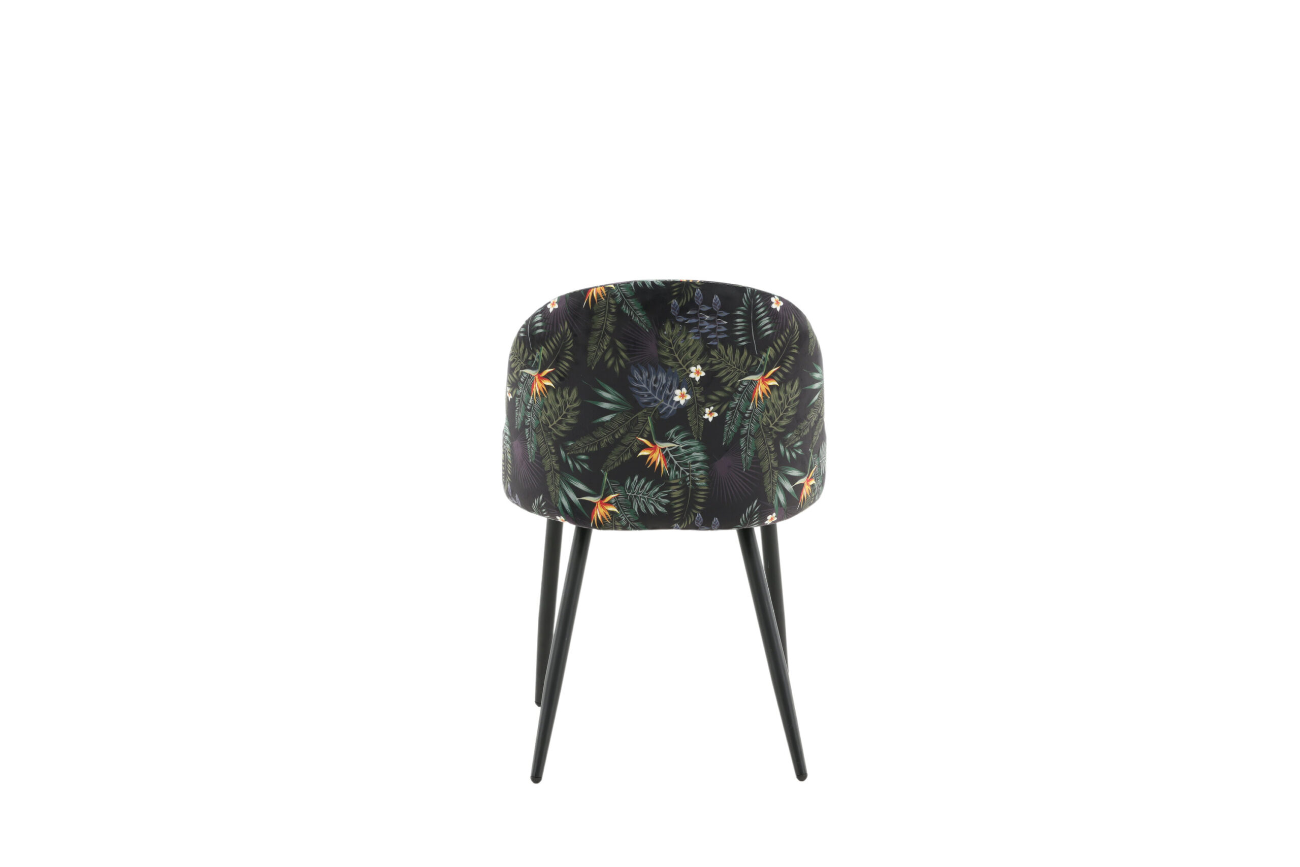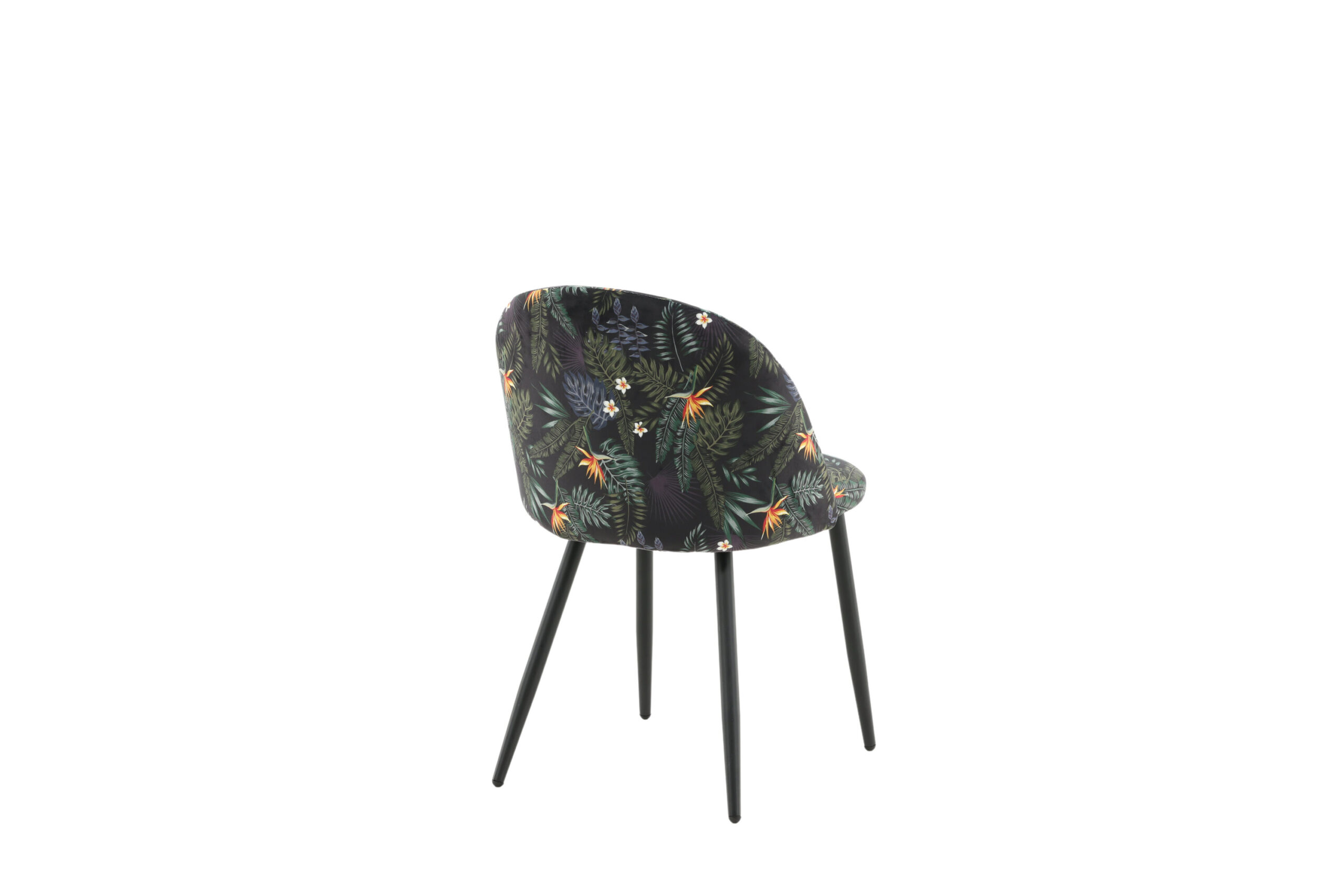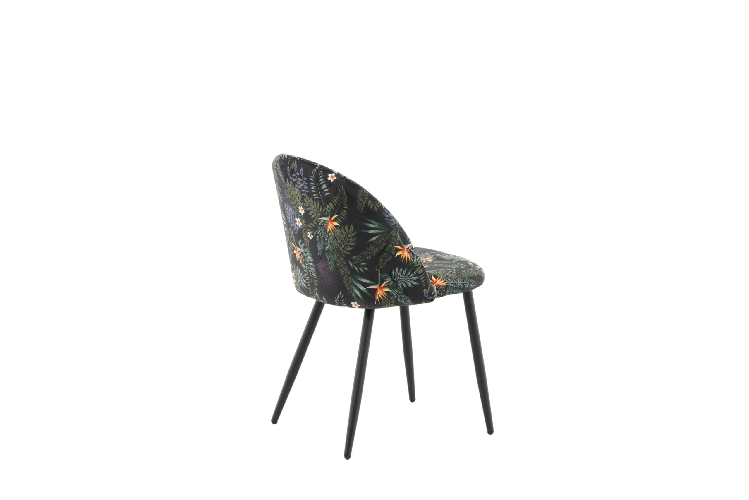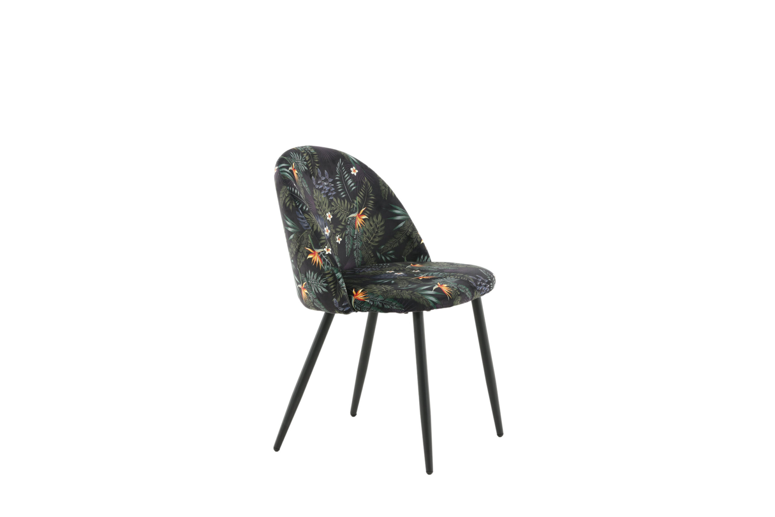 Sukurkite žvilgsnį traukiantį akcentą su įvairiaspalvėmis valgomojo kėdėmis iš kolekcijos Velvet! Šios valgomojo kėdės rėmas ir kojelės yra iš juodos spalvos, milteliniu būdu dažyto metalo, o dizainas - stilingas, nugarėlė apvali. Atlošas ir sėdimoji dalis aptraukti juodu gėlių raštais dekoruotu poliesterio audiniu, kuris sukuria individualų interjero vaizdą. Lengvai surenkama.