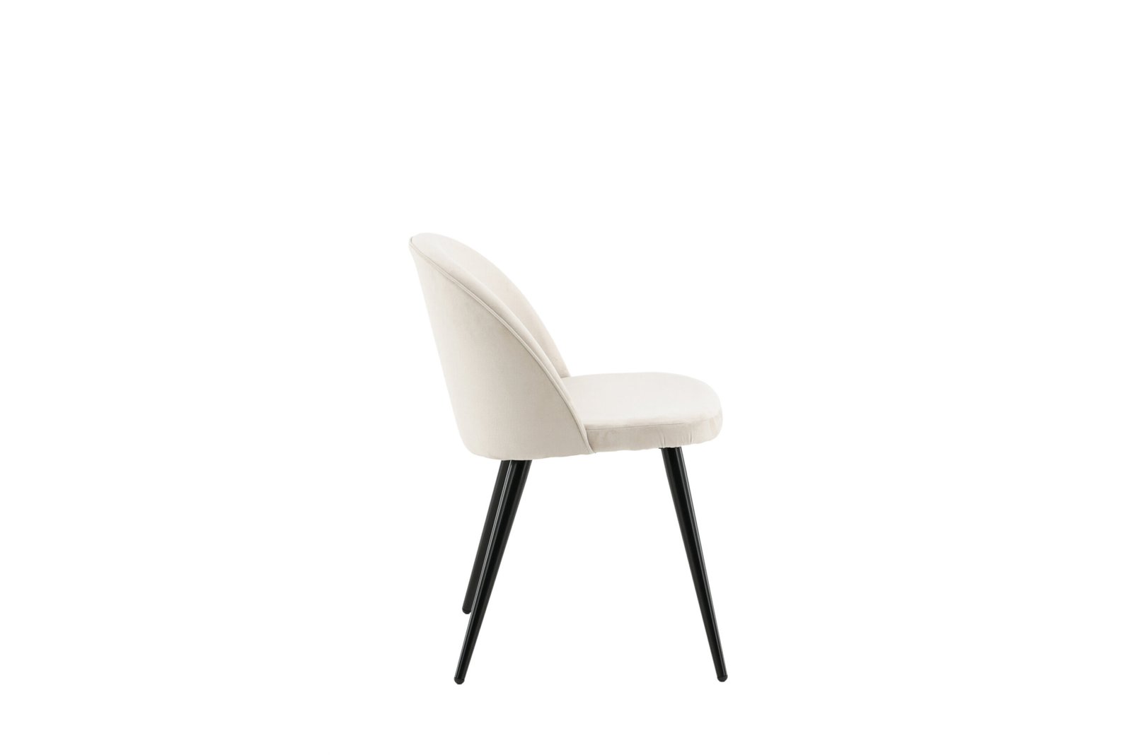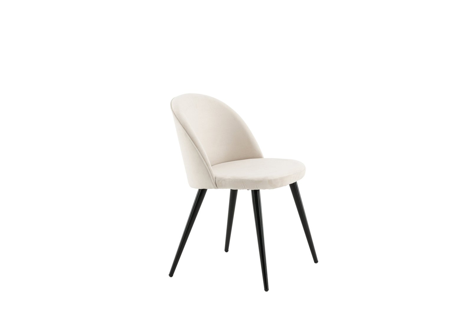 Moderni stilingos smėlio spalvos Velvet kolekcijos kėdė! Ši valgomojo kėdė yra aptakios konstrukcijos, šiek tiek suapvalintu atlošu ir sėdimąja dalimi iš aksominio audinio, juodos spalvos, milteliniu būdu dažyto metalo kojomis - garantuotai patogi ir akį traukianti. Įsirenkite patrauklų ir malonų interjerą, ir mėgaukitės gardžiais valgiais! Lengvai surenkama.