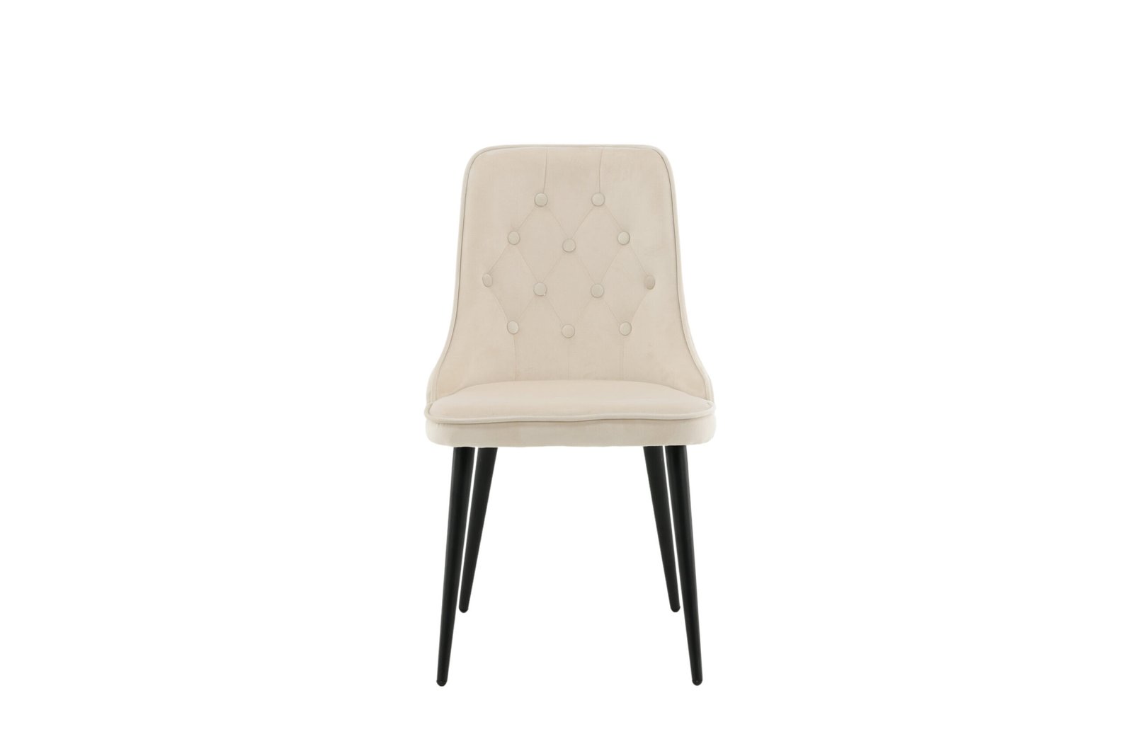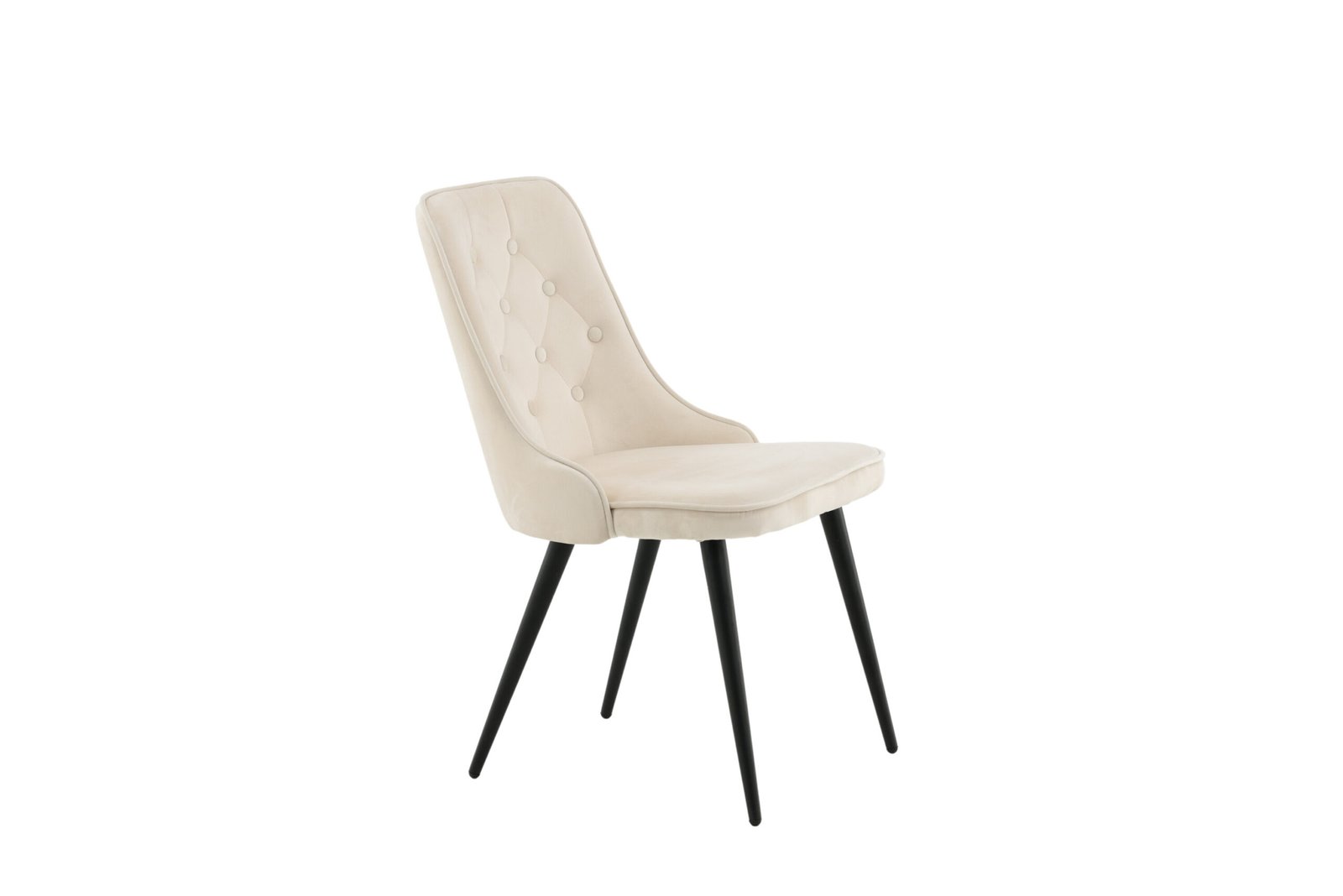 Kreminės, baltos ir smėlio spalvos kėdė iš kolekcijos Velvet Luxury neabejotinai taps elegantišku akį traukiančiu akcentu svetainėje! Kėdė yra pilnai apvilkta plonu smėlio spalvos aksomo audiniu su sagomis ir dekoratyviniu dygsniu atloše, kuris virsta dailia detale. Kojos - iš juodo milteliniu būdu dažyto metalo, o atlošo ir sėdimosios dalies paminkštinimas suteikia papildomo komforto. Lengvai surenkama. Tegul čia praleistas laikas tampa svarbiausiu dienos akcentu!